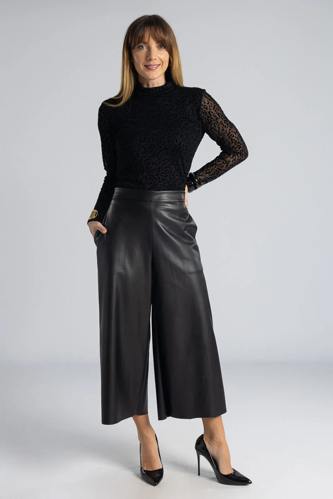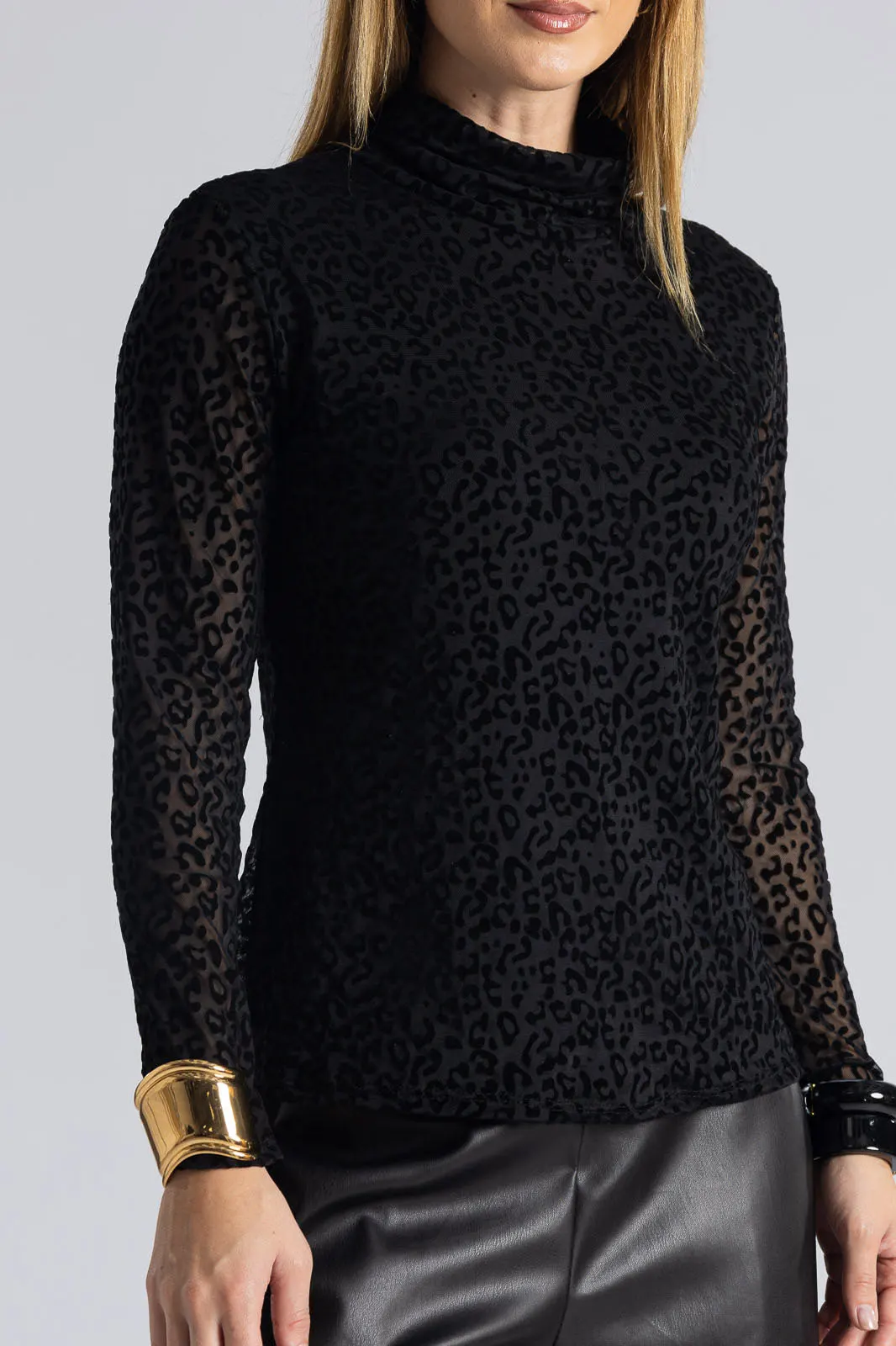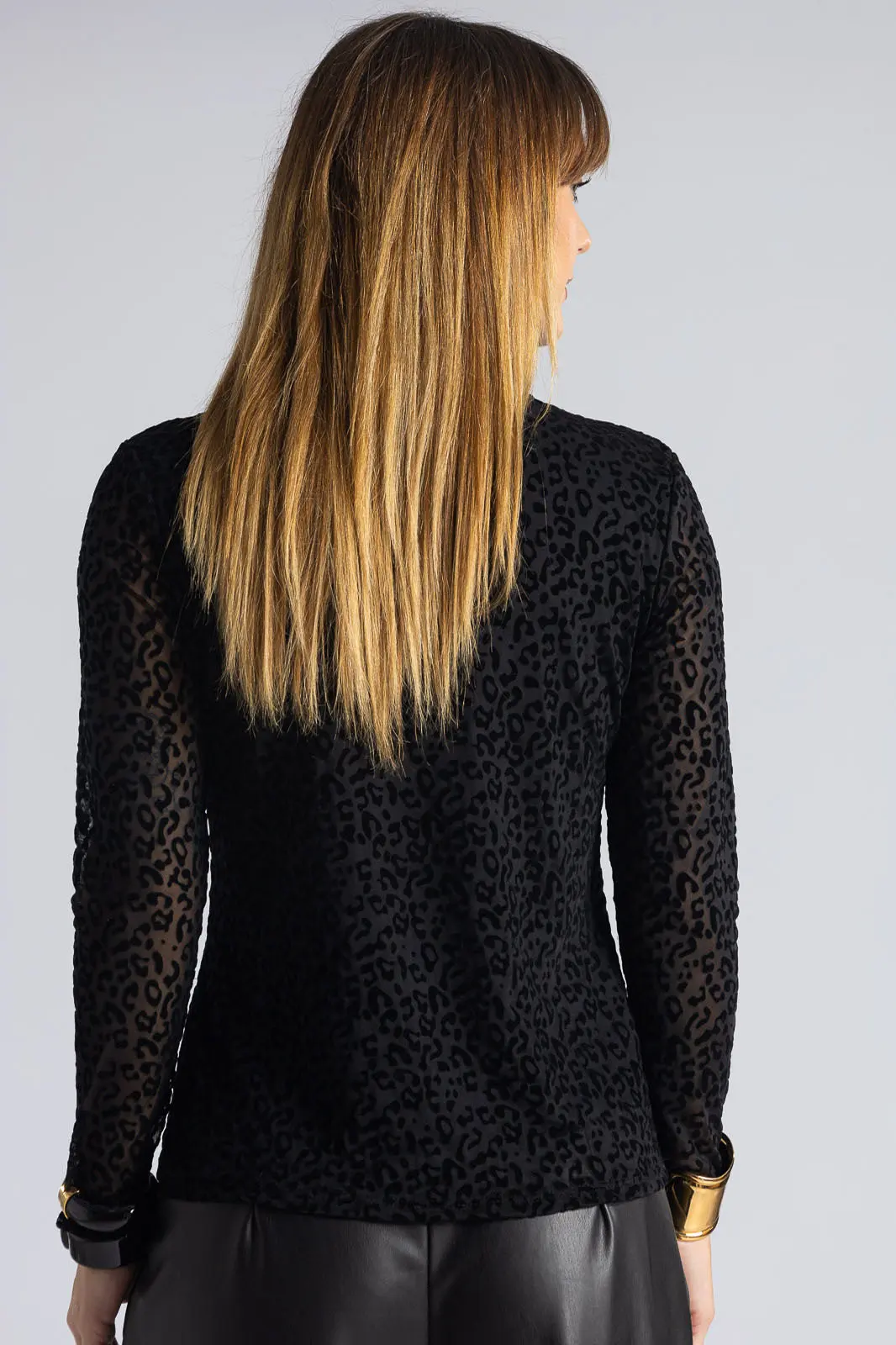 Μπλούζα με ζιβάγκο λαιμόκοψη και μακριά μανίκια. Σε όλη την επιφάνεια έχει leopar pattern σε velvet υφή. Εσωτερικά είναι φοδραρισμένη. Οι μετρήσεις του πίνακα είναι αντιπροσωπευτικές για κάθε προϊόν. 95% polyester, 5% elastan (Φόδρα: 95% viscose, 5% elastan)