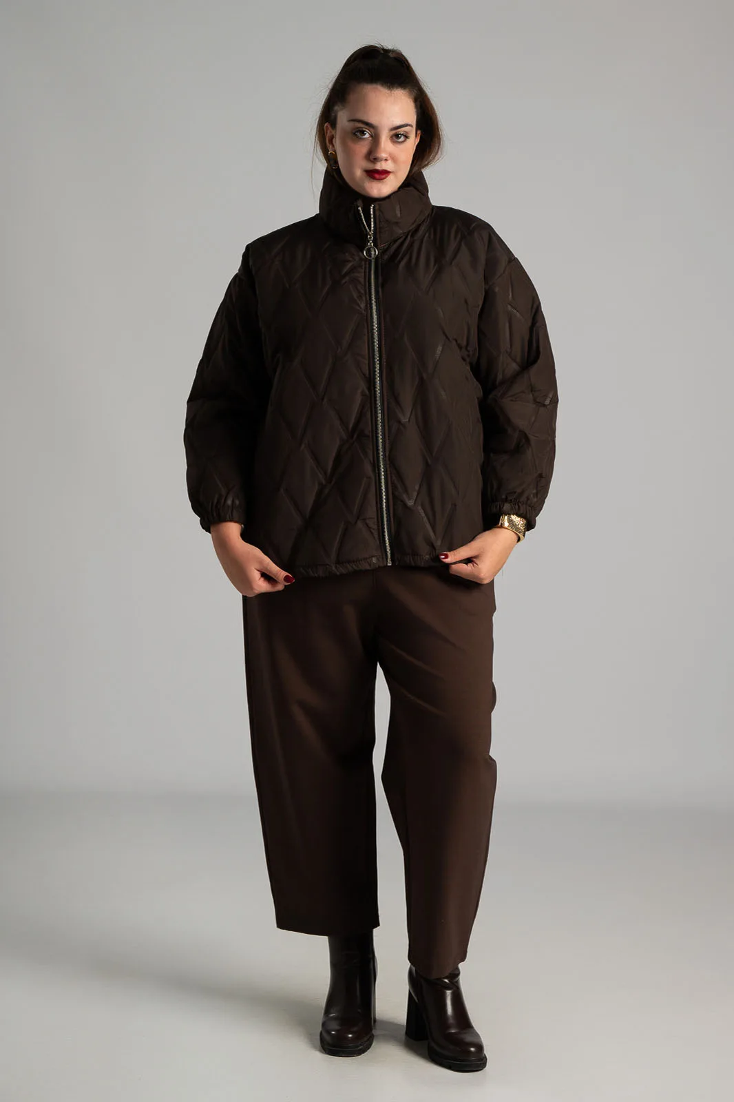 Quilted jacket. It has long sleeves that end in elastic. It closes with a zipper and does not have a hood. It has pockets on the sides. The measurements in the table are representative for each product. 95% viscose, 5% elastane.