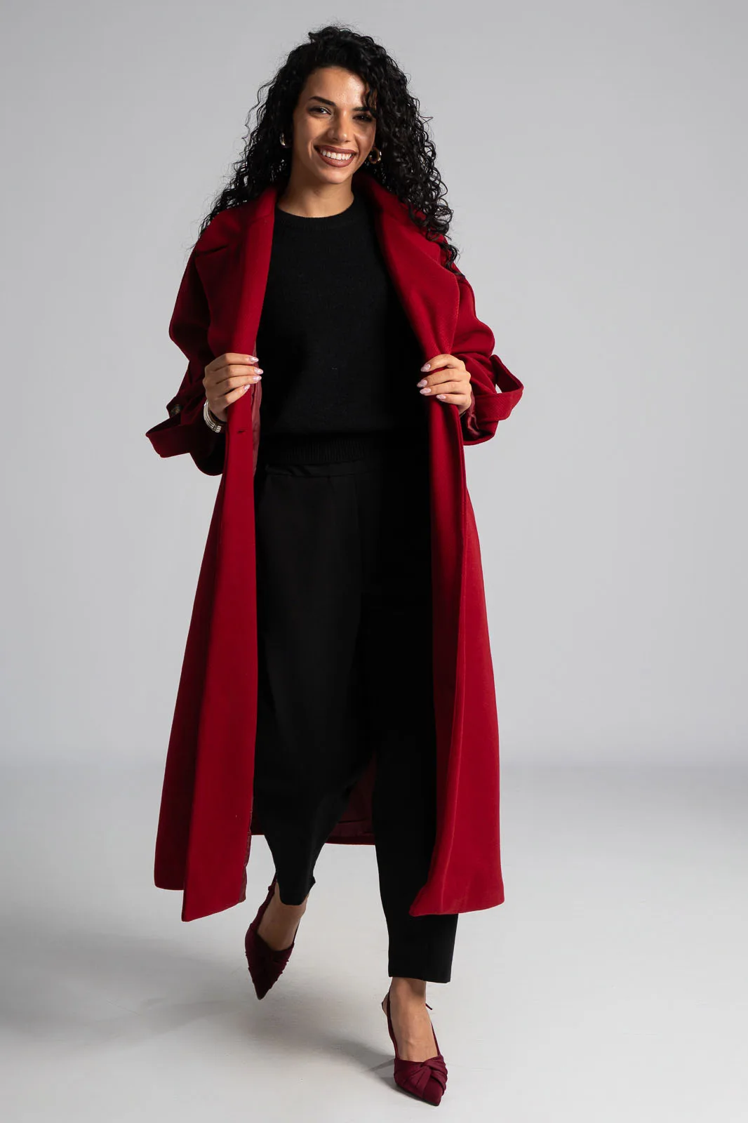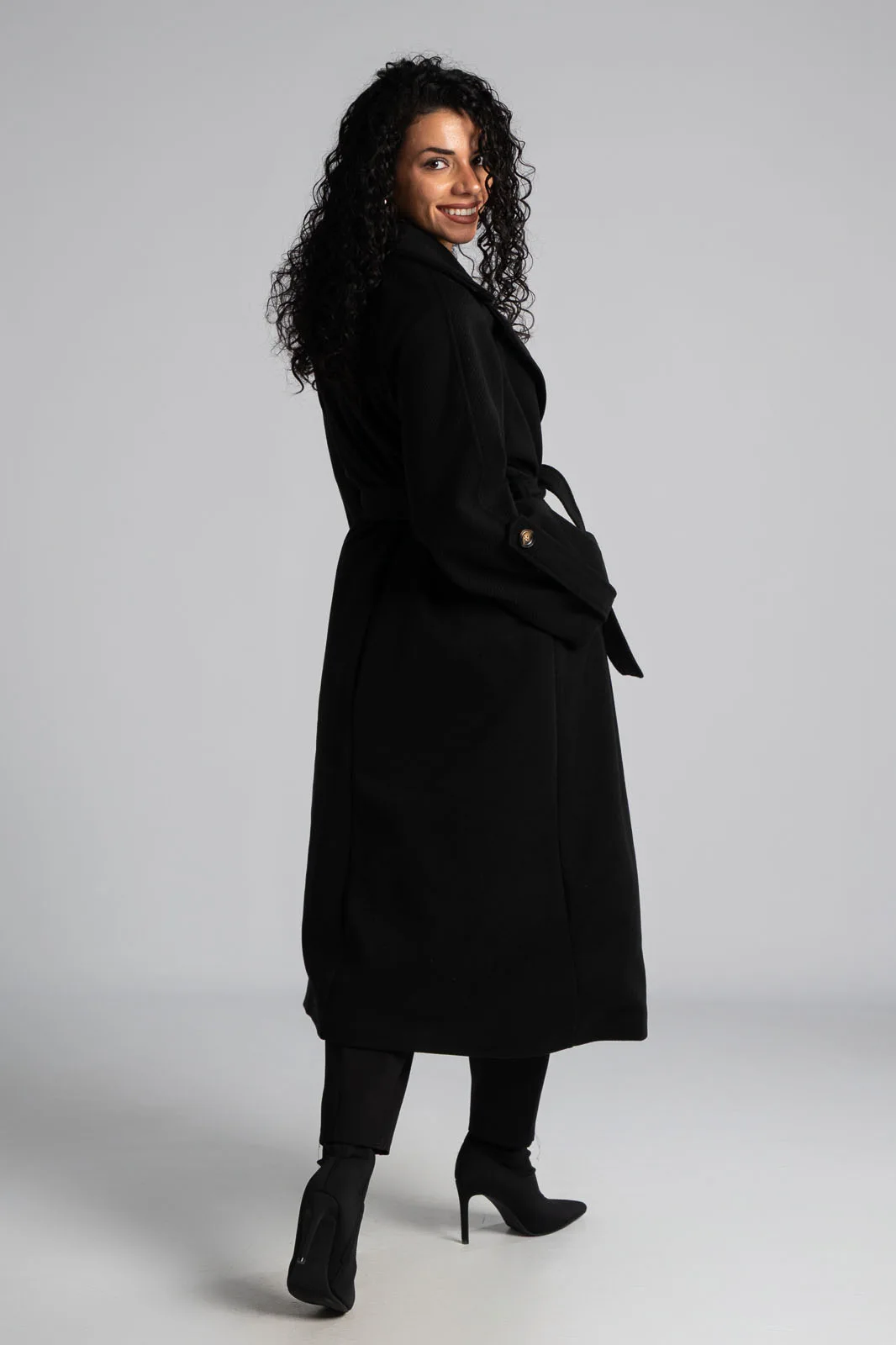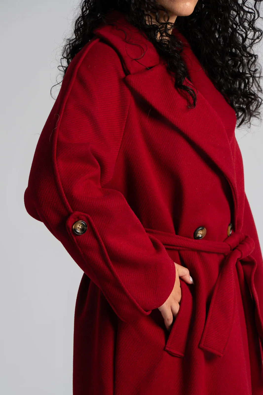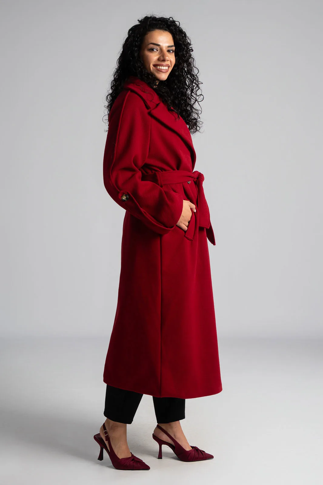 Παλτό που διαθέτει γιακά και πέτο. Έχει μακριά μανίκια και στο επάνω μέρος έχει διακοσμητική λωρίδα υφάσματος με κουμπί. Διαθέτει δική του ζώνη στην ίδια απόχρωση και υφή. Κλείνει με ένα κουμπί και έχει και ένα διακοσμητικό. Εσωτερικά είναι φοδραρισμένο. Στα πλαινά έχει τσέπες. Η μέτρηση έχει γίνει κλειστά τα κουμπιά. Οι μετρήσεις του πίνακα είναι αντιπροσωπευτικές για κάθε προϊόν. 100% polyester.