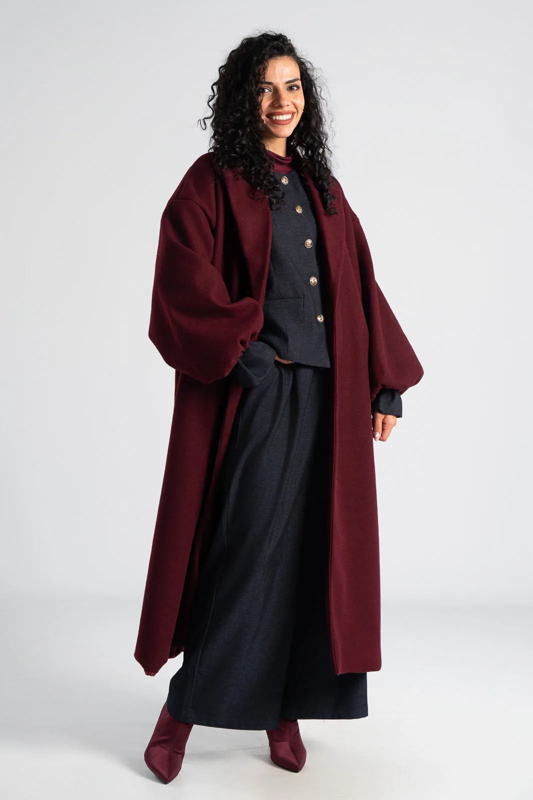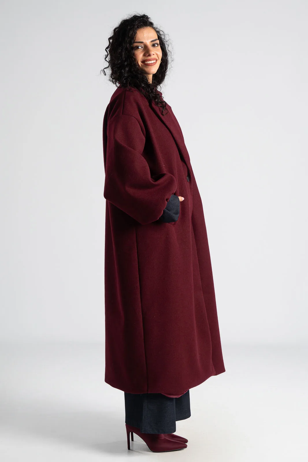Παλτό με γιακά και πέτο. Διαθέτει μακριά μανίκια που καταλήγουν σε λάστιχο σε ύφος balloon. Στα πλαινά διαθέτει τσέπες. Κλείνει με κουμπιά. Εσωτερικά είναι φοδραρισμένο, είναι maxi. Η μέτρηση έχει γίνει με κλειστά τα κουμπιά. Οι μετρήσεις του πίνακα είναι αντιπροσωπευτικές για κάθε προϊόν. 100% polyester.