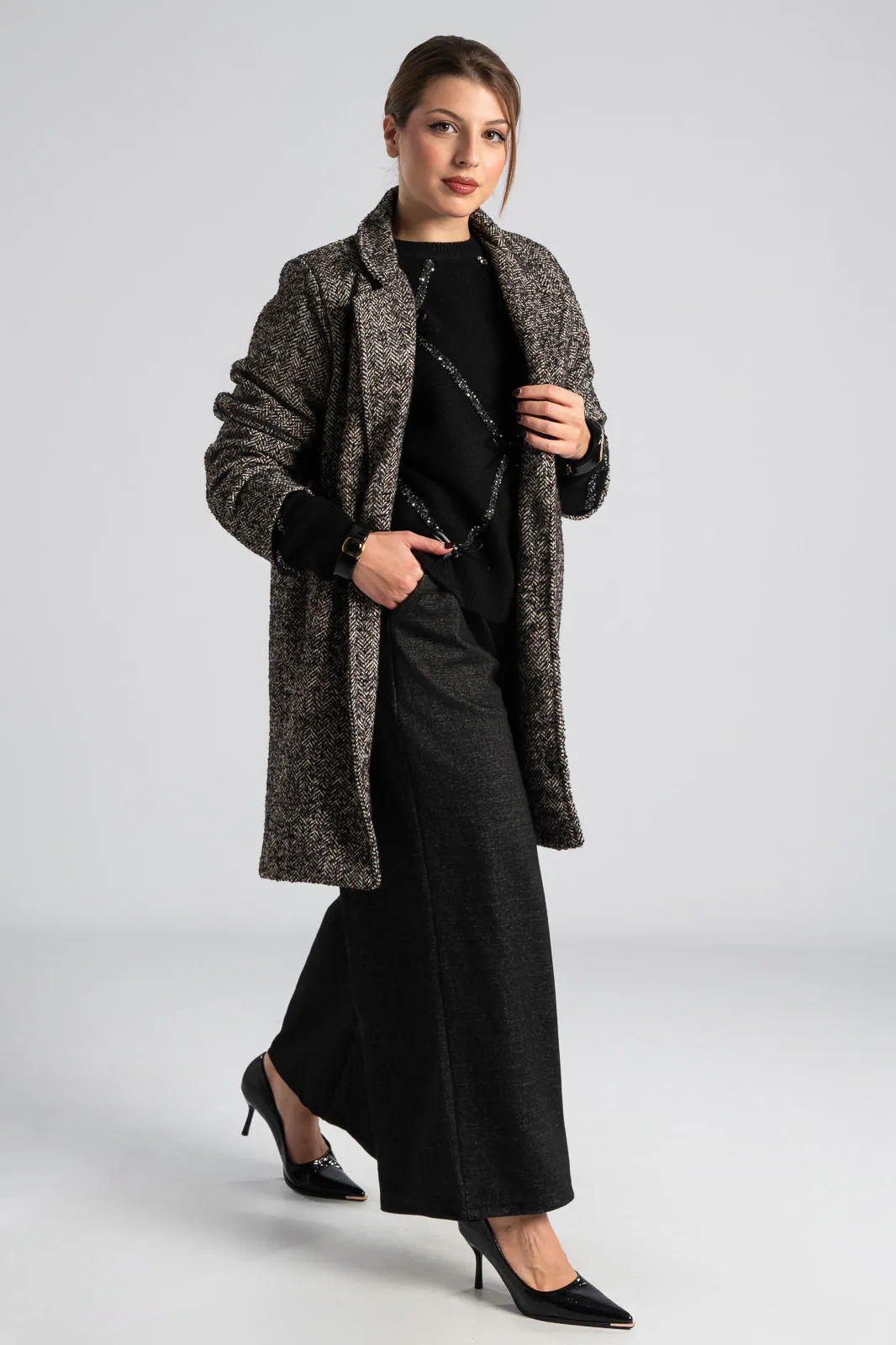 ΠΑΛΤΟ ΡΙΓΩΤΟ MULTI COLOR ΑΝΘΡΑΚΙ