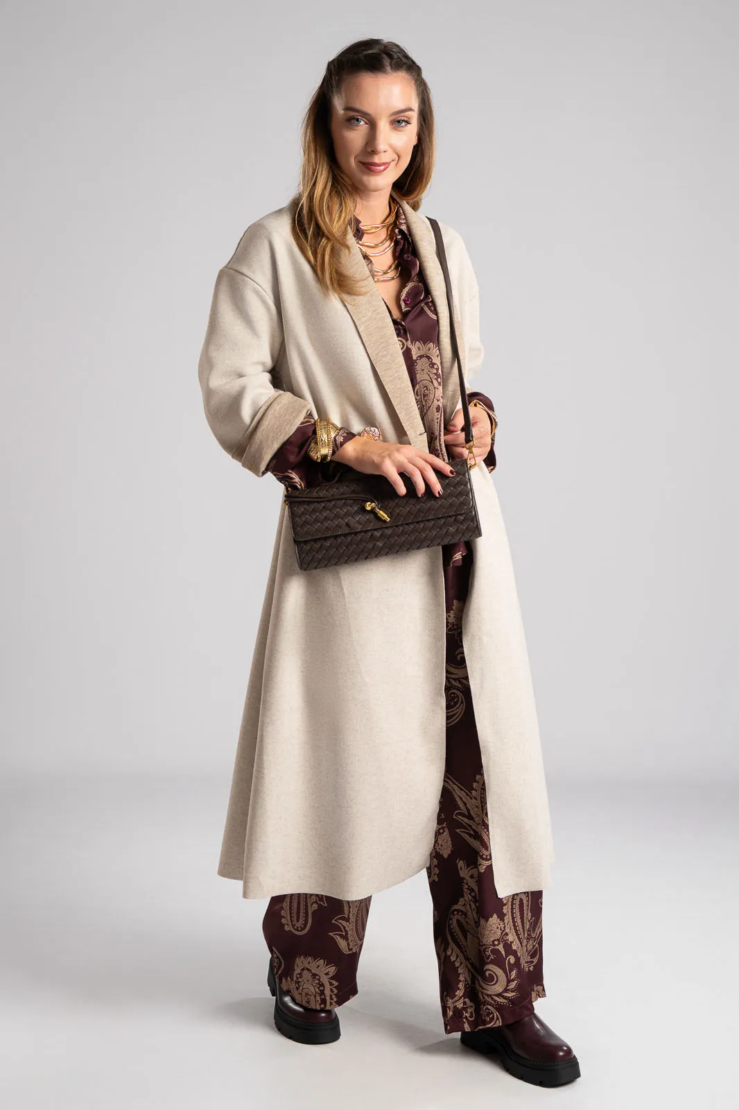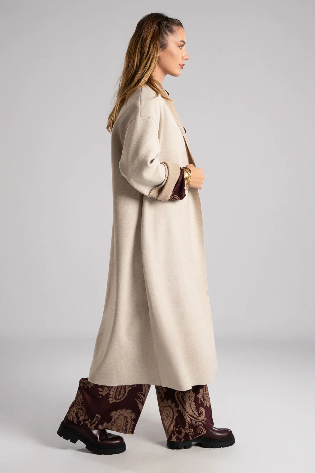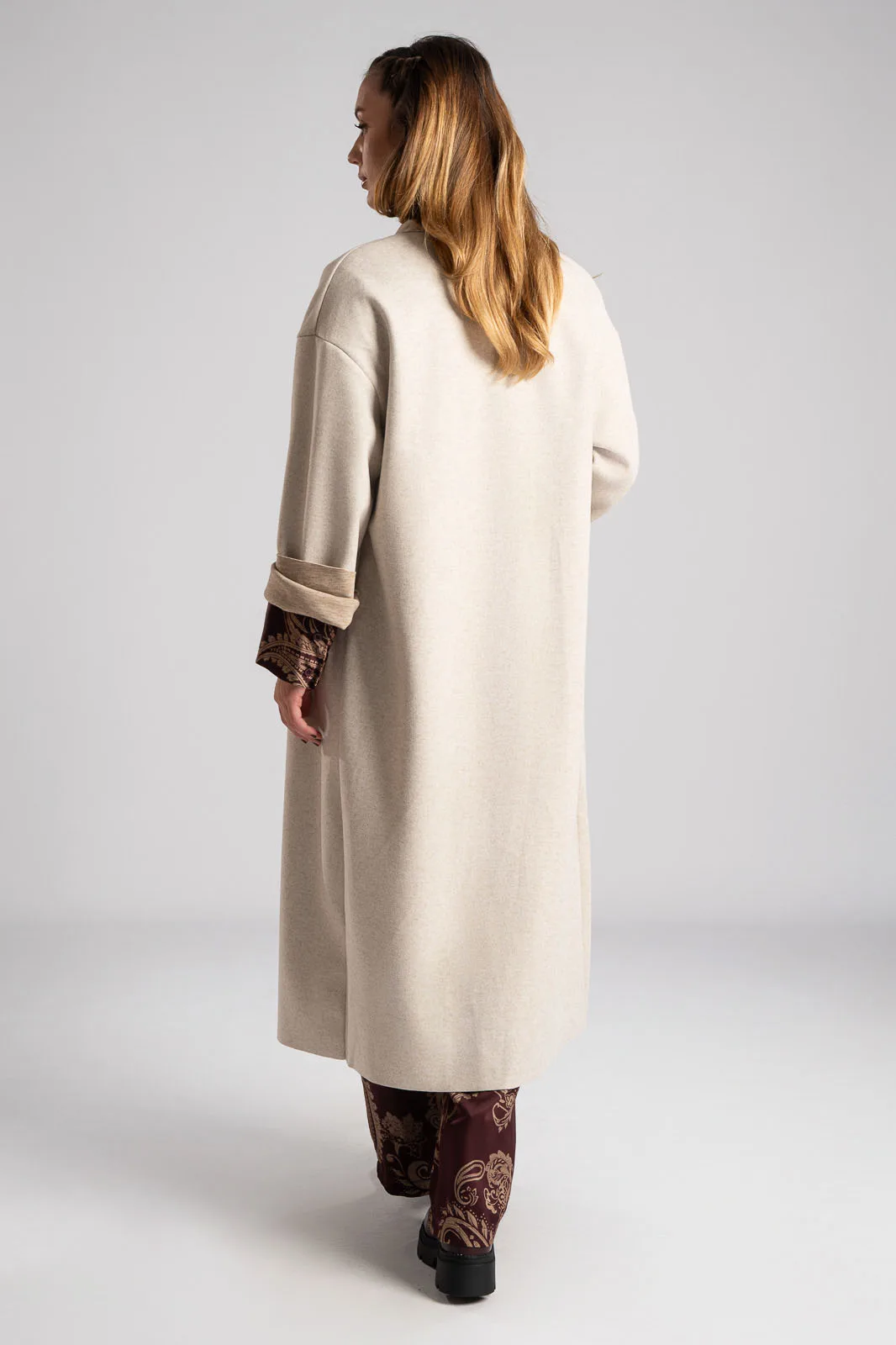 Παλτοζακέτα με γιακά. Διαθέτε μακριά μανίκια. Στο μπροστινό μέρος κλείνει με ένα κουμπί και έχει και ένα διακοσμητικό. Εσωτερικά δεν είναι φοδραρισμένο. Η μέτρηση έχει γίνει με κλειστό κουμπί. Οι μετρήσεις του πίνακα είναι αντιπροσωπευτικές για κάθε κωδικό. 100% polyester.