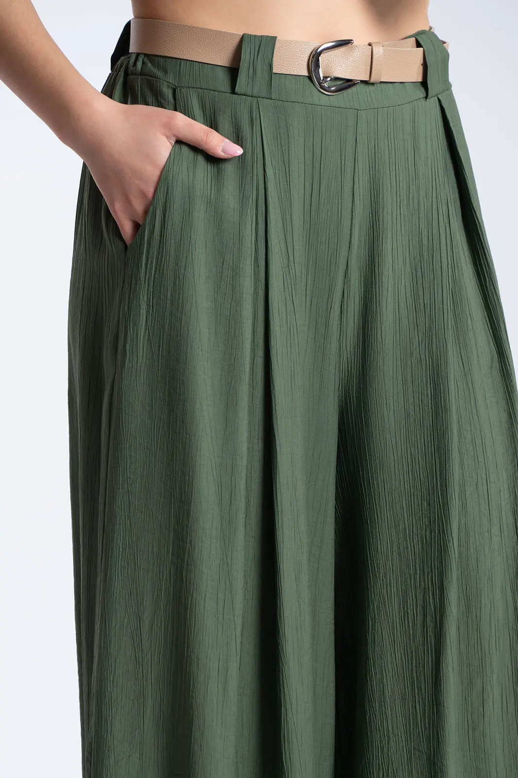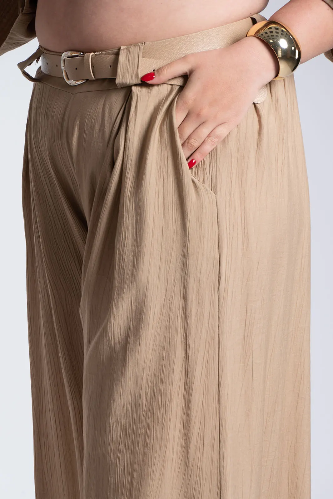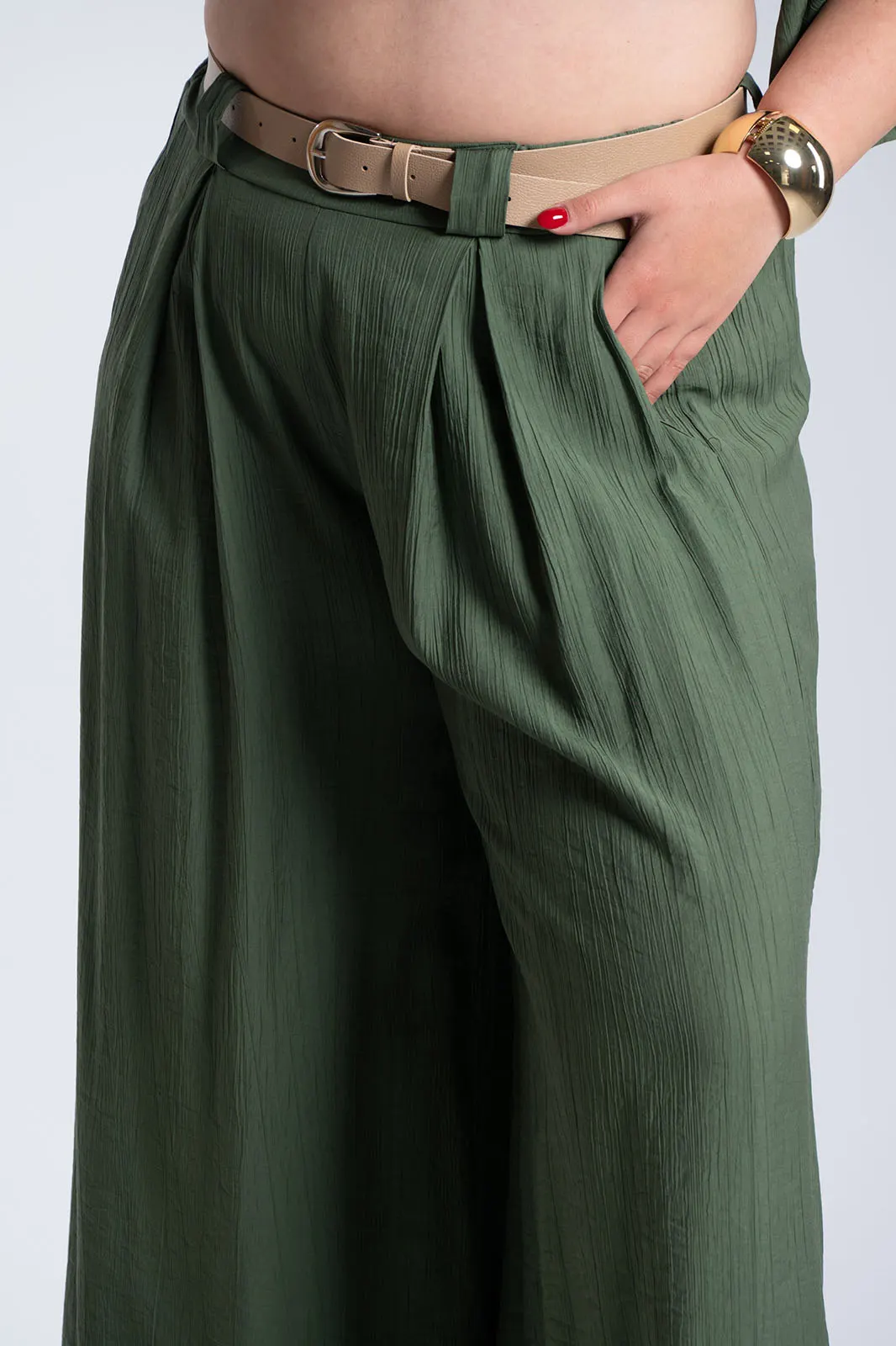 Παντελόνα Εφέ Πλισέ Με Ζώνη