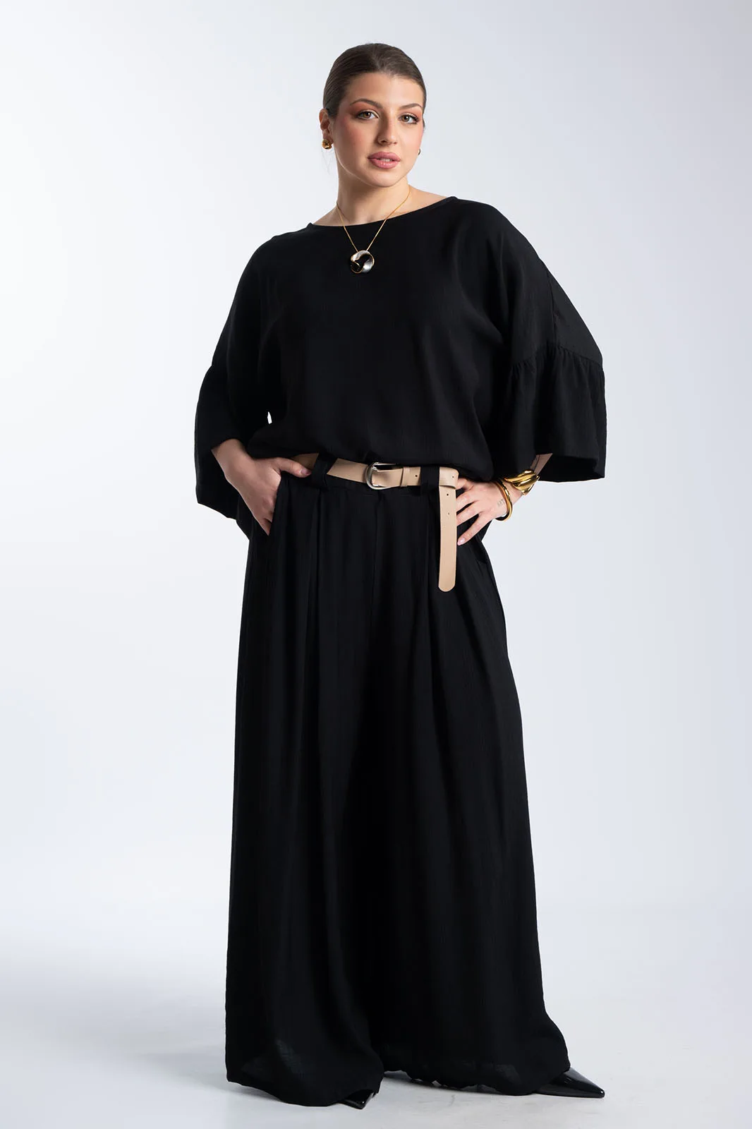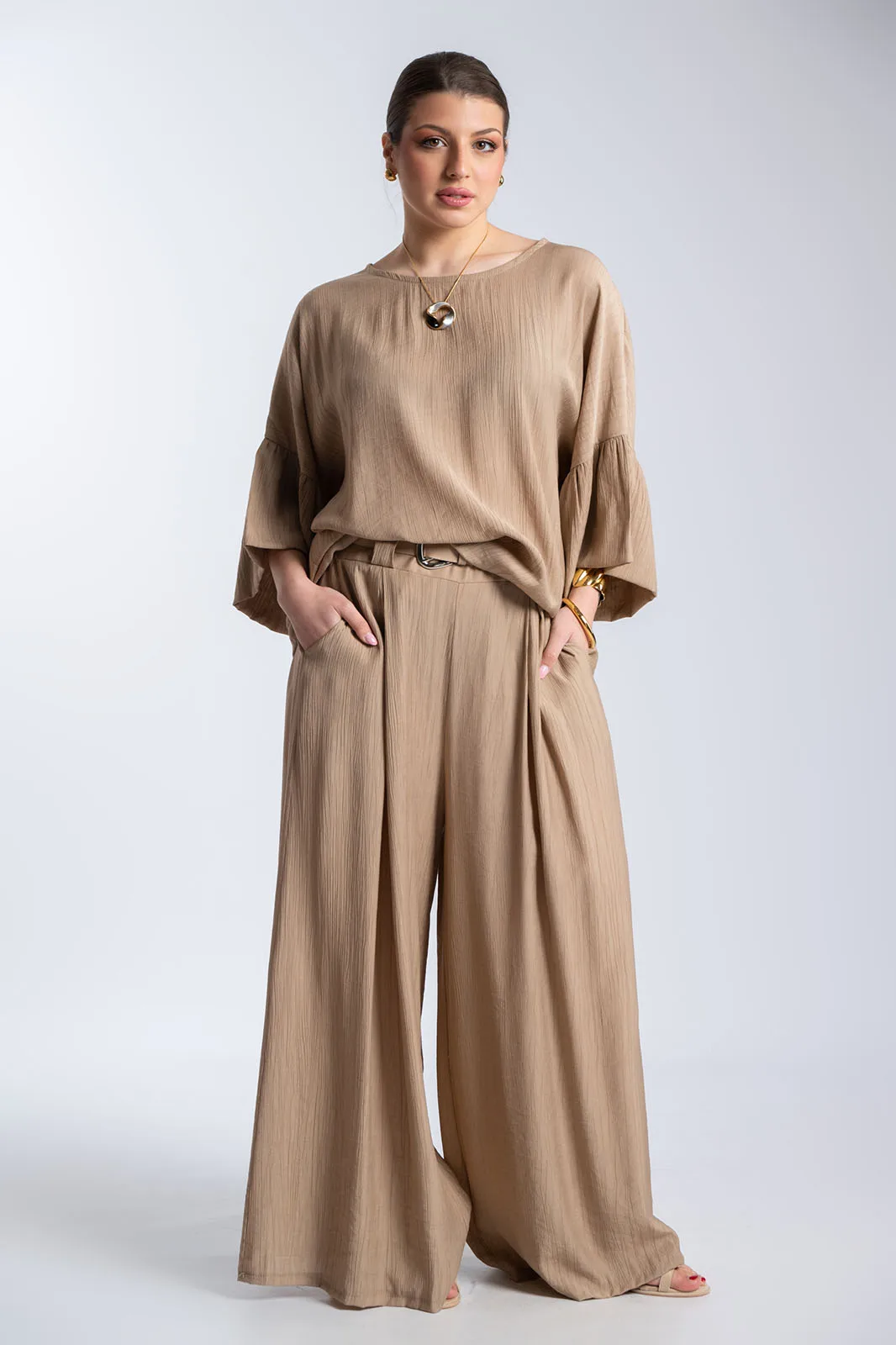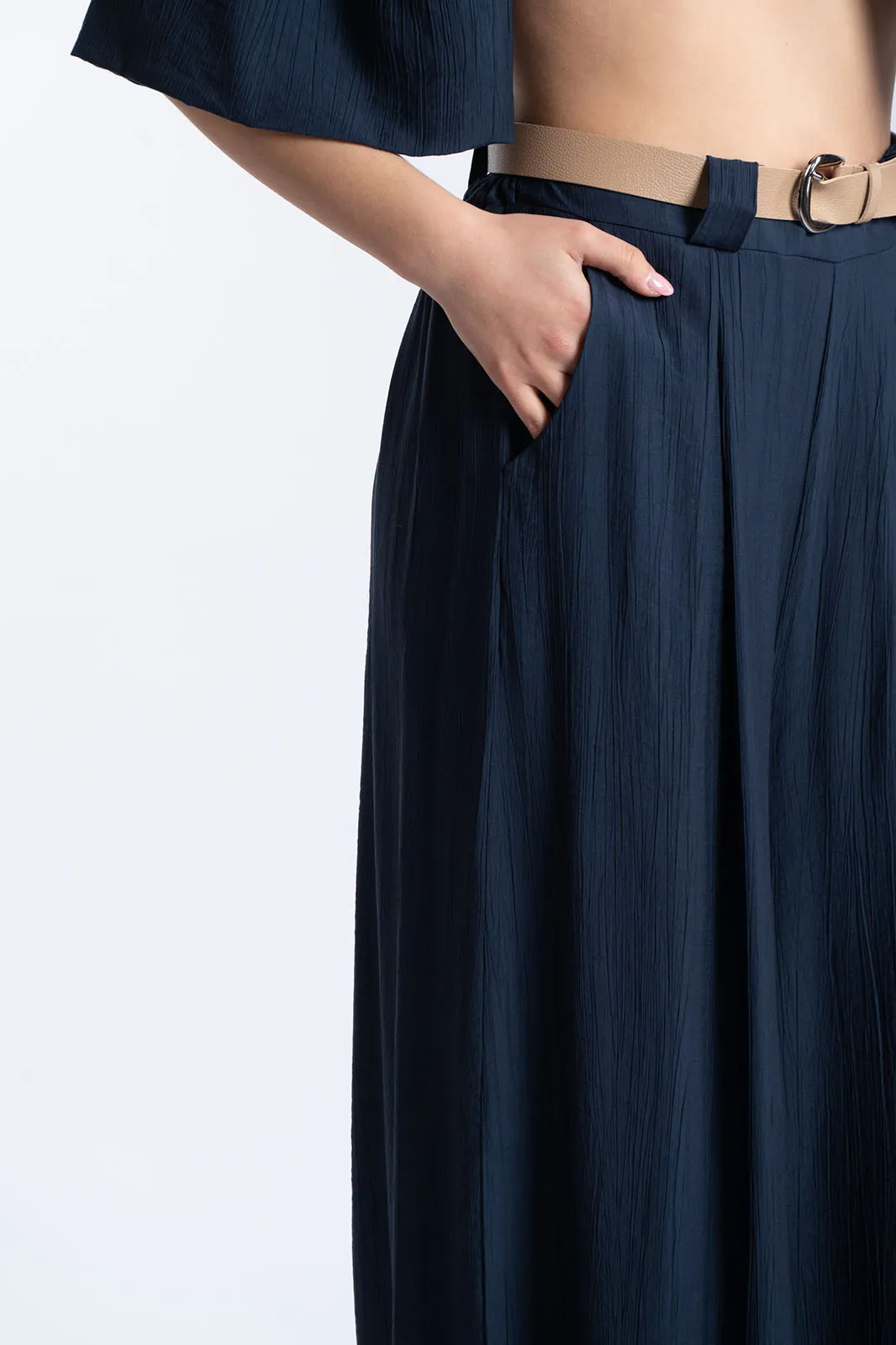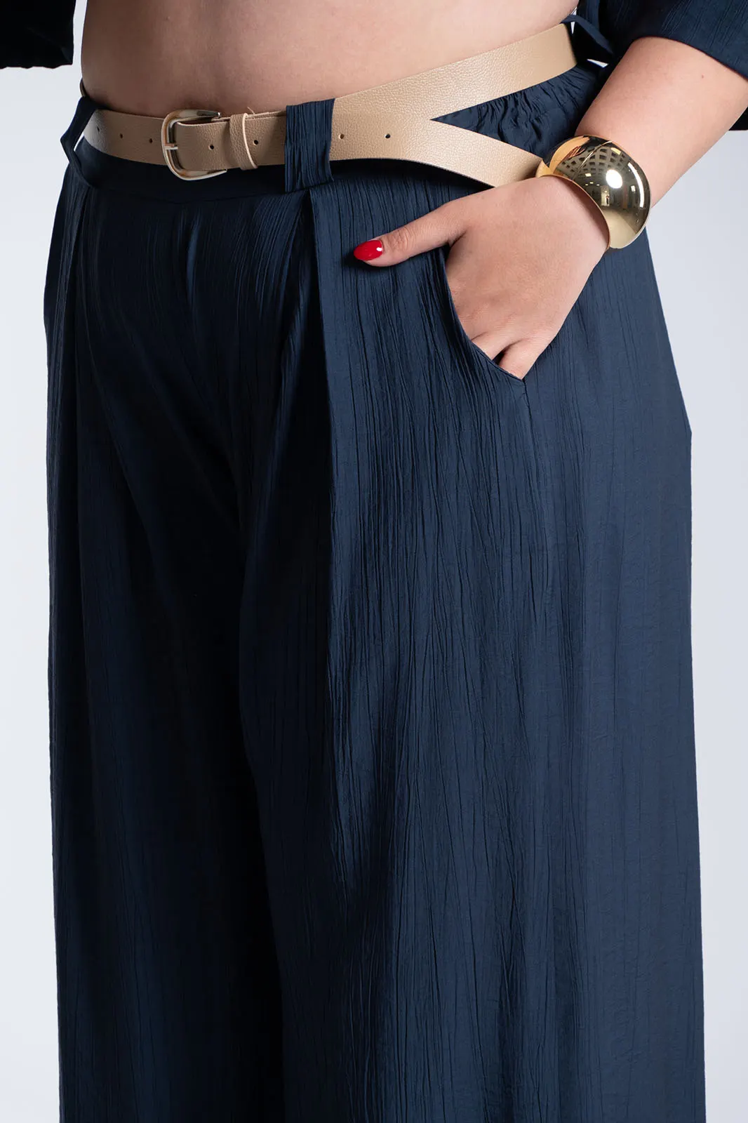 Παντελόνα Εφέ Πλισέ Με Ζώνη