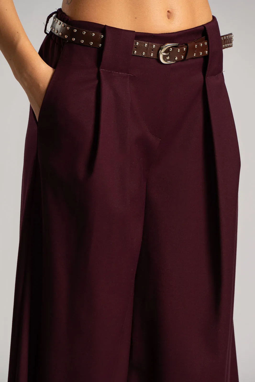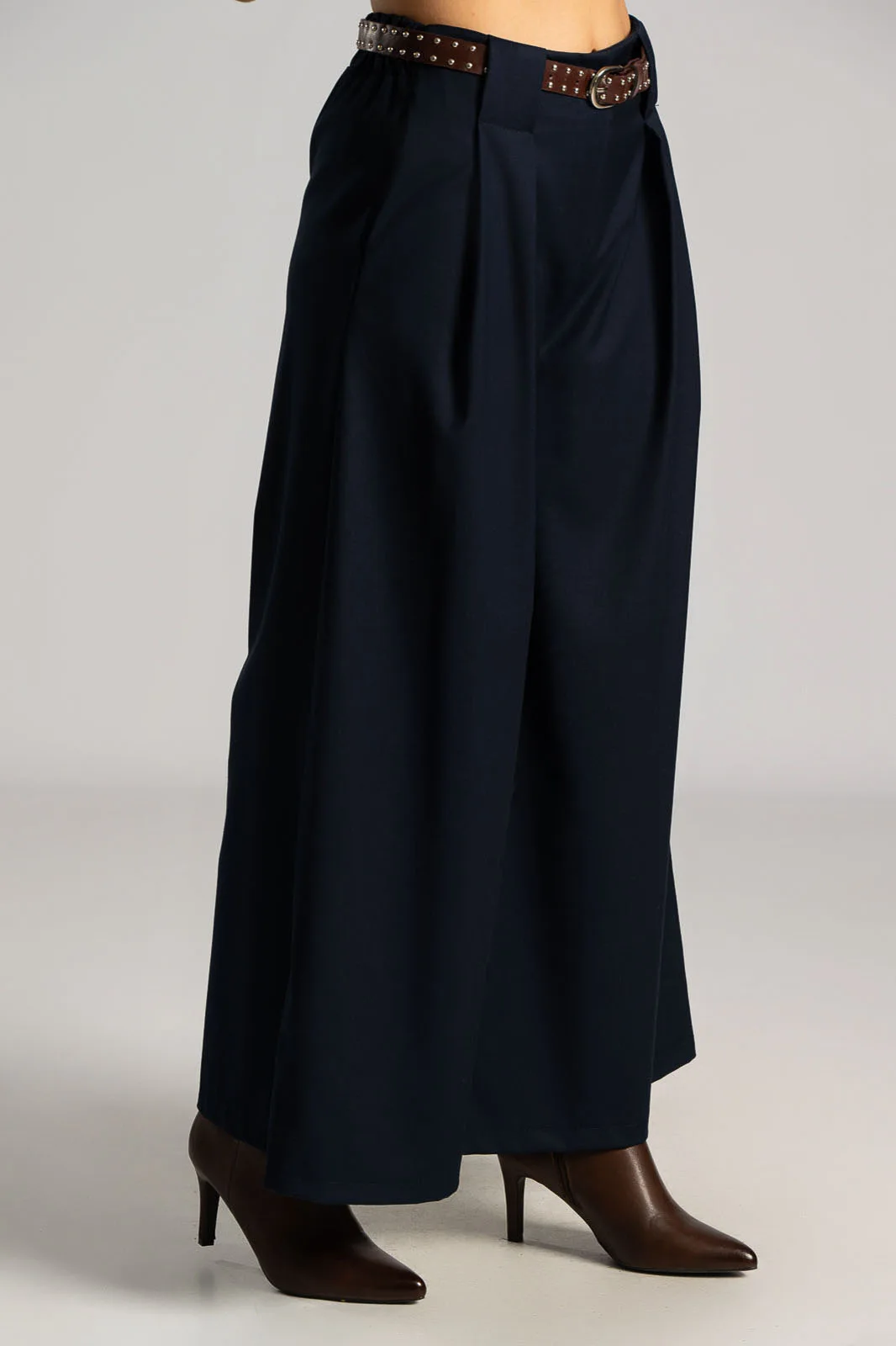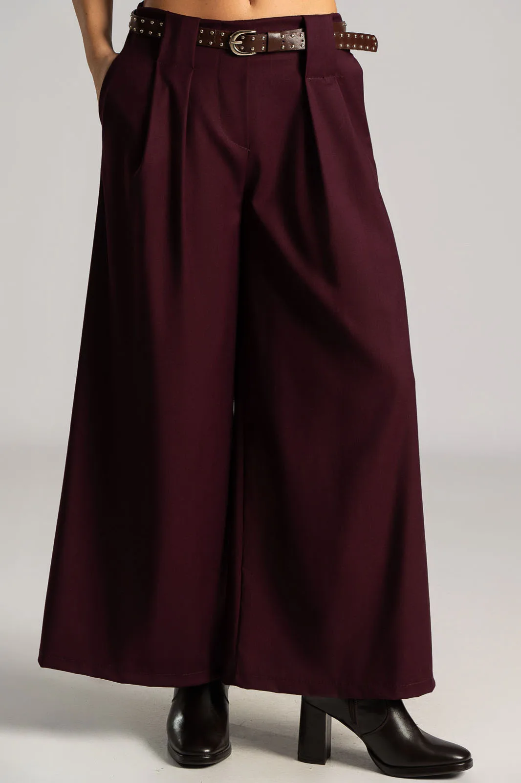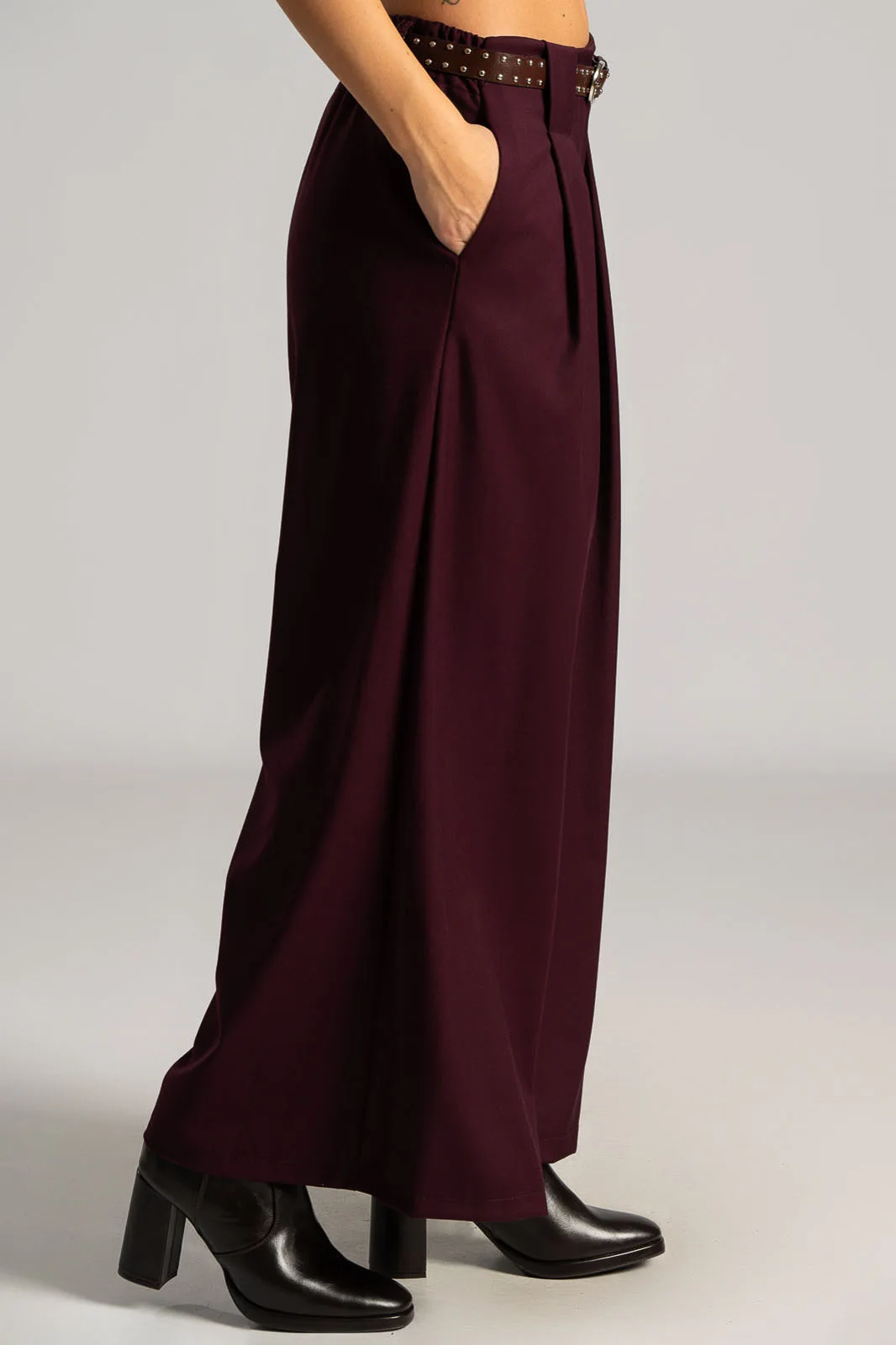 Fabric pants. Elastic waistband. Features a belt with decorative buckles for a better fit. Pleats at the front. Side pockets. The measurements in the table are representative of each product. 64% polyester, 33% viscose, 3% elastane.