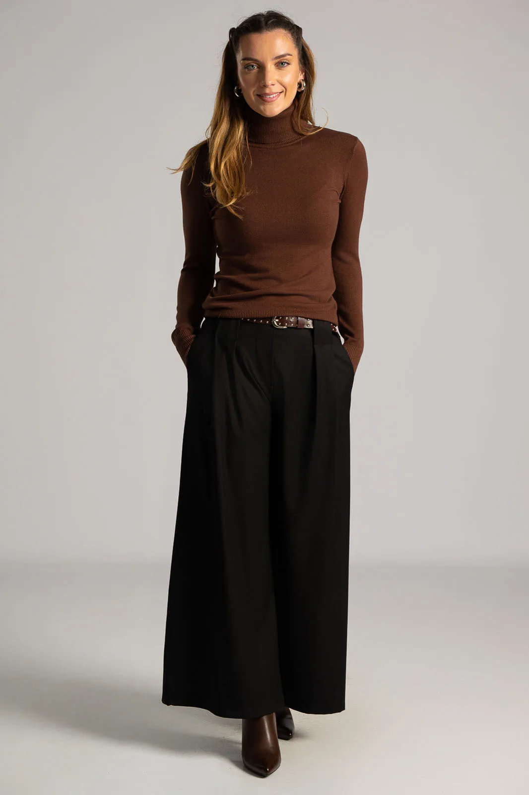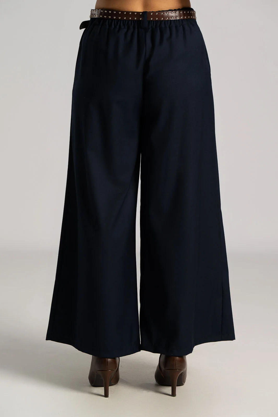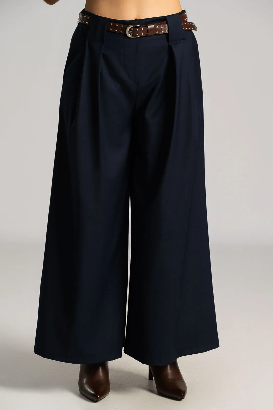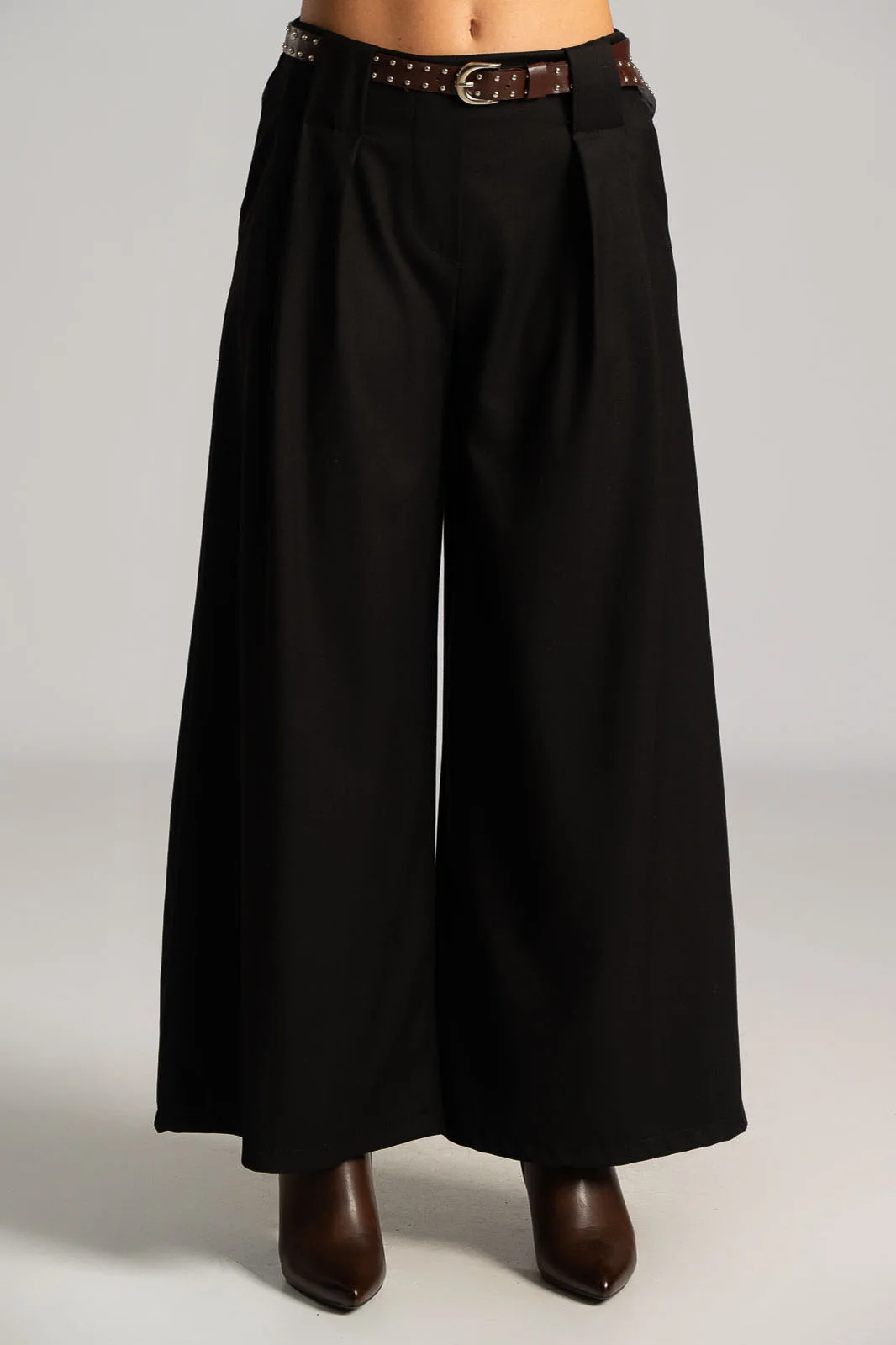 Fabric pants. Elastic waistband. Features a belt with decorative buckles for a better fit. Pleats at the front. Side pockets. The measurements in the table are representative of each product. 64% polyester, 33% viscose, 3% elastane.