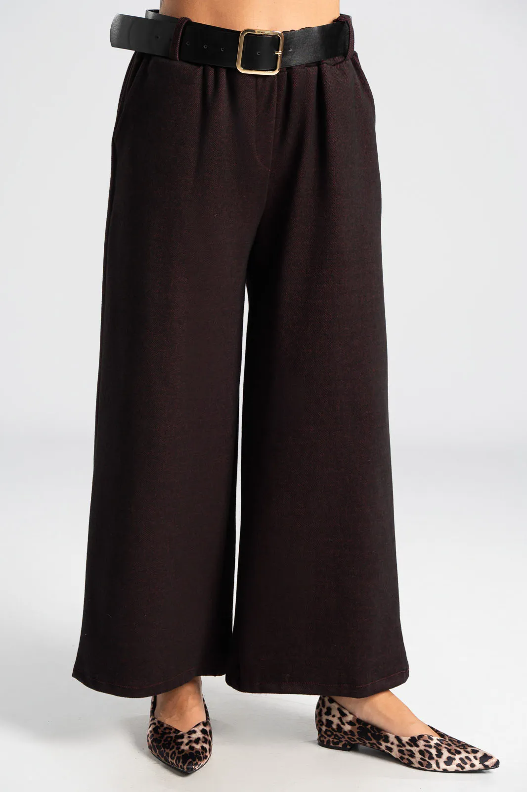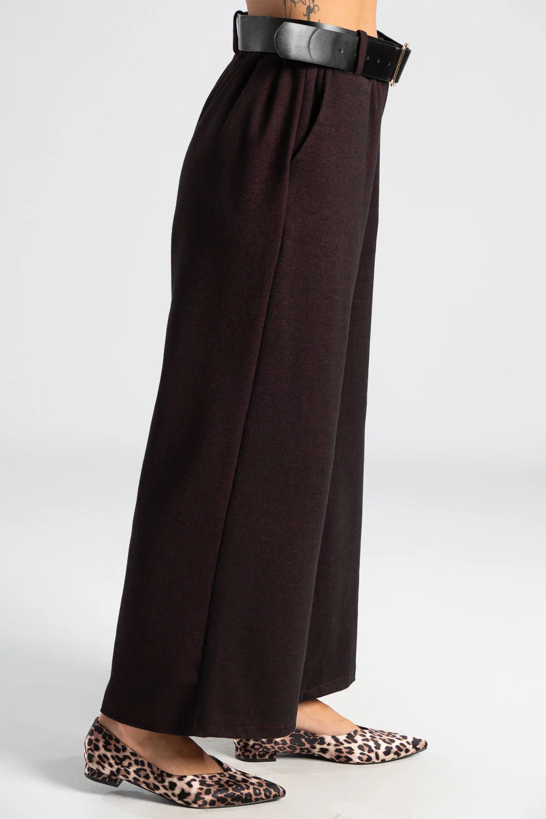 PANTS STRIPED LEATHERETTE BELT DARK RED