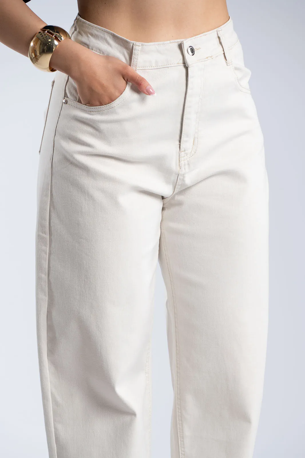 Denim παντελόνι με ψηλόμεση εφαρμογή και tapered γραμμή που στενεύει ελαφρώς προς το τελείωμα. Διαθέτει κλασικό 5τσεπο σχέδιο και κλείσιμο με κουμπί και φερμουάρ. Η γραμμή του αγκαλιάζει τη μέση και τους γοφούς, ενώ χαλαρώνει στο πόδι, προσφέροντας άνεση και σύγχρονο ύφος.