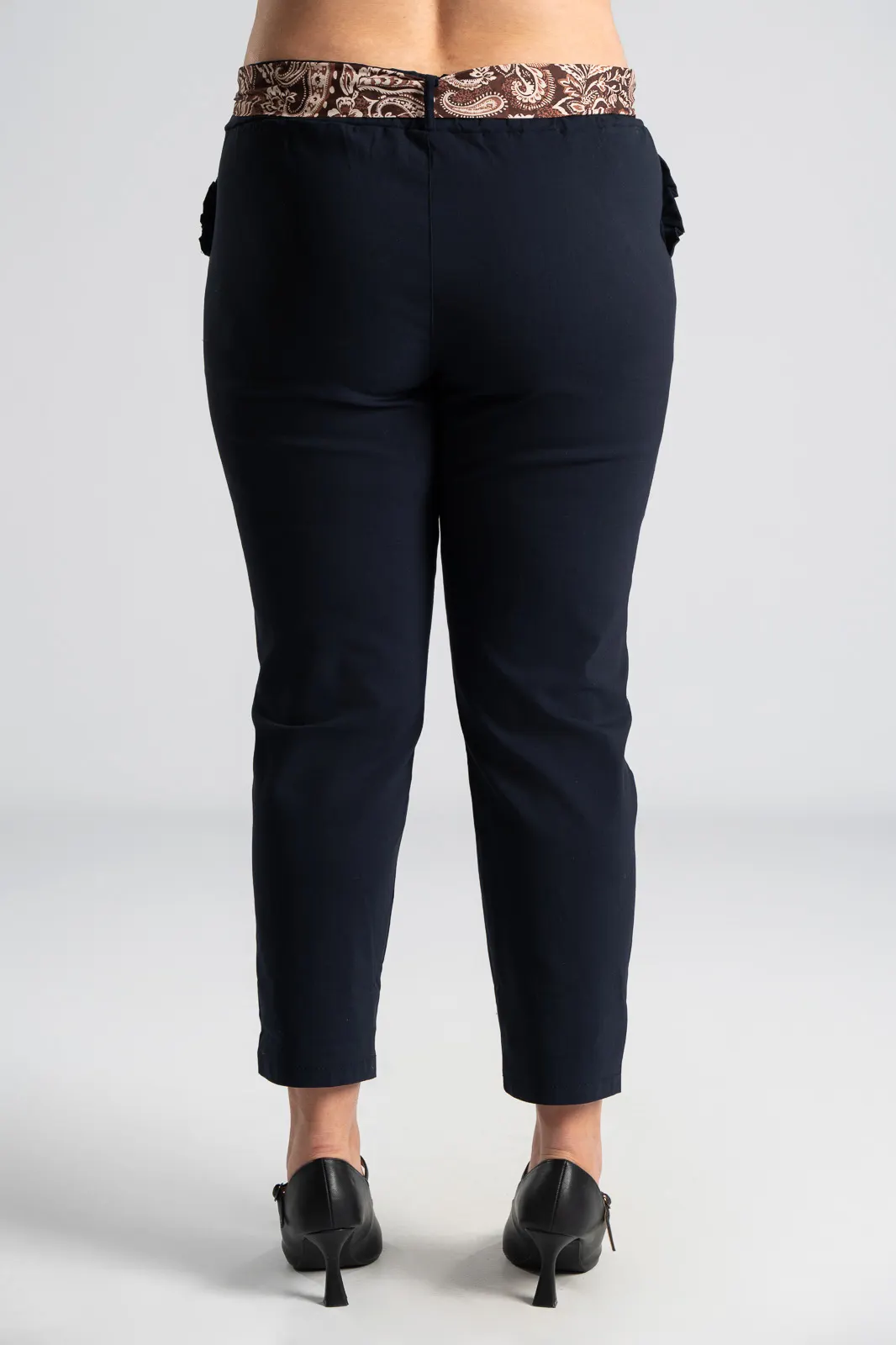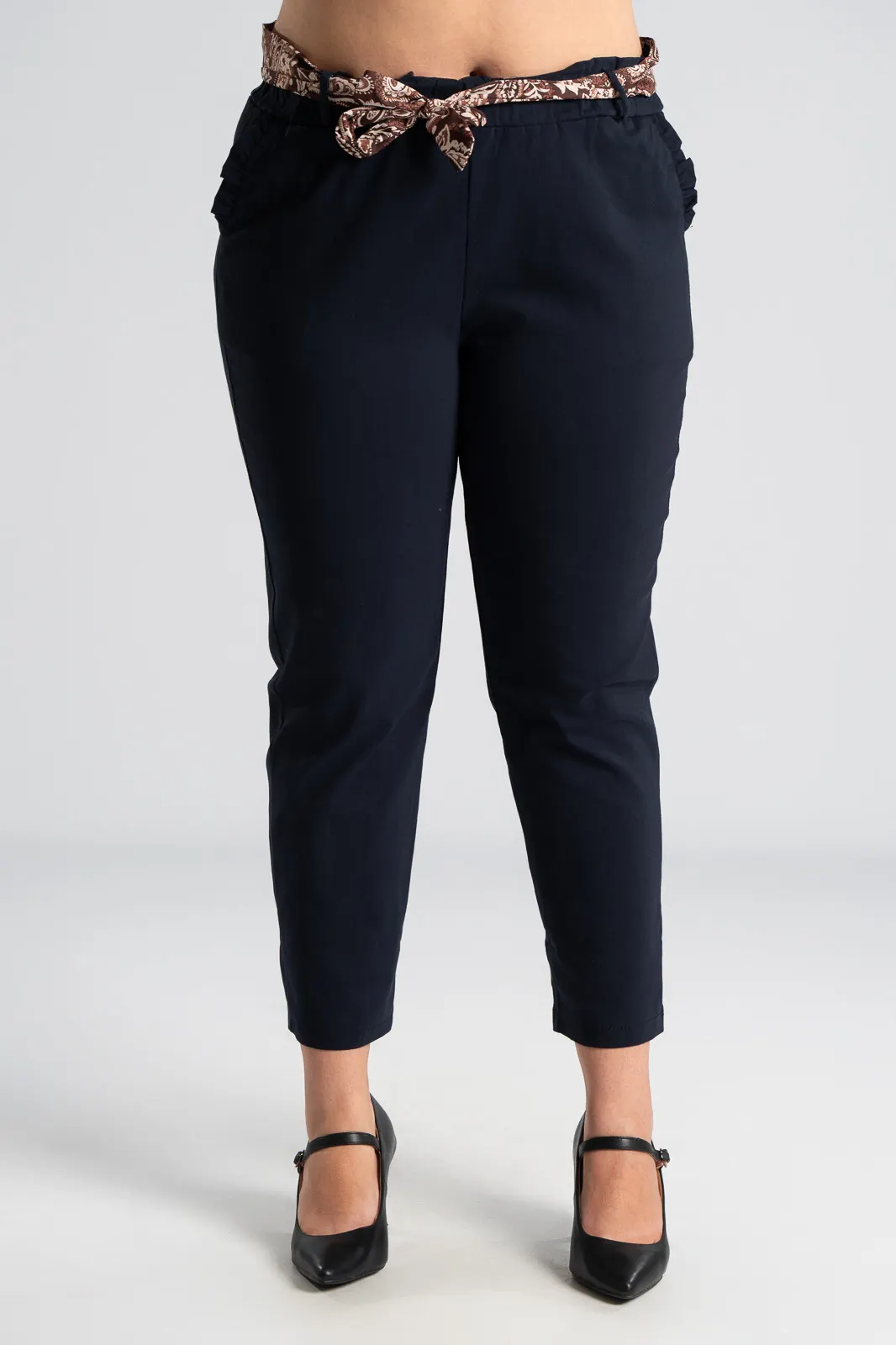 PANTS SCARF RUFFLES POCKETS BLUE BLACK