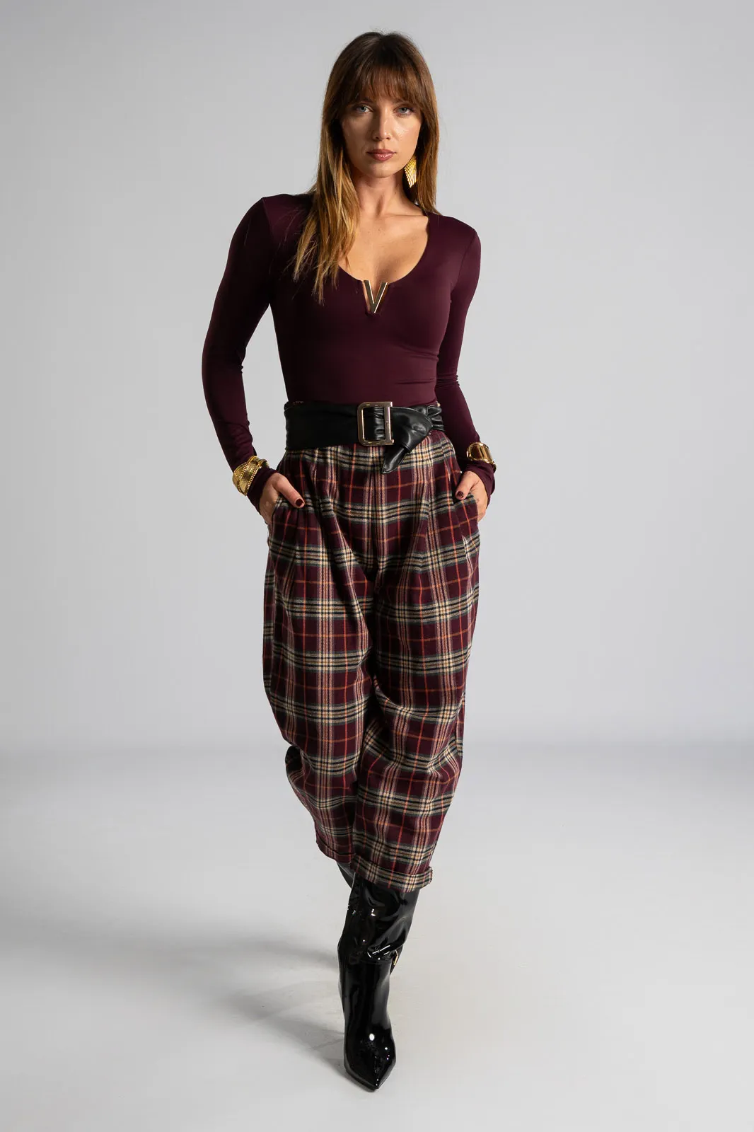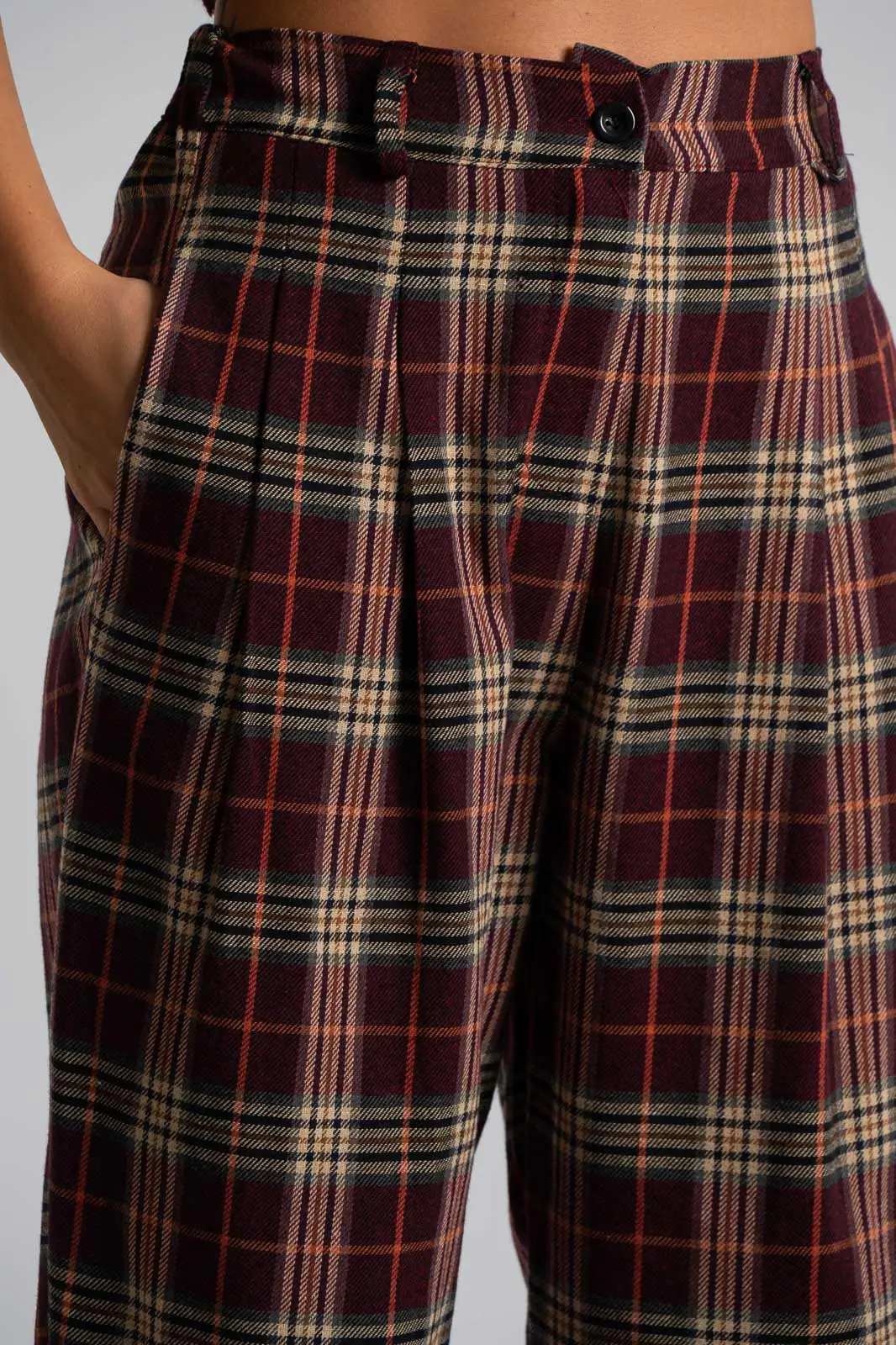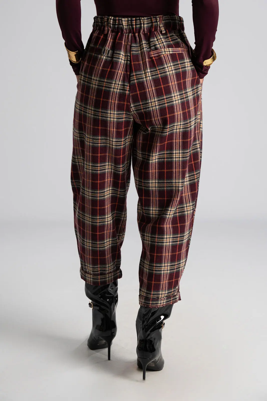Slouchy checkered pants with elastic at the back for a better fit. They have side pockets and a waist/">high waist. Pleats at the front. The measurements in the table are representative of each product. 54% polyester, 34% viscose, 2% elastane.
