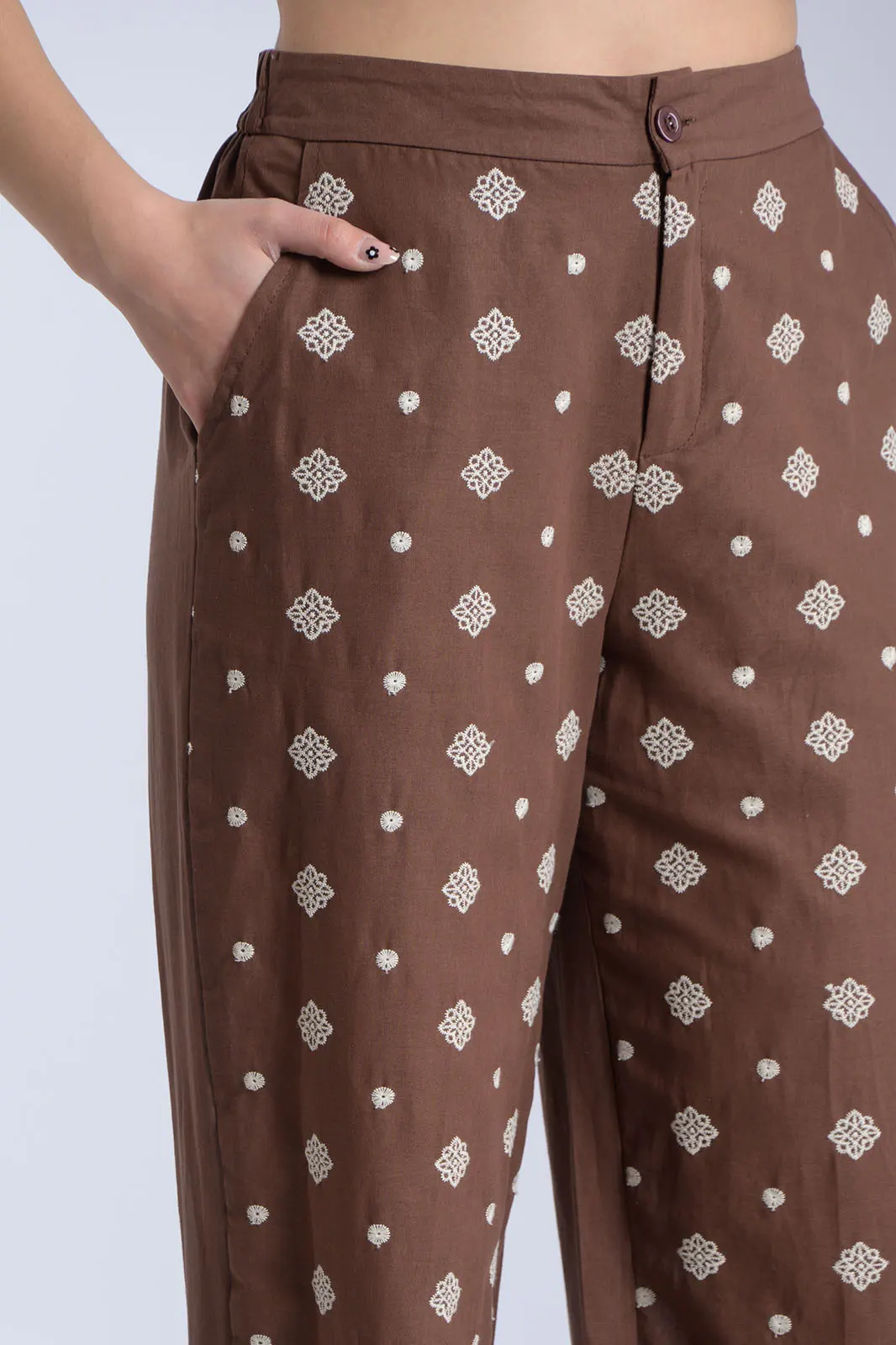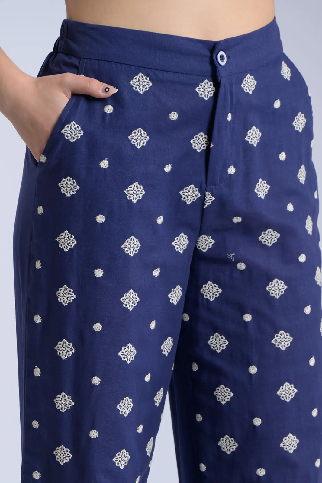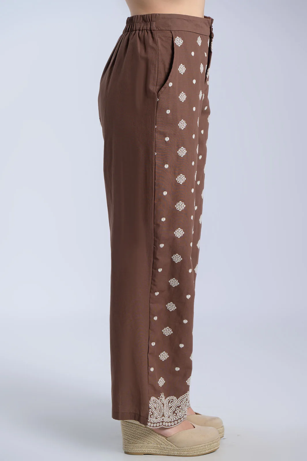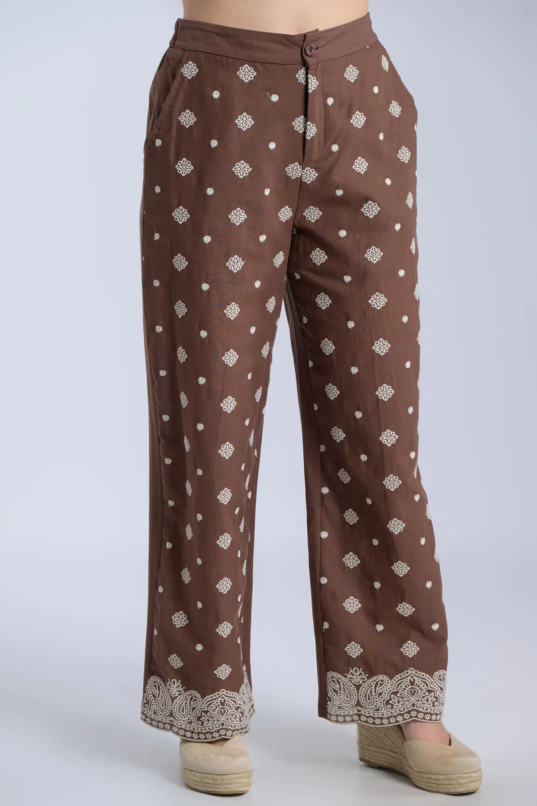 Άνετο και κομψό παντελόνι κάπρι σε ανάλαφρη γραμμή, ιδανικό για καθημερινές καλοκαιρινές εμφανίσεις. Διαθέτει ελαστική μέση στο πίσω μέρος, ενώ το διακριτικό all-over μοτίβο με κεντημένες λεπτομέρειες χαρίζει ιδιαίτερο χαρακτήρα. Κλείνει με κουμπί και φερμουάρ και έχει πλαινές τσέπες για πρακτικότητα.
