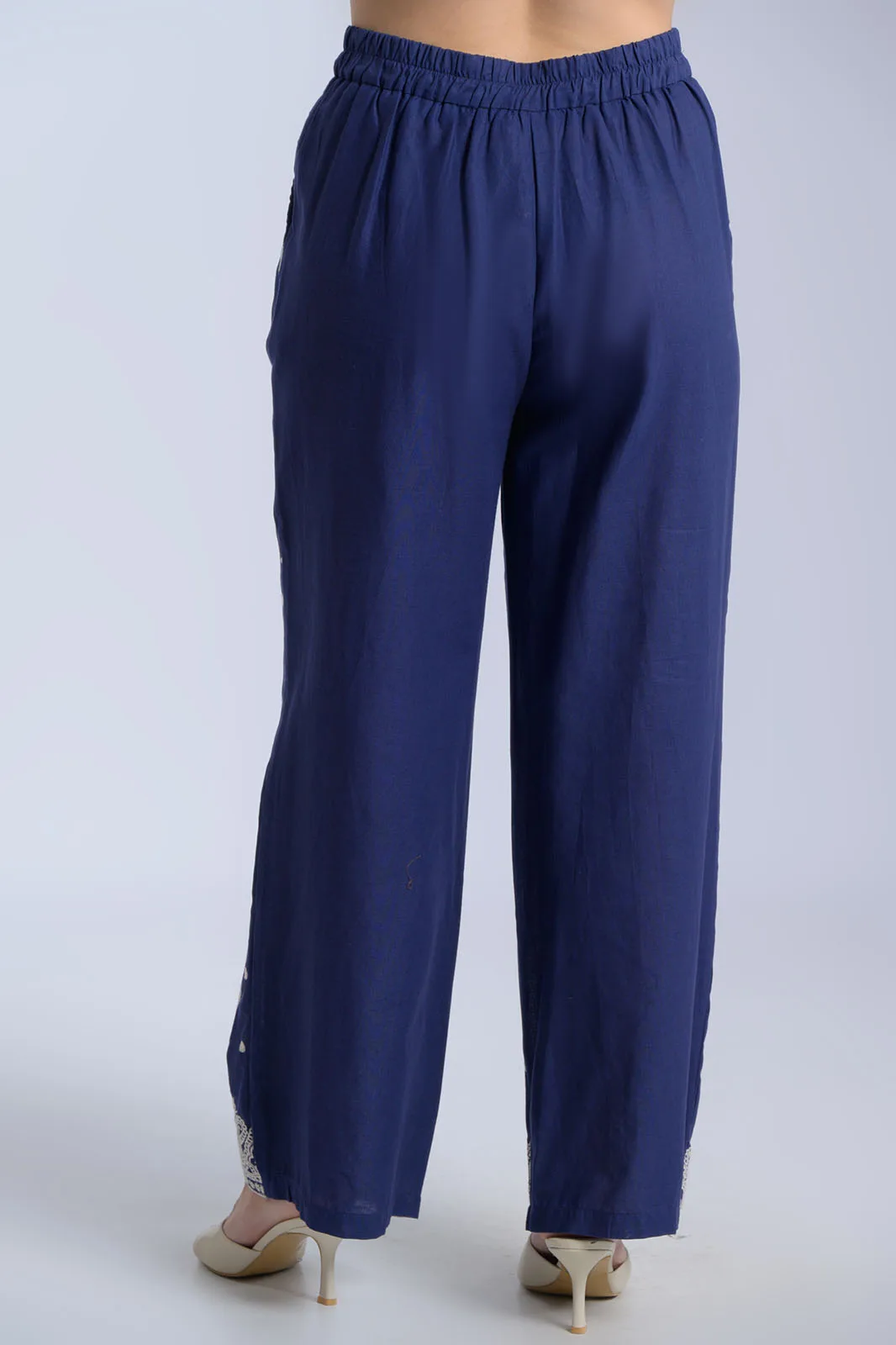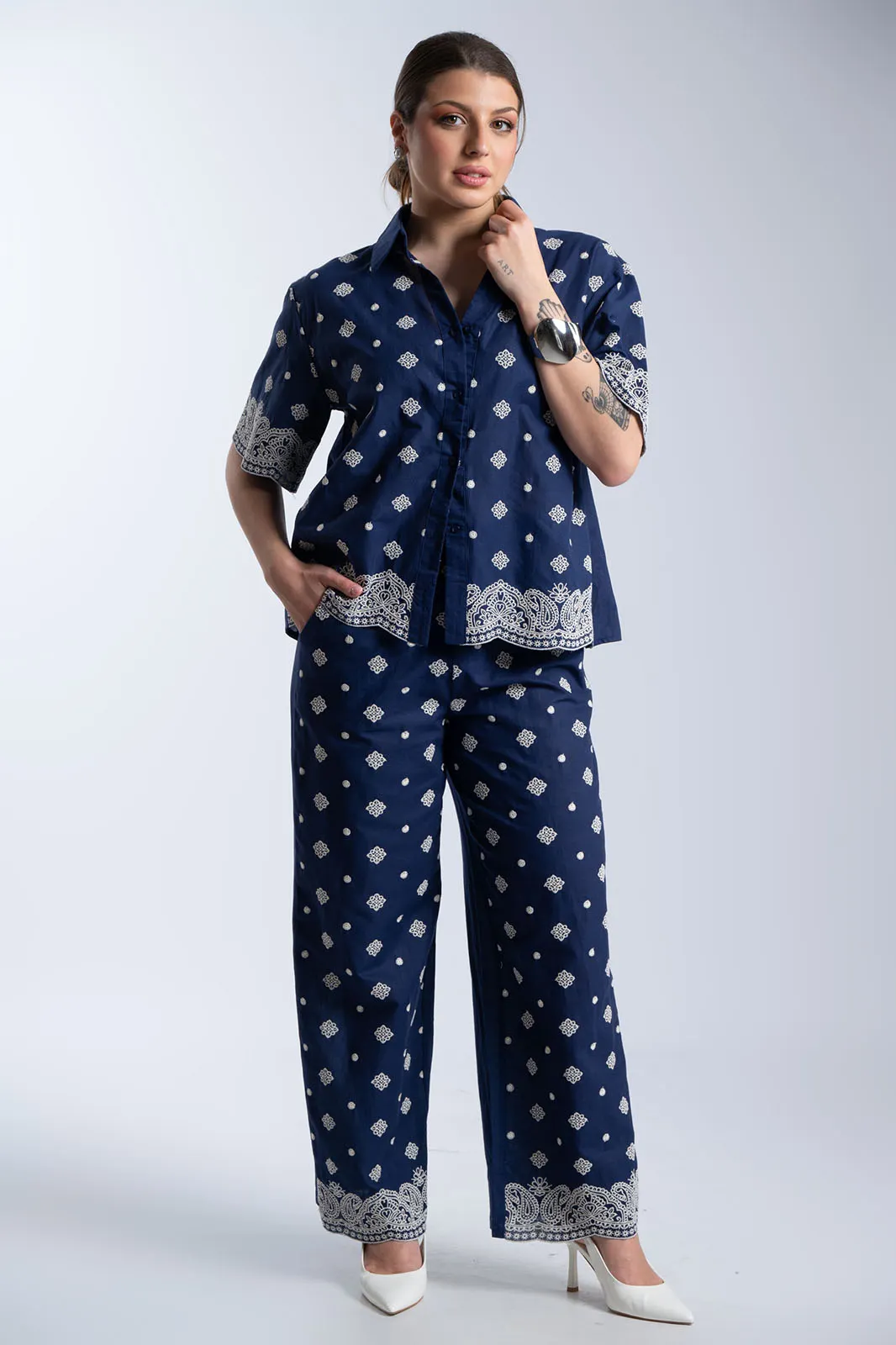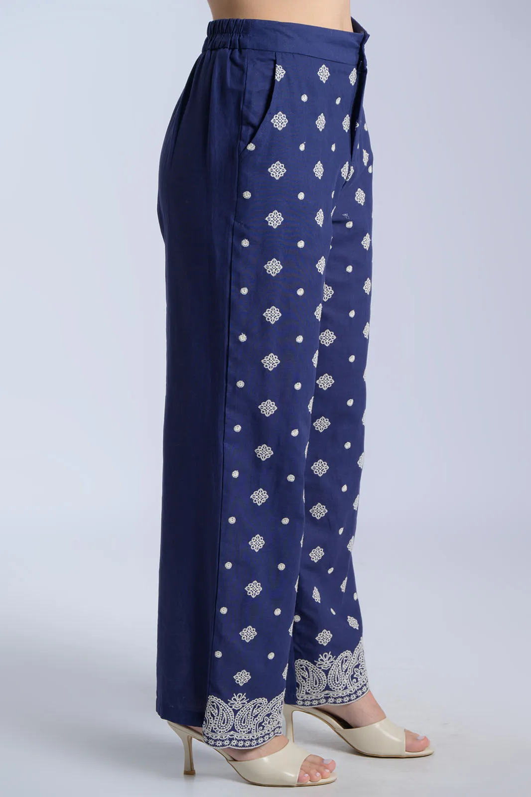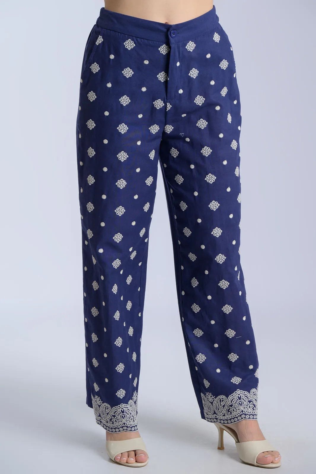 Άνετο και κομψό παντελόνι κάπρι σε ανάλαφρη γραμμή, ιδανικό για καθημερινές καλοκαιρινές εμφανίσεις. Διαθέτει ελαστική μέση στο πίσω μέρος, ενώ το διακριτικό all-over μοτίβο με κεντημένες λεπτομέρειες χαρίζει ιδιαίτερο χαρακτήρα. Κλείνει με κουμπί και φερμουάρ και έχει πλαινές τσέπες για πρακτικότητα.