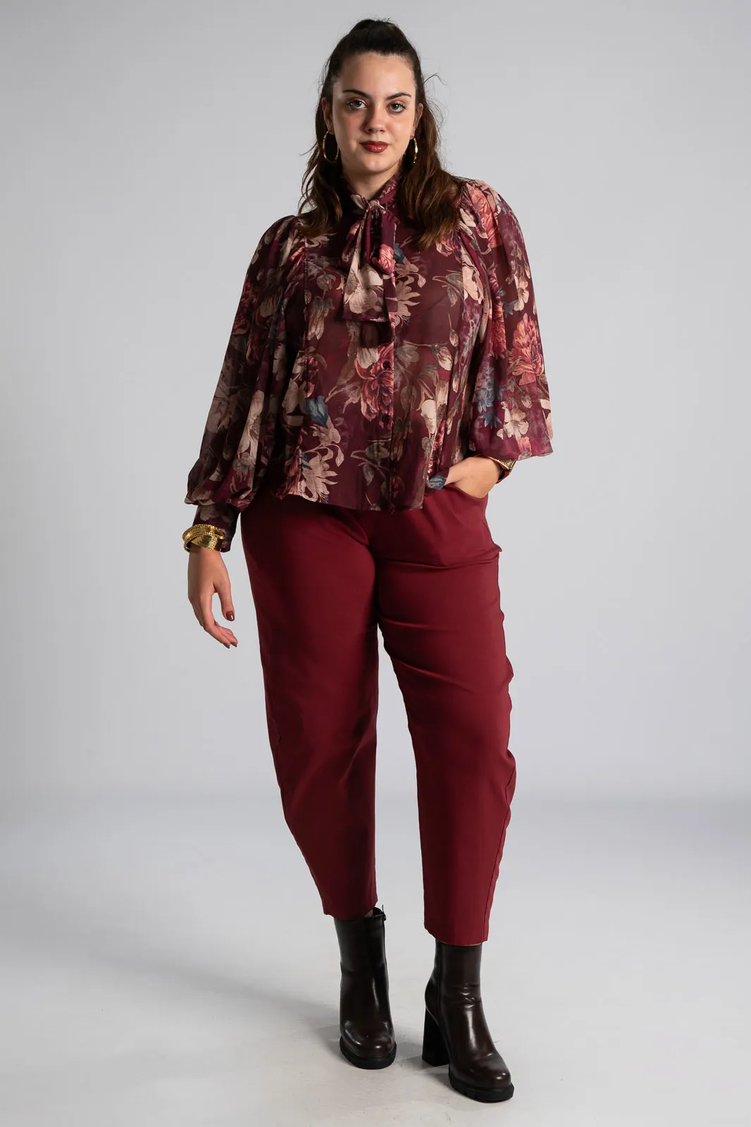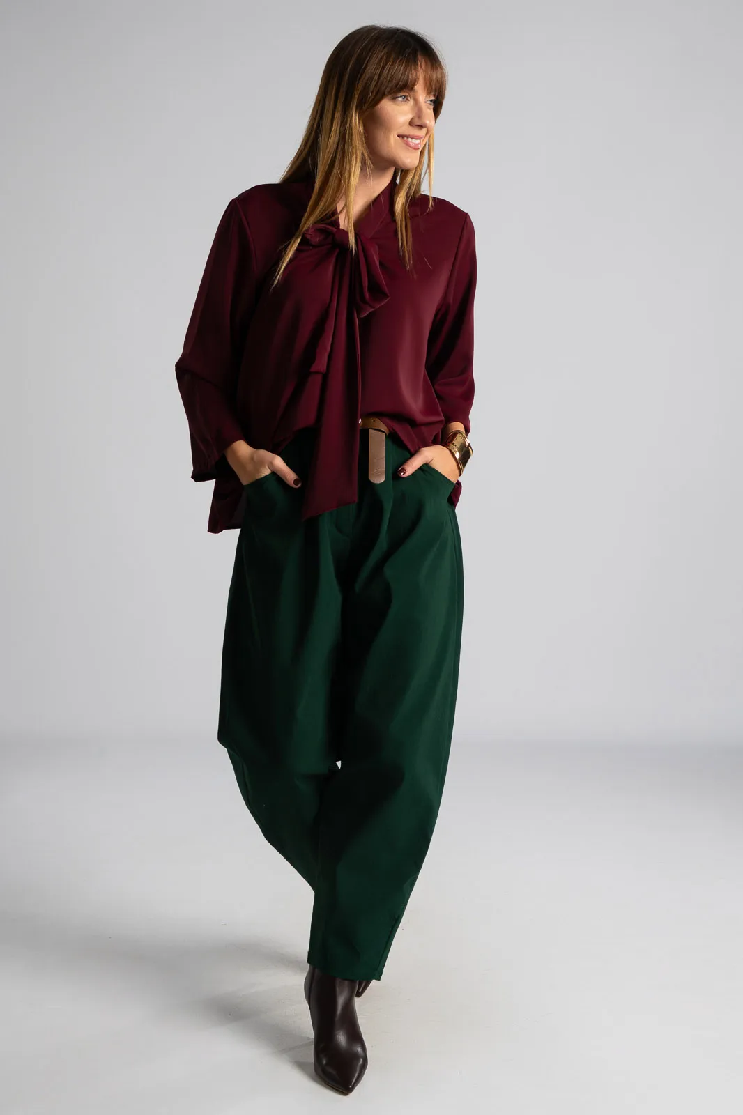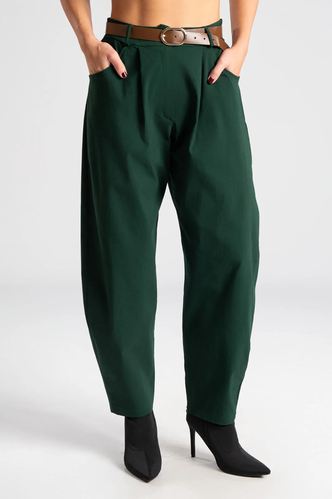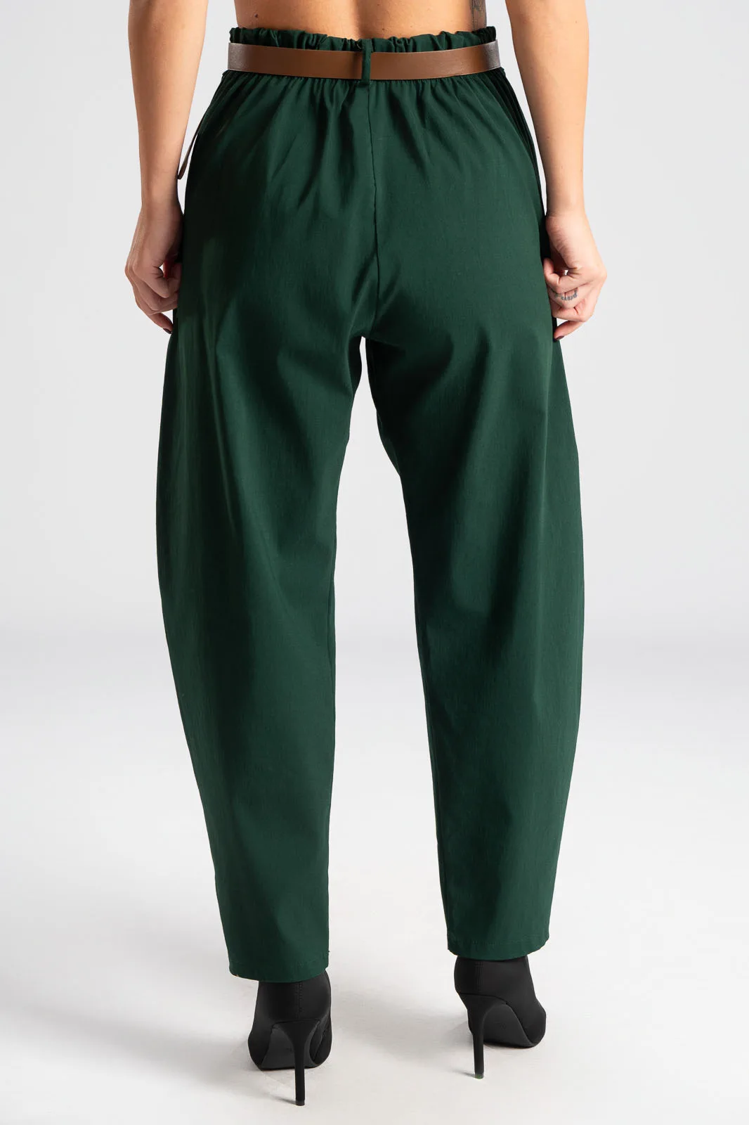 PANTS SOLID COLOR SLOUCHY WAISTBAND CYPRESS