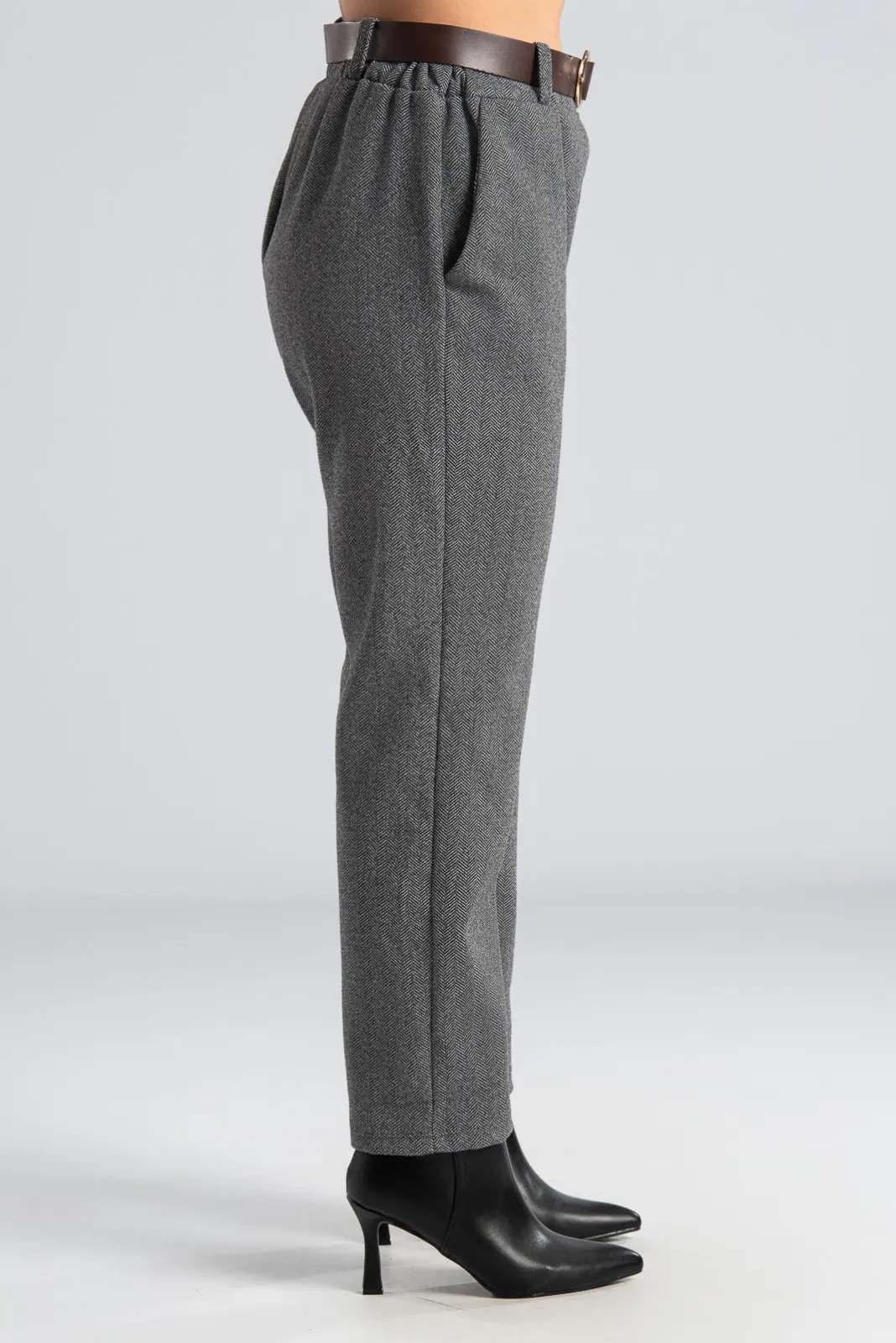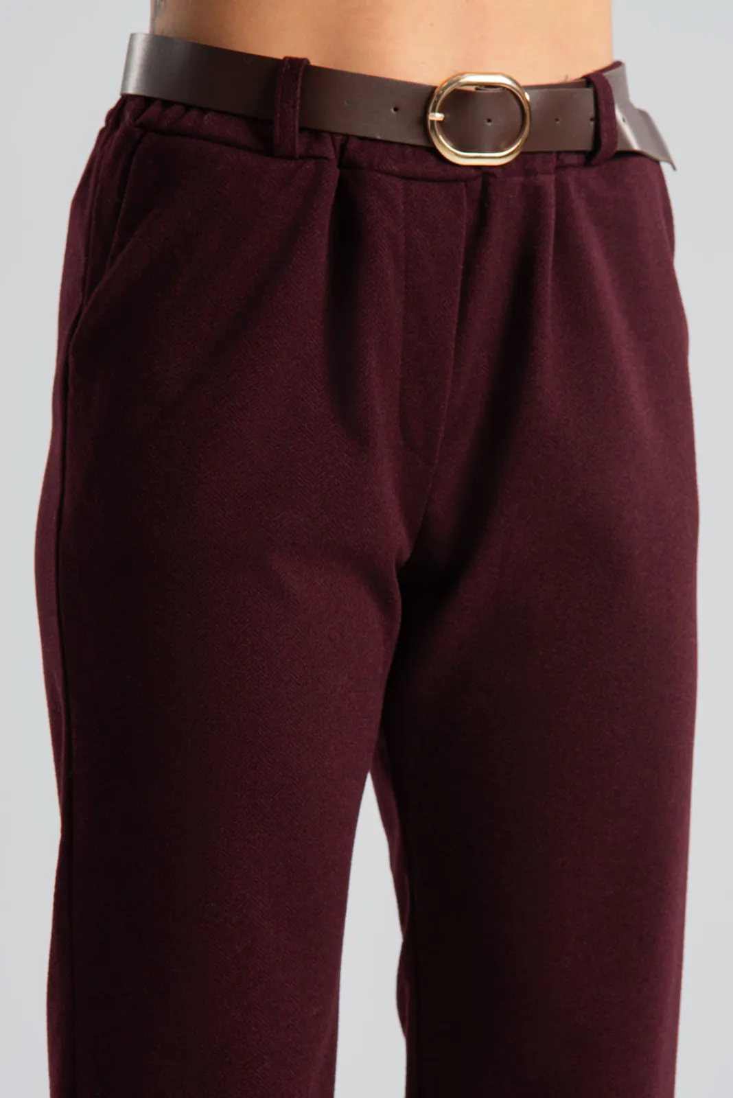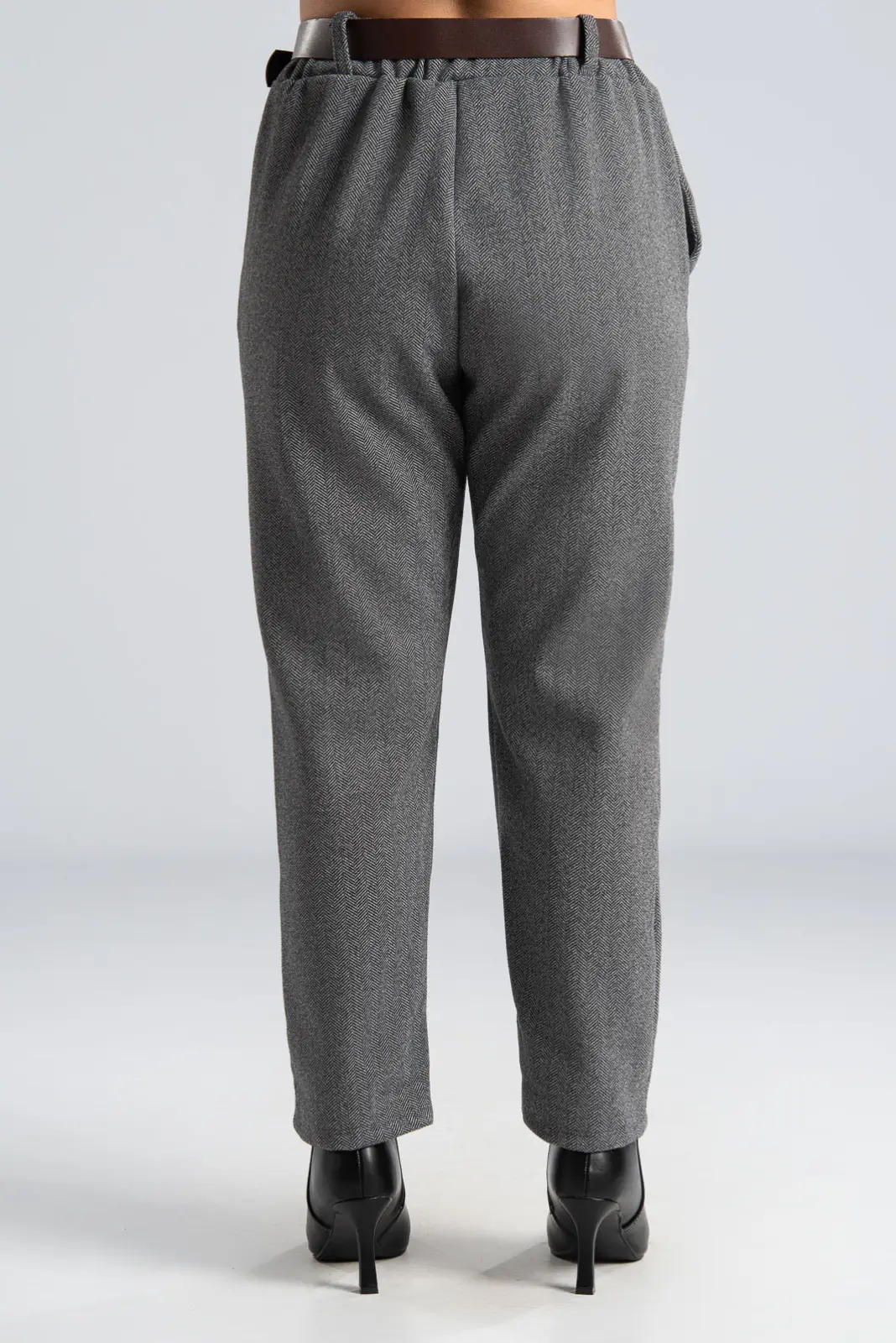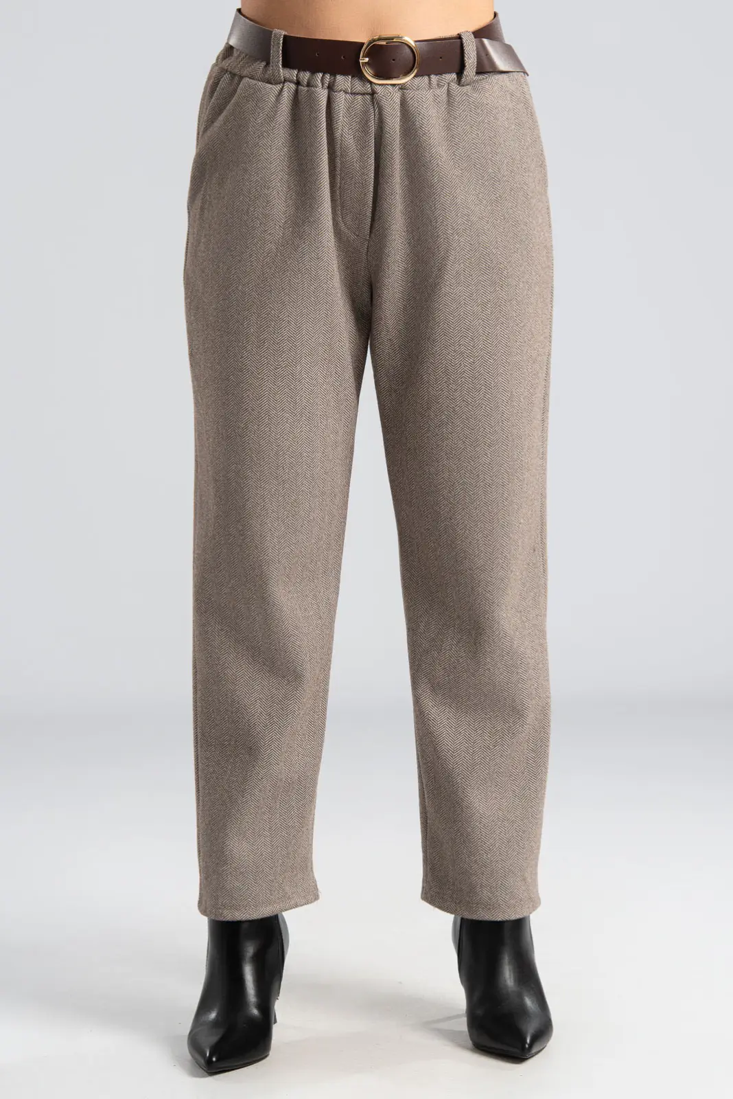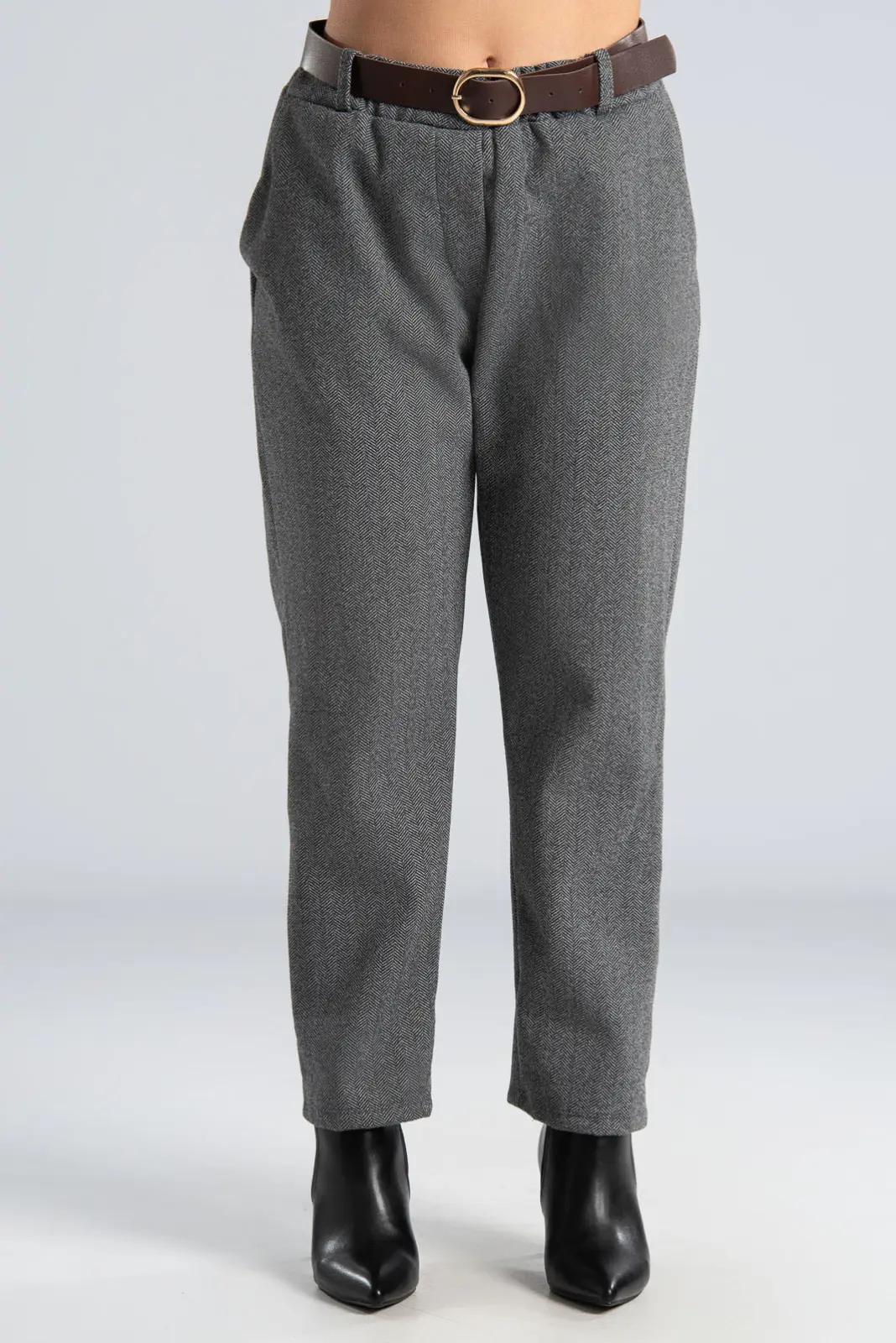 Παντελόνι ψηλόμεσo με δική του ζώνη δερματίνη. Διαθέτει λάστιχο περιμετρικά για καλύτερη εφαρμογή. Διαθέτει πλαϊνές τσέπες και δεν έχει φερμουάρ. Το ύφασμα του είναι ριγωτό, πολύ μαλακό και σταθερό. Είναι μια επιλογή για όλες της ώρες της ημέρας. Οι μετρήσεις του πίνακα είναι αντιπροσωπευτικές για κάθε προϊόν. 100% polyester.