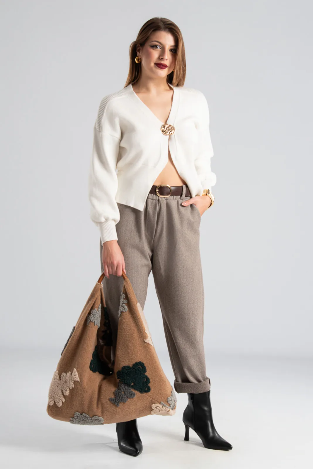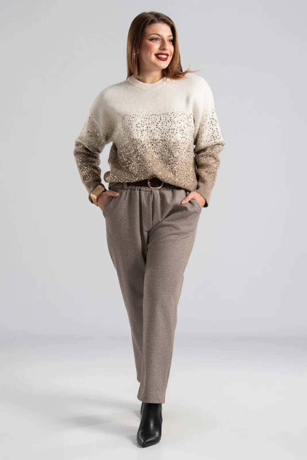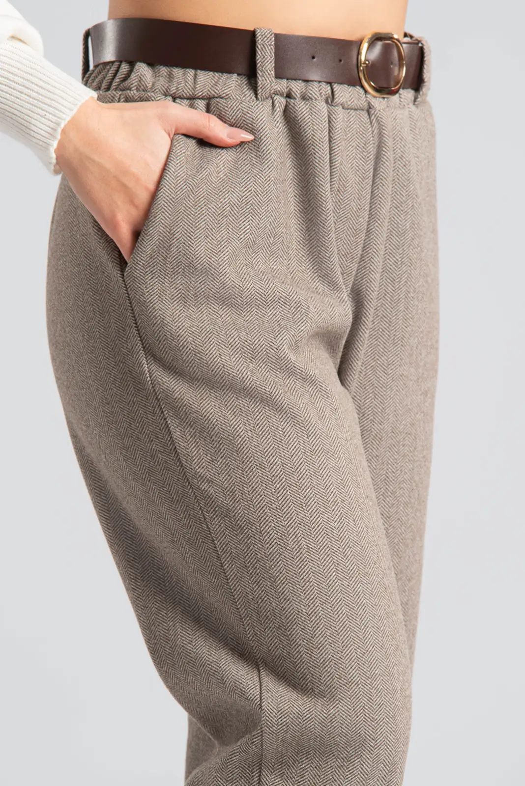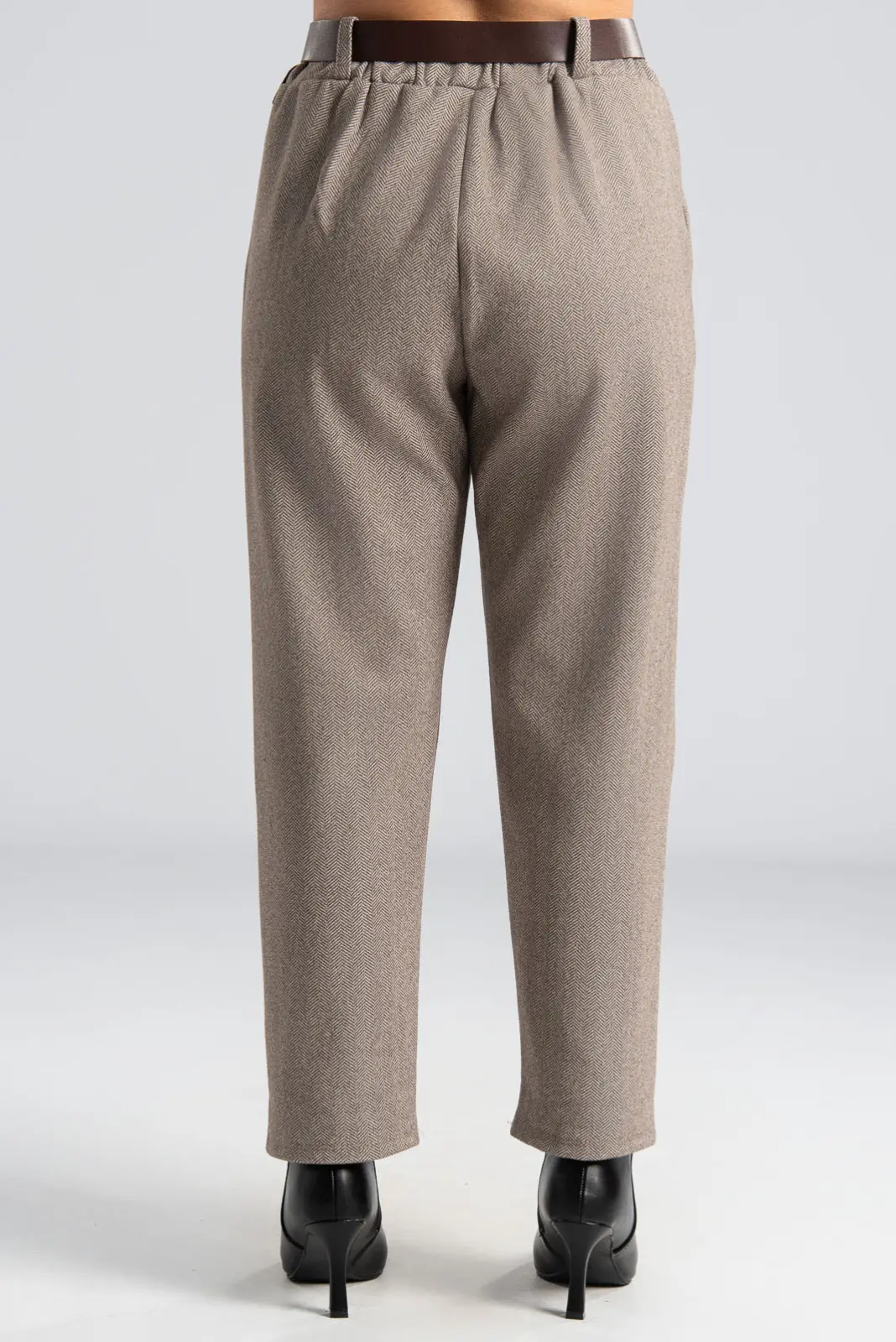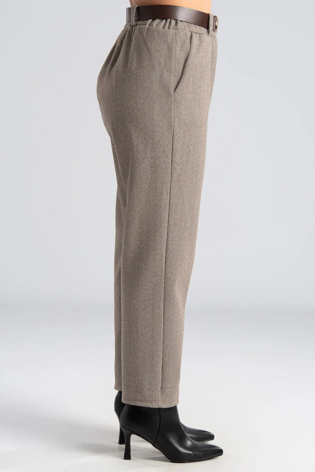 Παντελόνι ψηλόμεσo με δική του ζώνη δερματίνη. Διαθέτει λάστιχο περιμετρικά για καλύτερη εφαρμογή. Διαθέτει πλαϊνές τσέπες και δεν έχει φερμουάρ. Το ύφασμα του είναι ριγωτό, πολύ μαλακό και σταθερό. Είναι μια επιλογή για όλες της ώρες της ημέρας. Οι μετρήσεις του πίνακα είναι αντιπροσωπευτικές για κάθε προϊόν. 100% polyester.