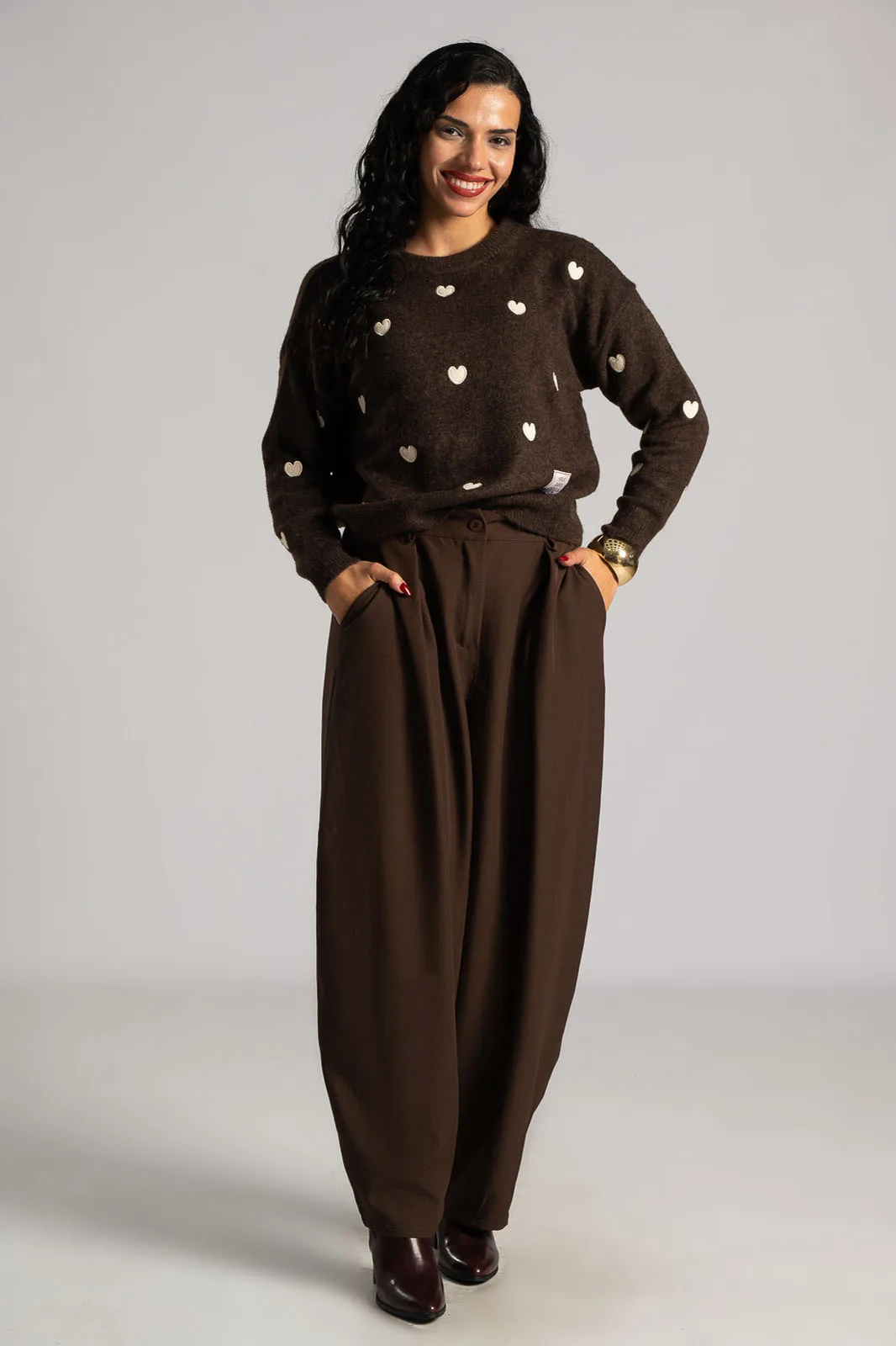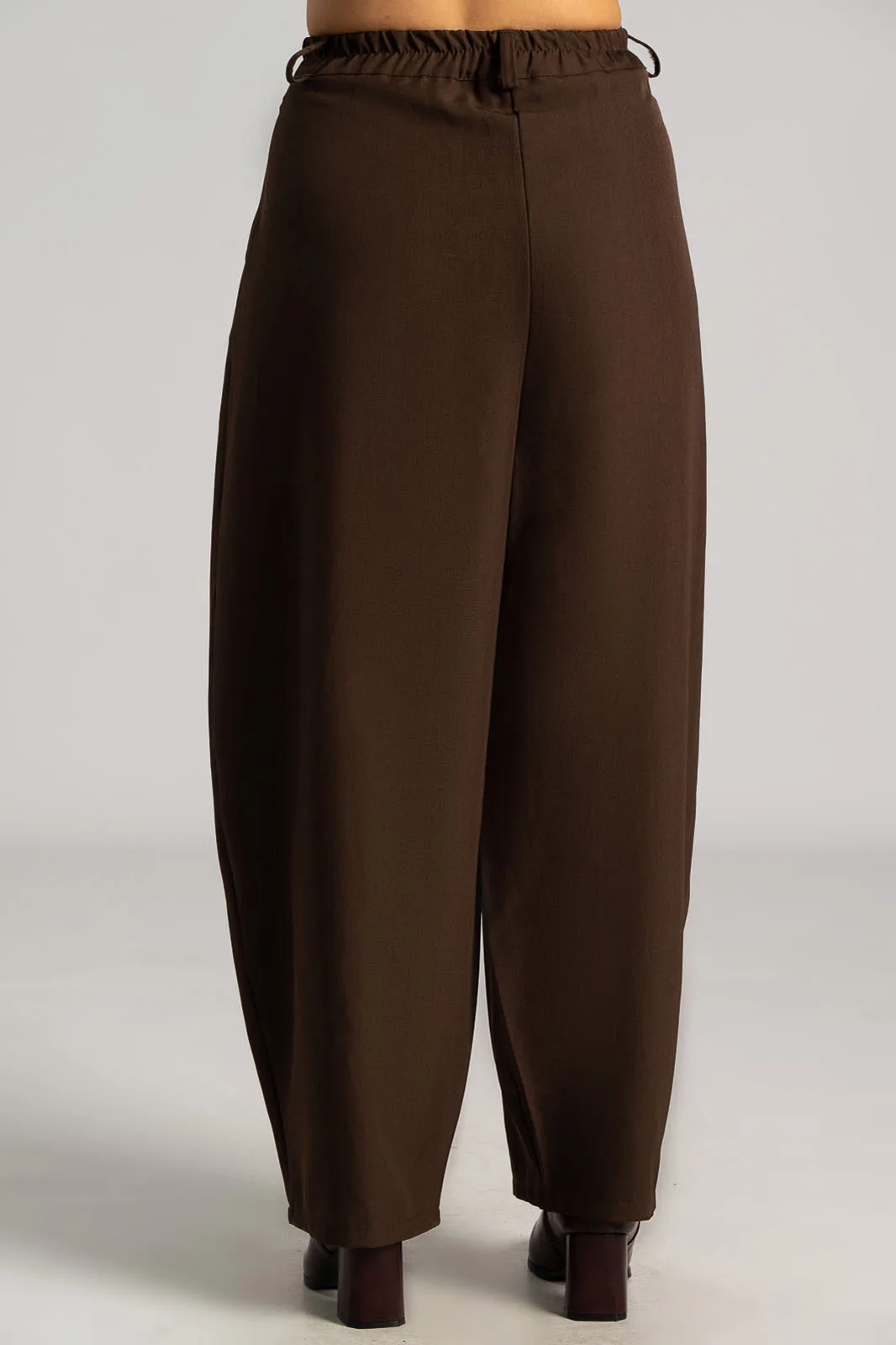 Trousers with elastic at the back and button and zip fastening. Pleats at the front. Two side pockets. Slightly baggy at the top and tapered at the bottom. The measurements in the table are representative for each code. 95% polyester, 5% elastane.