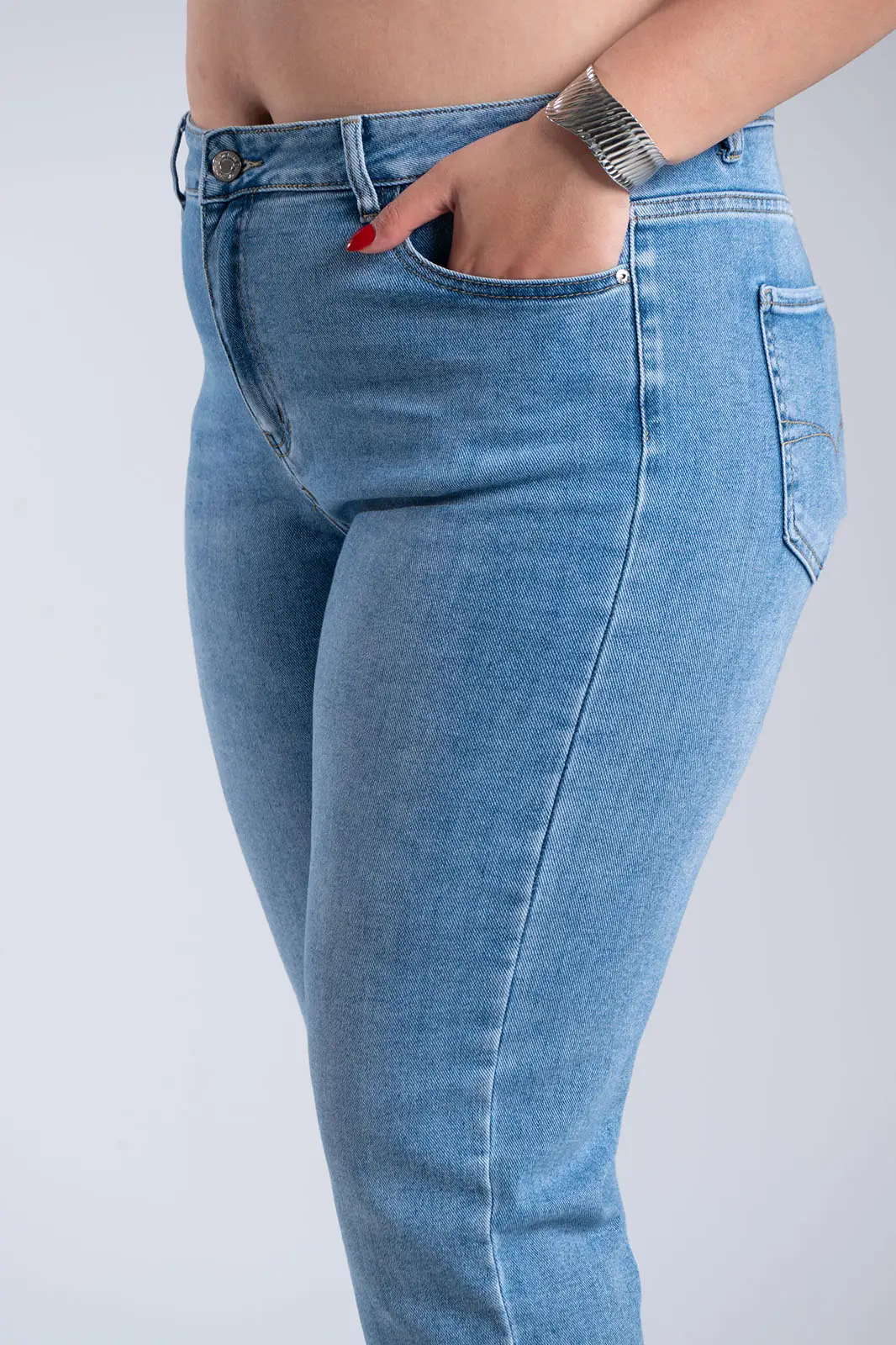 Classic straight-leg Jeans that are a staple for any wardrobe. The fit hugs the silhouette beautifully at the hips and thighs, while the straight leg at the bottom adds elegance and timeless style that can be worn on many different occasions. They feature a classic button and zipper closure, belt loops, and practical front and back pockets. Their minimalist aesthetic makes them particularly easy to combine, as they can be worn with both casual and more elegant outfits. Its composition of 73% cotton, 23% polyester, 3% viscose, and 1% elastane offers durability, comfort, and elasticity, allowing the pants to fit beautifully and provide comfort for everyday wear.