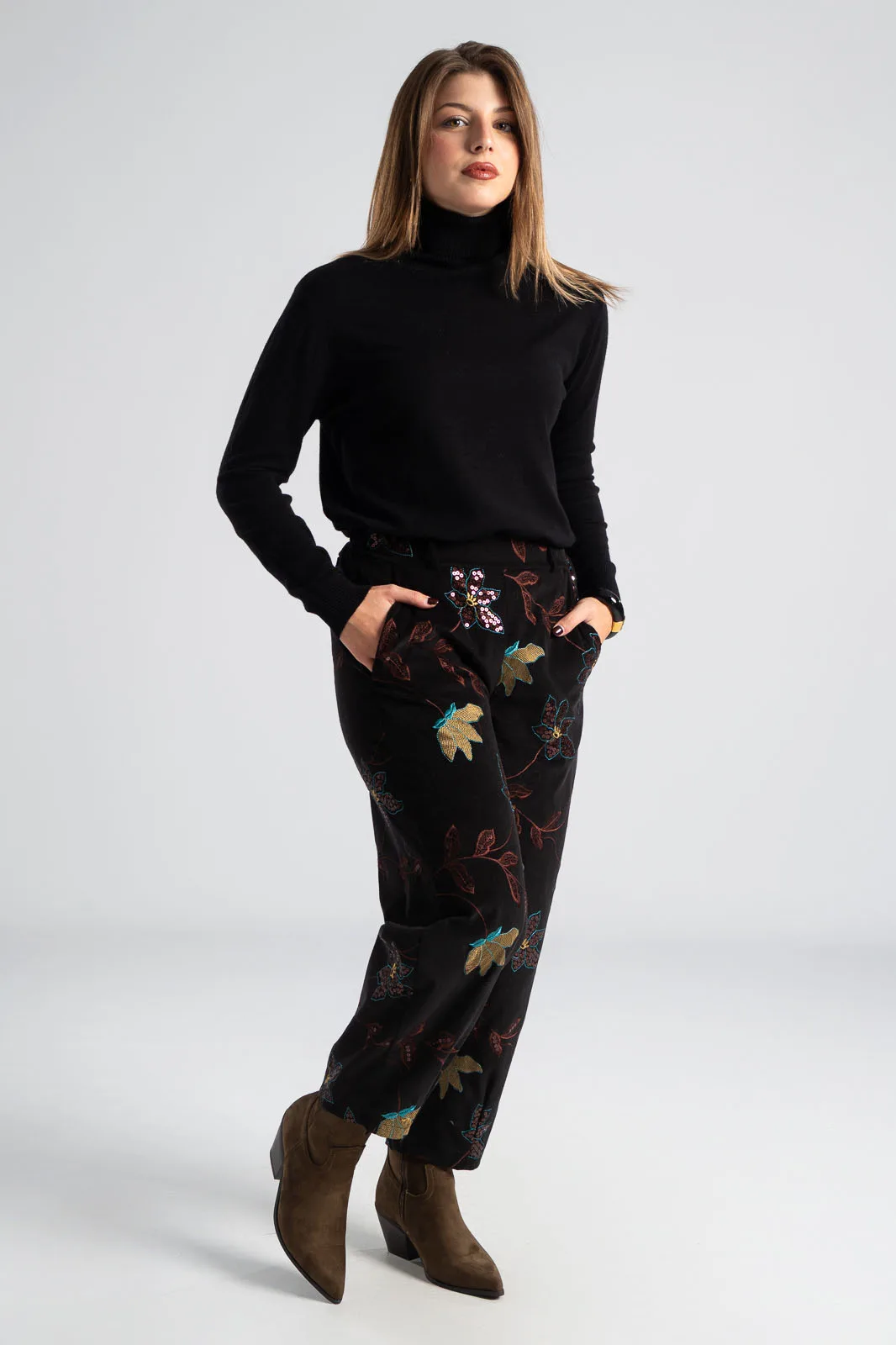 ΠΑΝΤΕΛΟΝΙ ΒΑΜΒΑΚΕΡΟ ΚΟΤΛΕ FLORAL ΜΑΥΡΟ