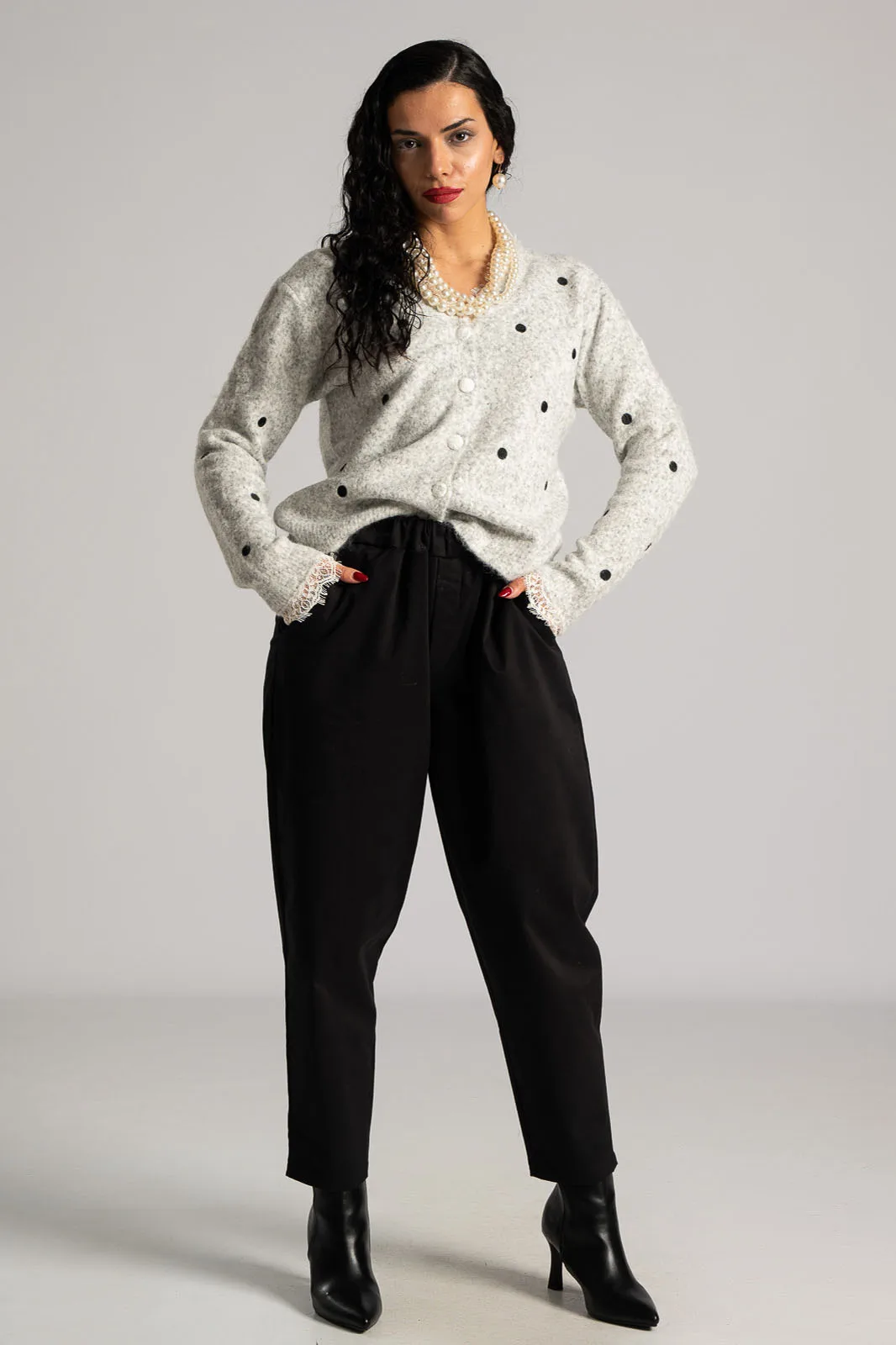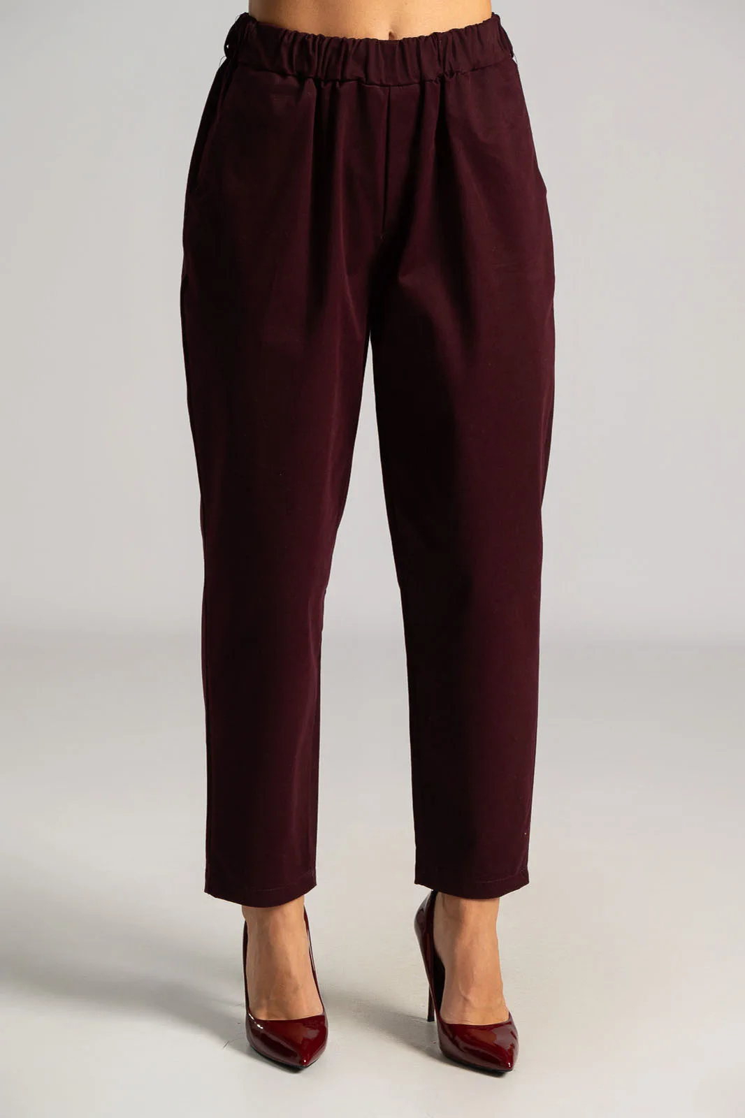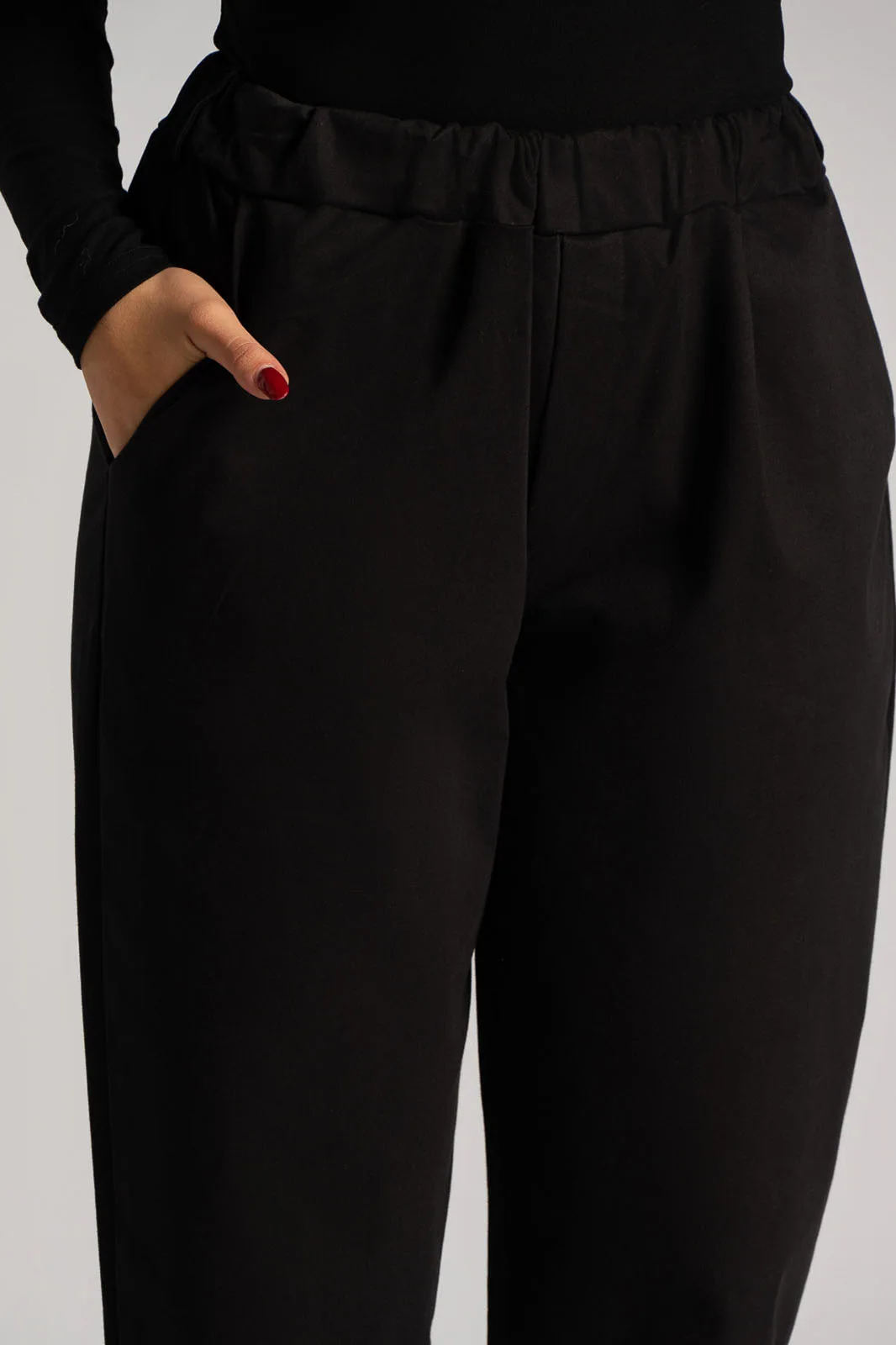 Pants with elastic waistband for a better fit. Soft texture. Side pockets. Slightly baggy with a tapered bottom. The measurements in the table are representative of each product. 80% cotton, 17% viscose, 3% elastane.