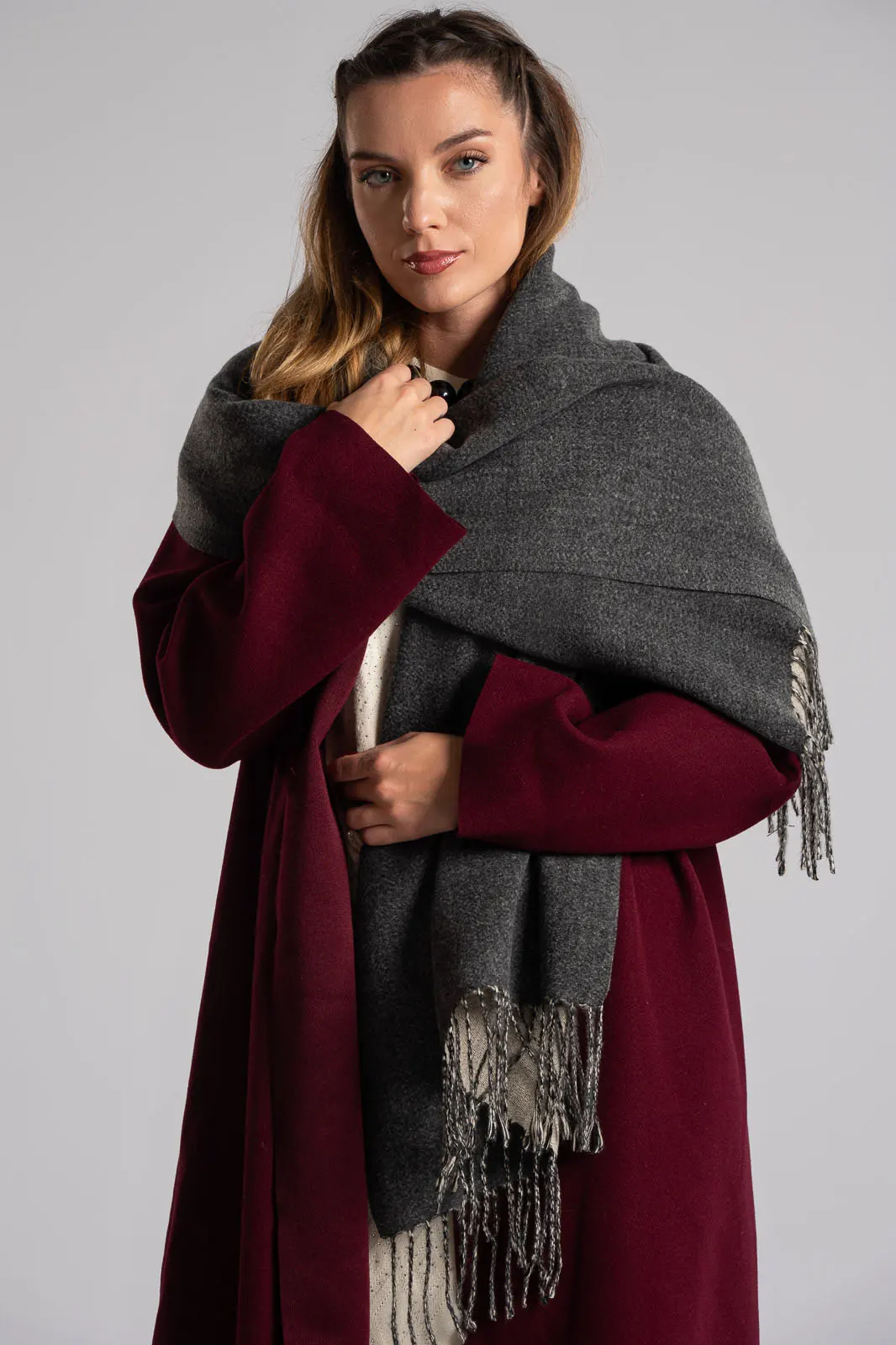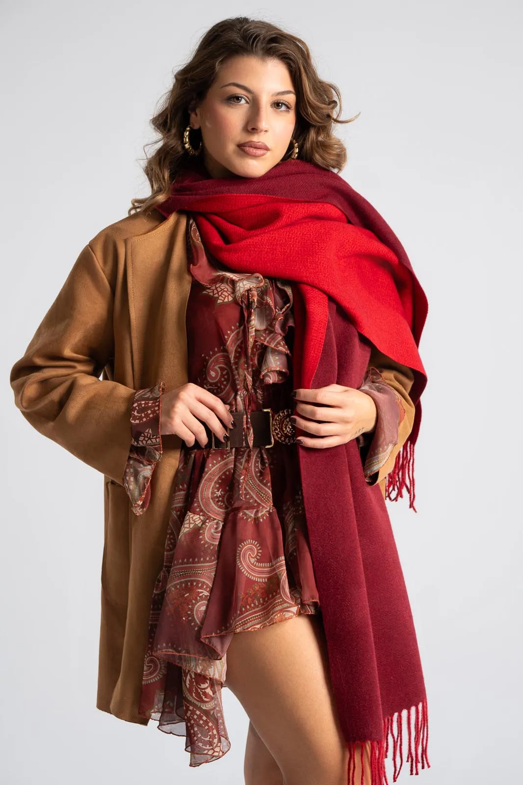 PASHMINA FRINGE DOUBLE-SIDED DARK RED