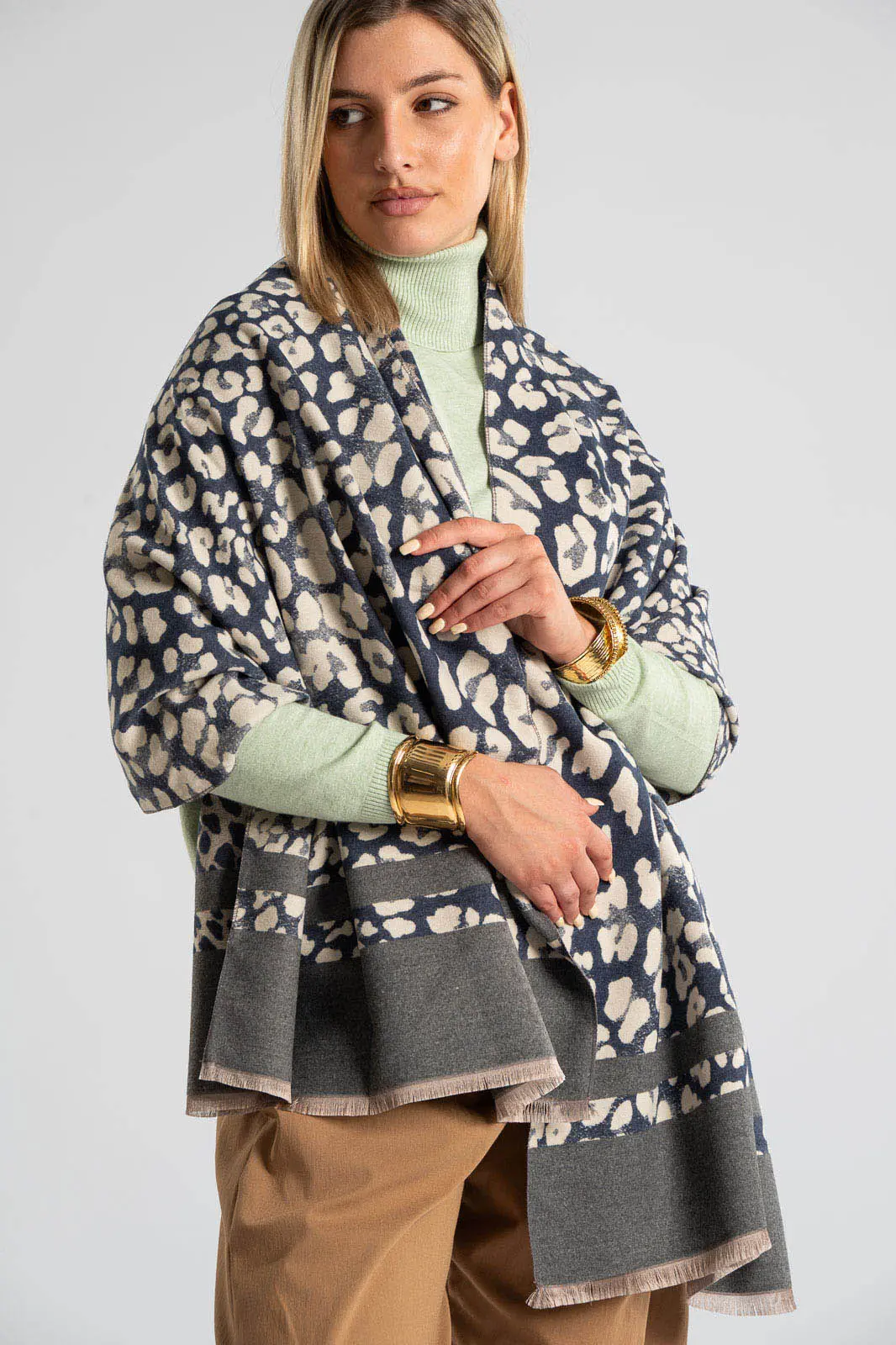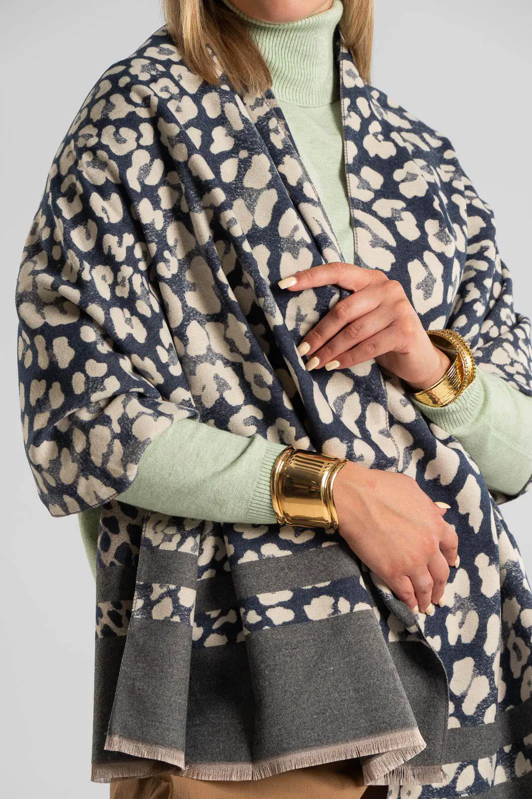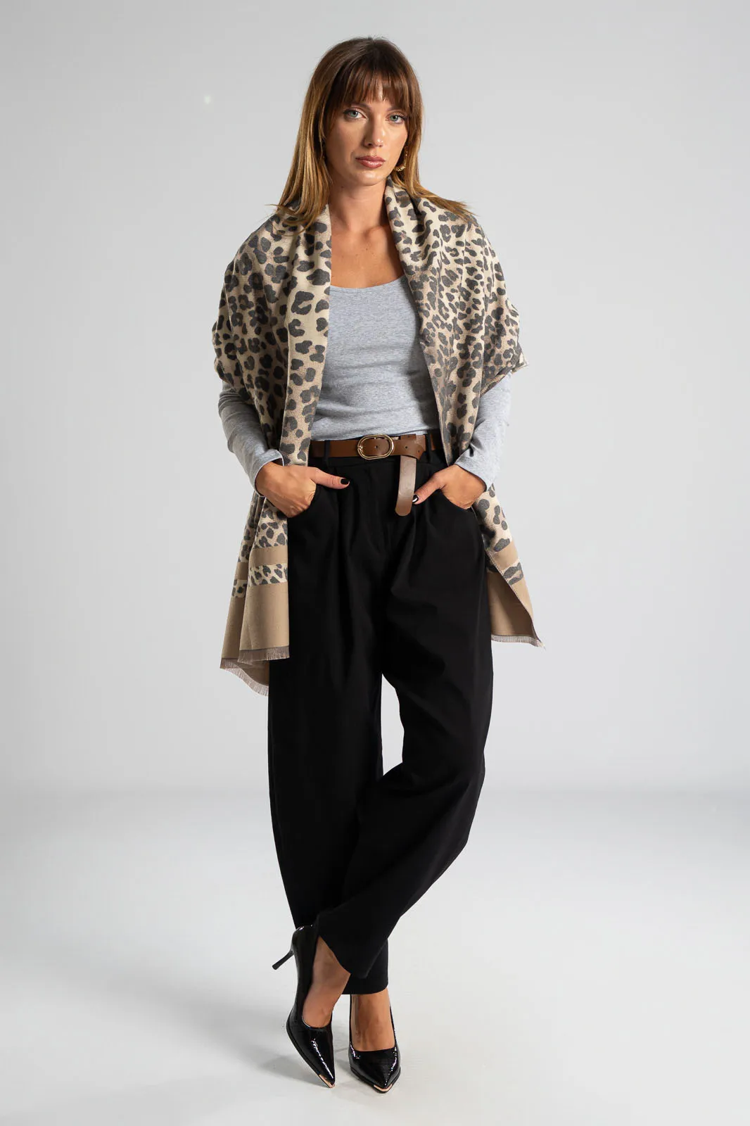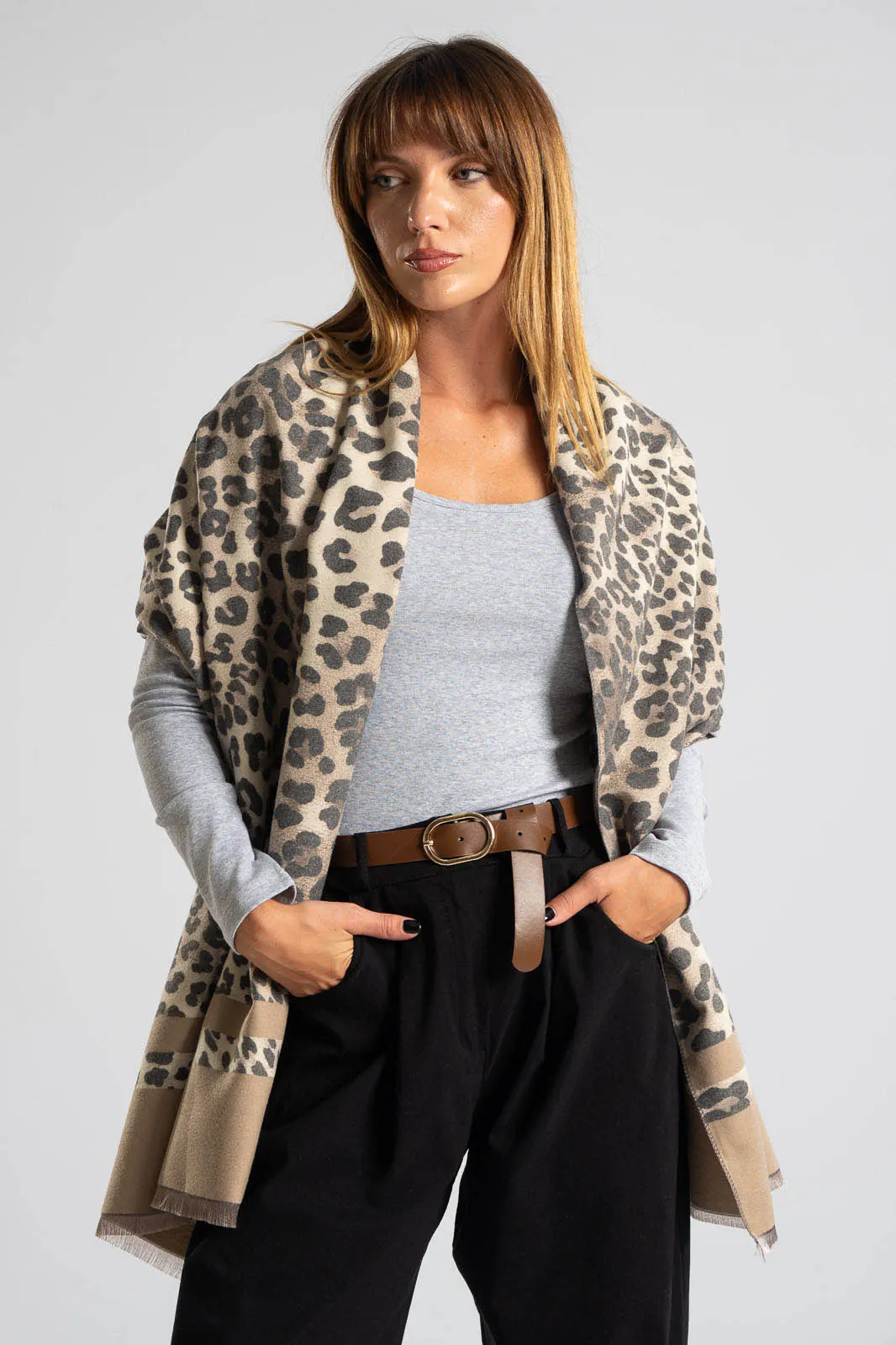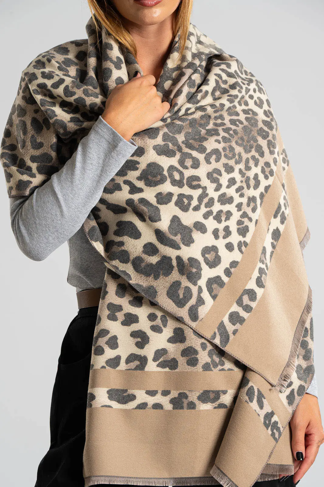 PASHMINA LEOPARD MINI FRINGE GRAY