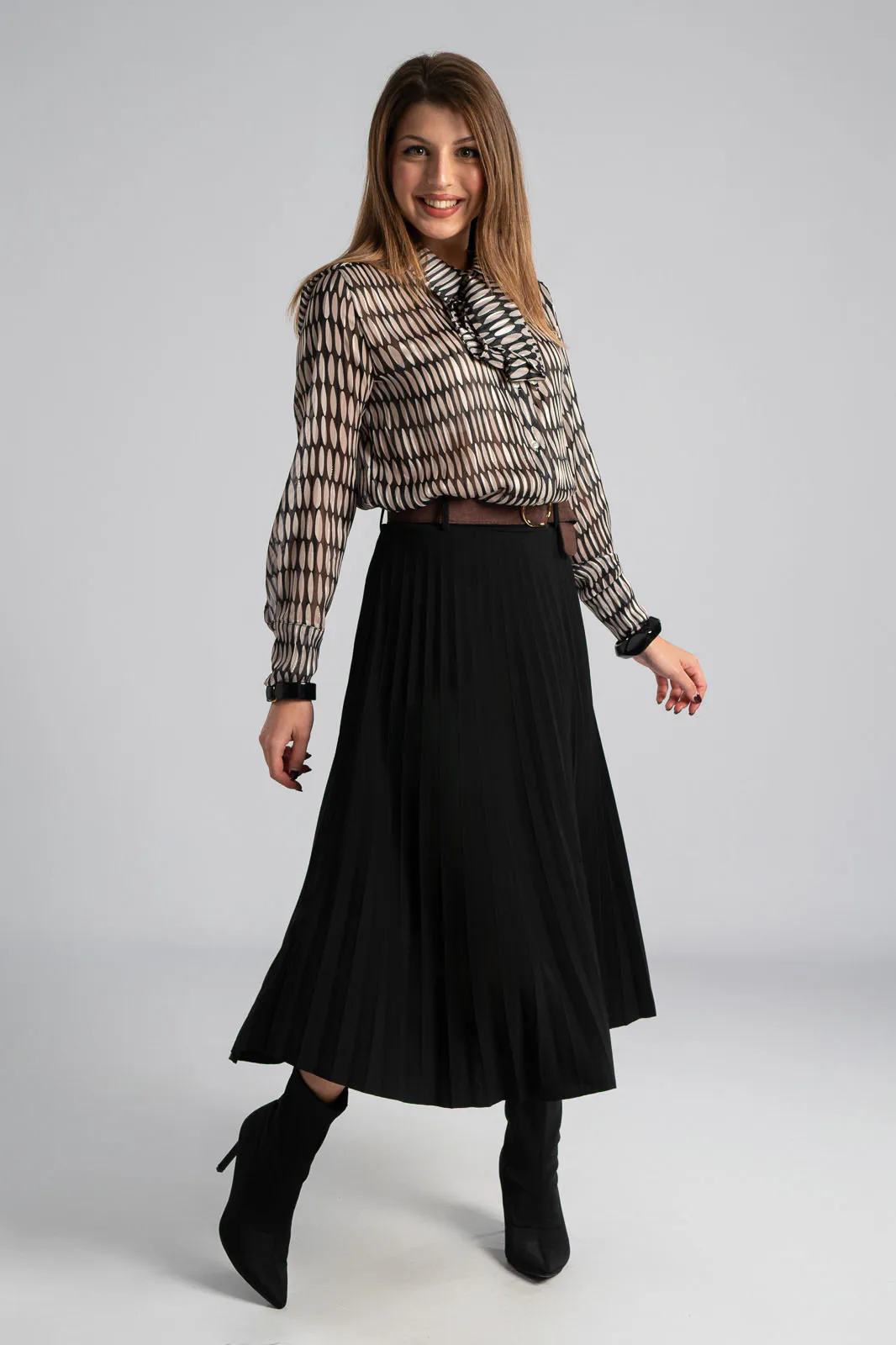 Shirt with collar. It has long sleeves that fasten with two buttons. It has an all-over gold thread embroidered design. It comes with its own scarf in the same color and texture. The measurements in the table are representative for each code. 95% polyester, 5% elastane.