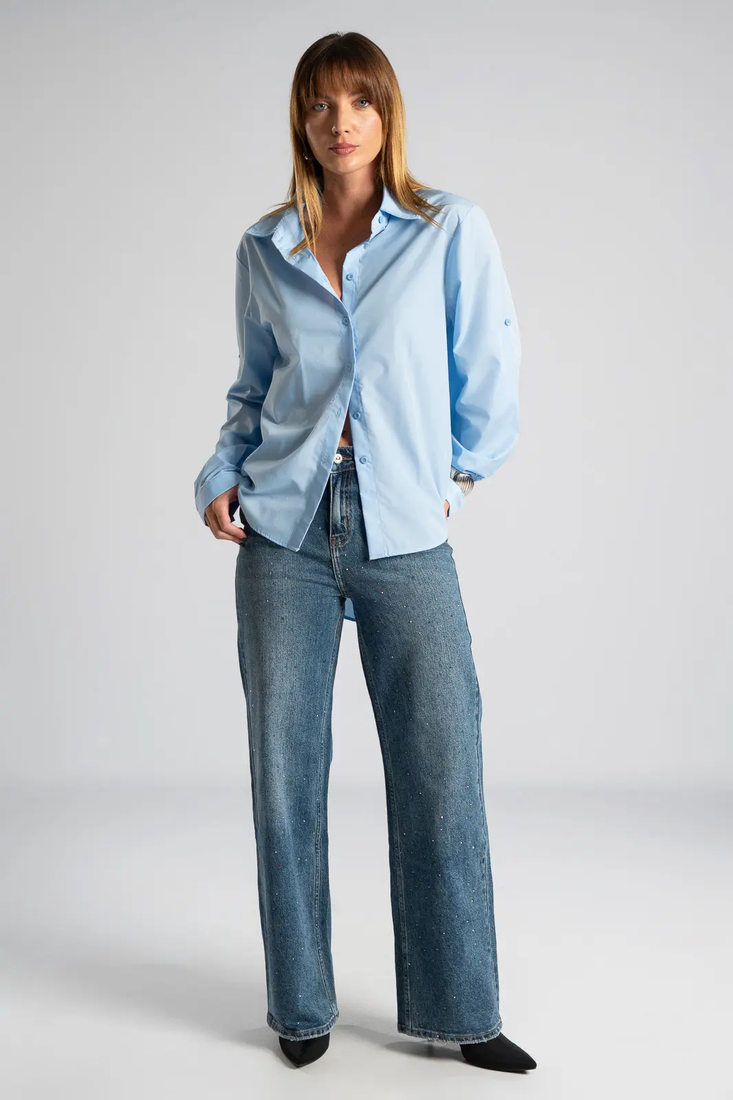 Πουκάμισο βαμβακερό με γιακά και μακριά μανίκια. Είναι σε ίσια γραμμή και το πίσω μέρος είναι μακρύτερο και έχει στρογγυλό κόψιμο. Είναι μια κλασσική επιλογή που δεν πρέπει να λείπει από την ντουλάπα σου. Οι μετρήσεις του πίνακα είναι αντιπροσωπευτικές για κάθε προϊόν. 80%cotton, 20% viscose.