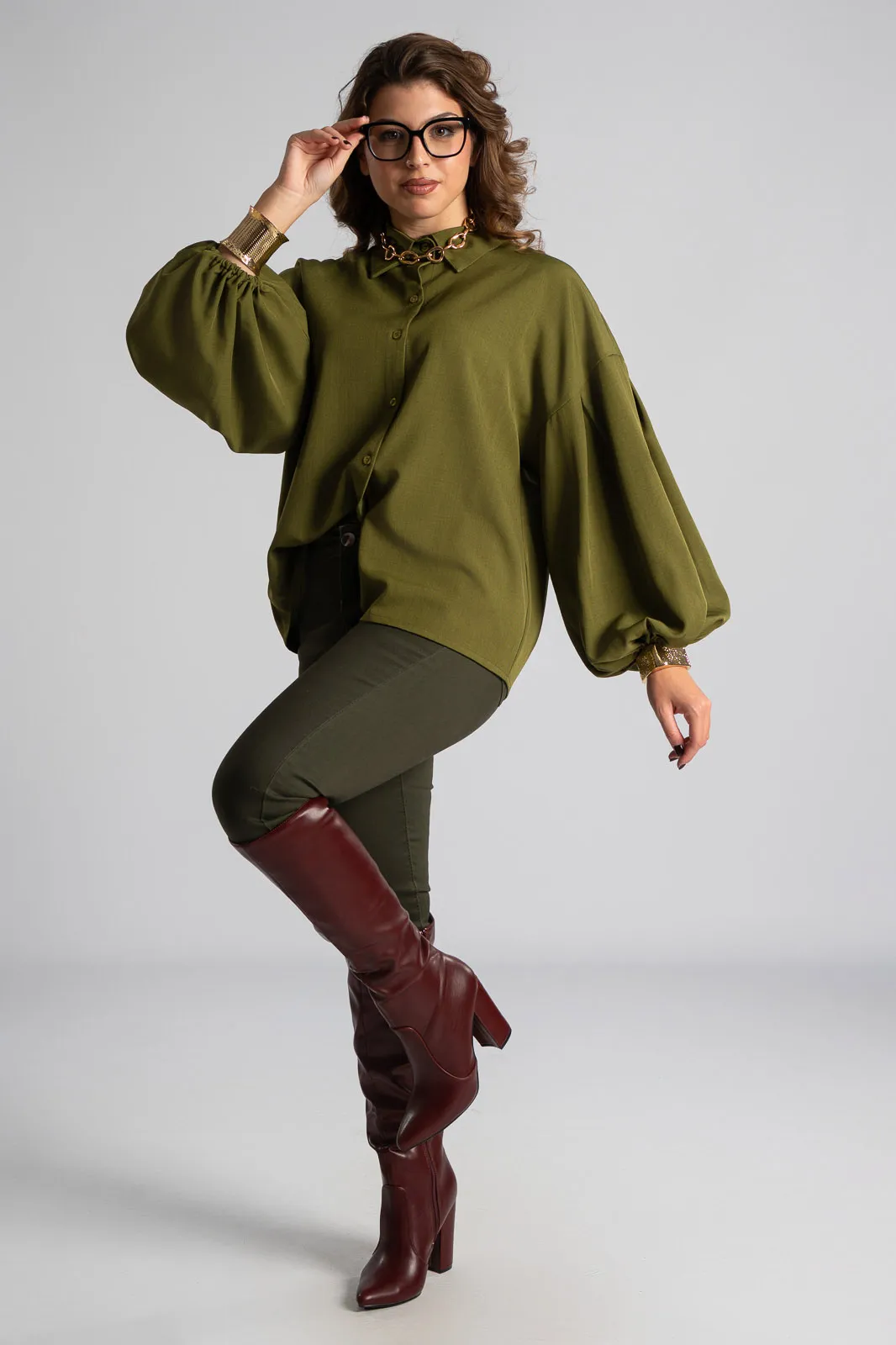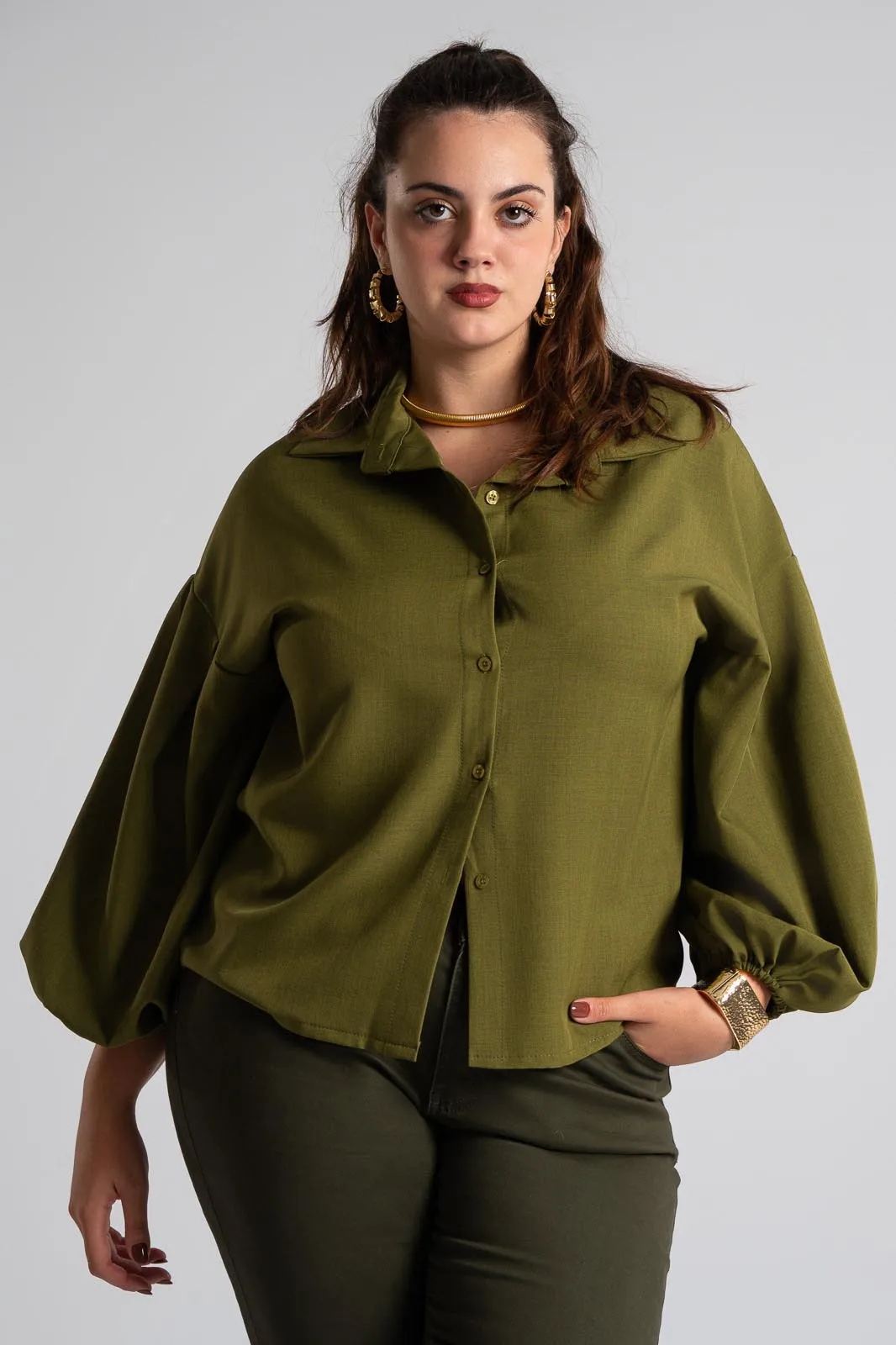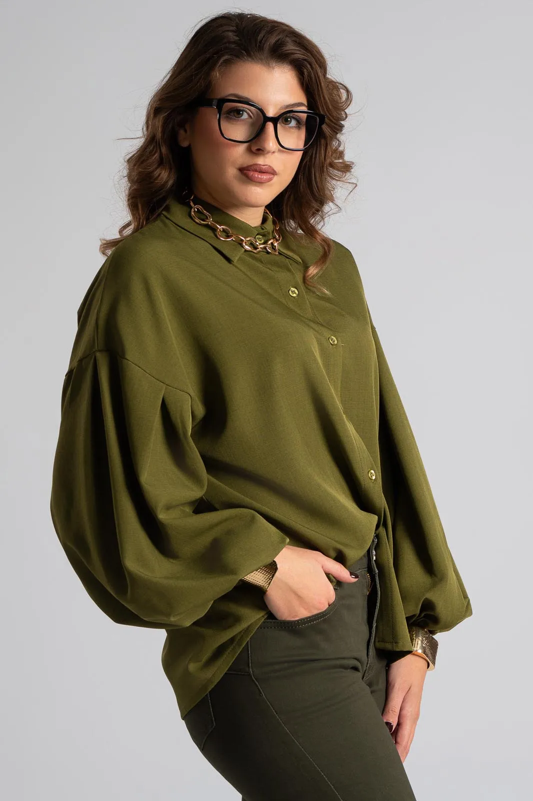 Shirt with collar. The sleeves are long and balloon-style, with thin elastic at the cuffs. The back is slightly longer. The measurements in the table are representative of each product. 95% polyester, 5% elastane.
