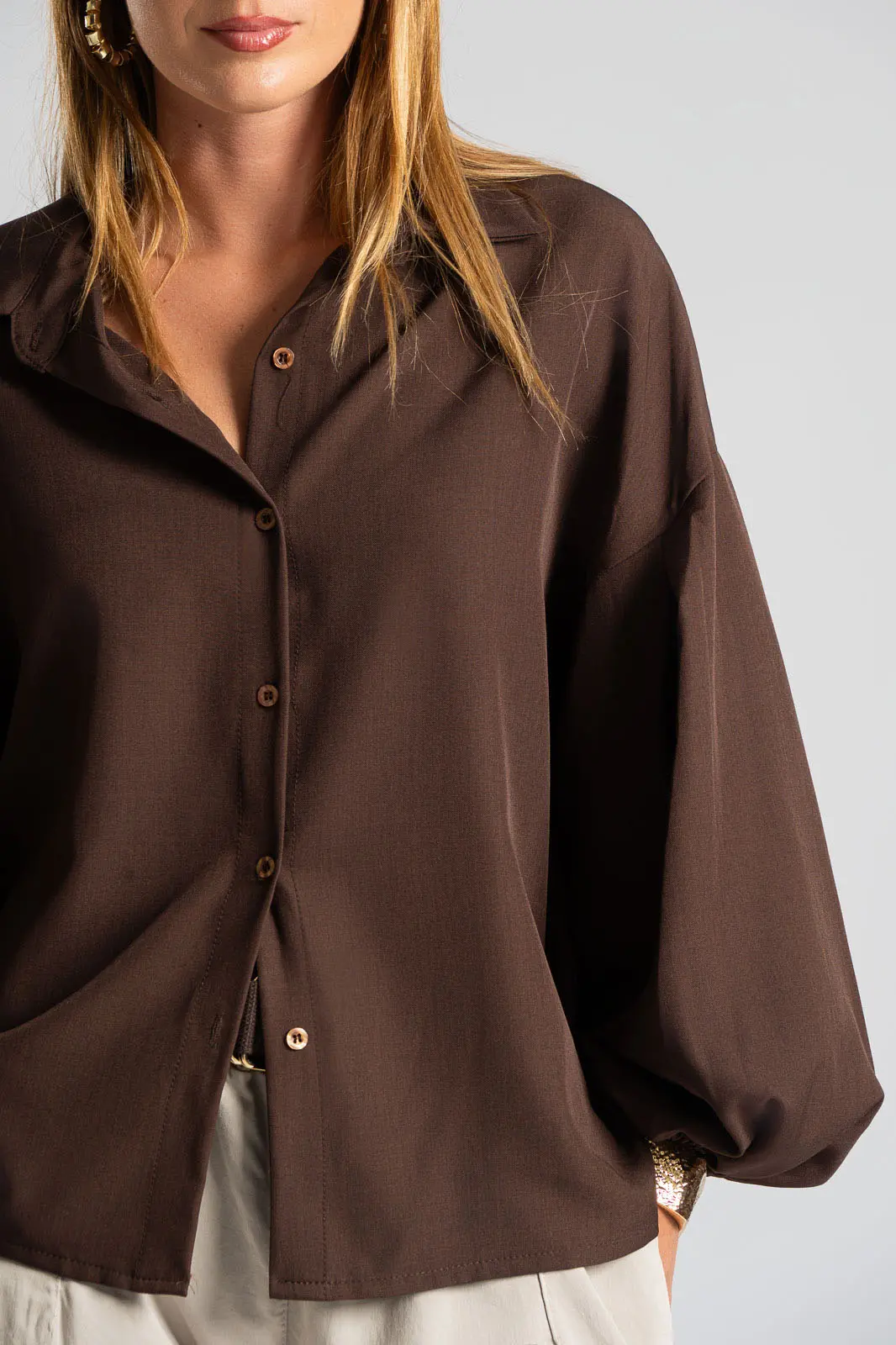 Shirt with collar. The sleeves are long and balloon-style, with thin elastic at the cuffs. The back is slightly longer. The measurements in the table are representative of each product. 95% polyester, 5% elastane.
