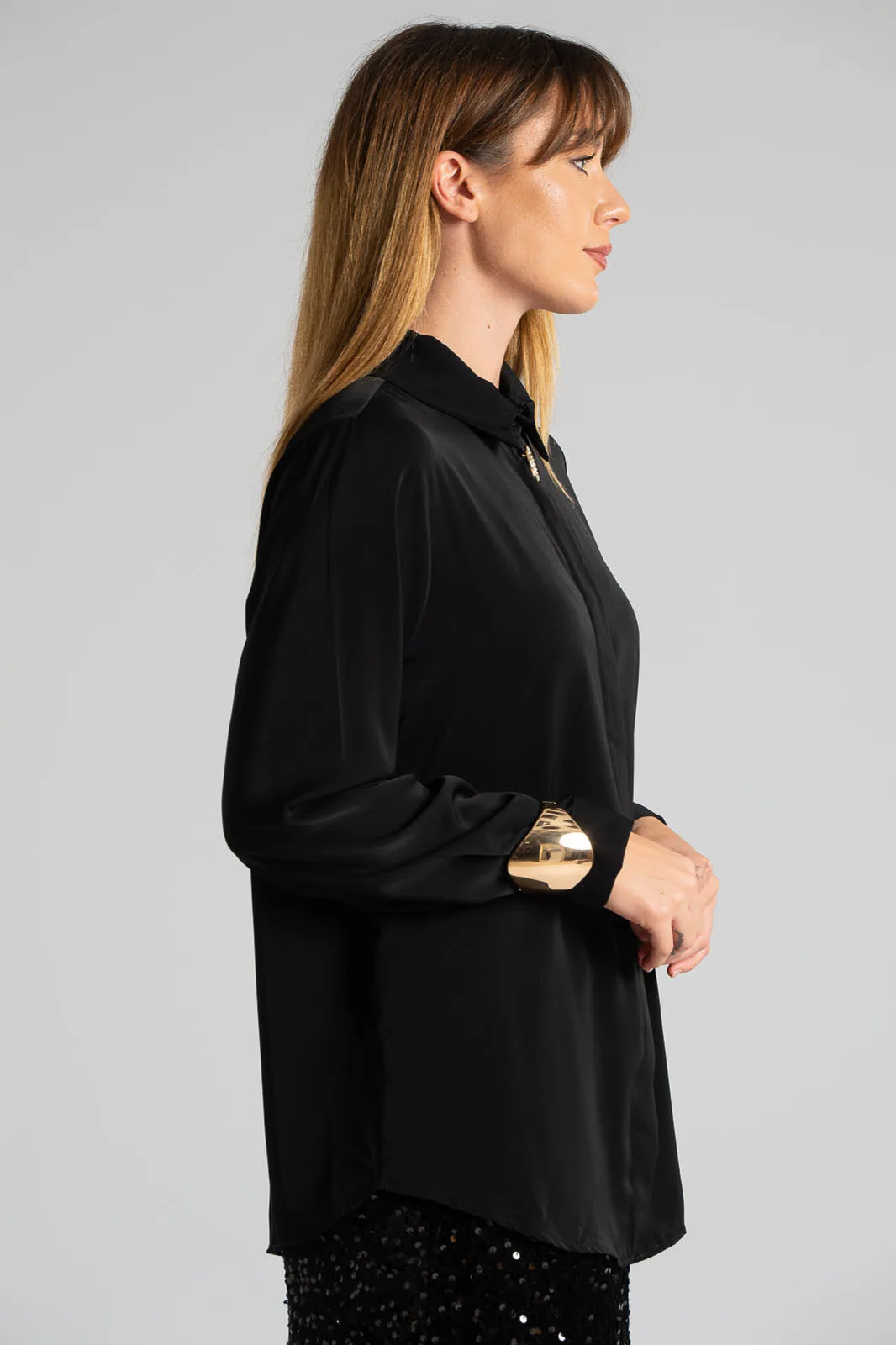 Πουκάμισο με γιακά που κλείνει με κουμπιά καλυμμένα με πατιλέτα. Έχει μακριά μανίκια. Στο μπροστινό μέρος έχει στρογγυλή αποσπώμενη καρφίτσα. Οι μετρήσεις του πίνακα είναι αντιπροσωπευτικές για κάθε προϊόν. 100% polyester