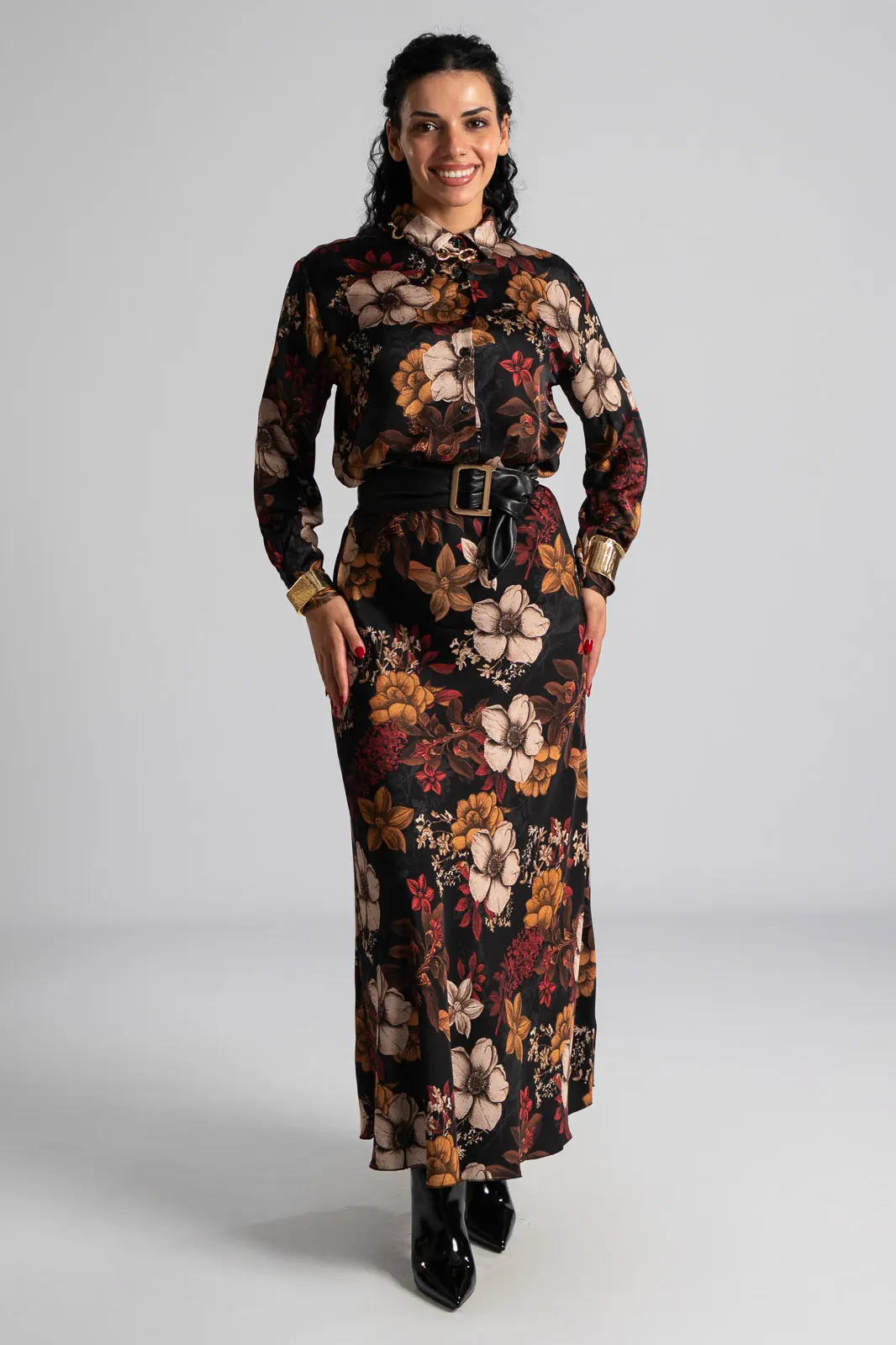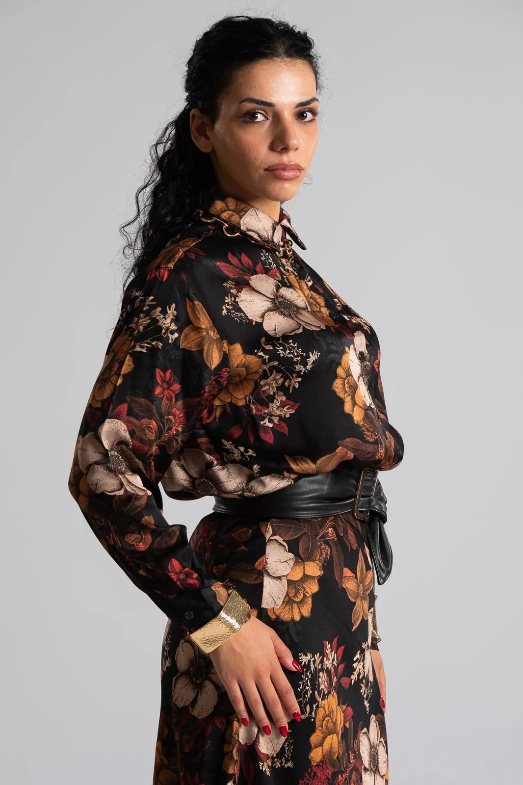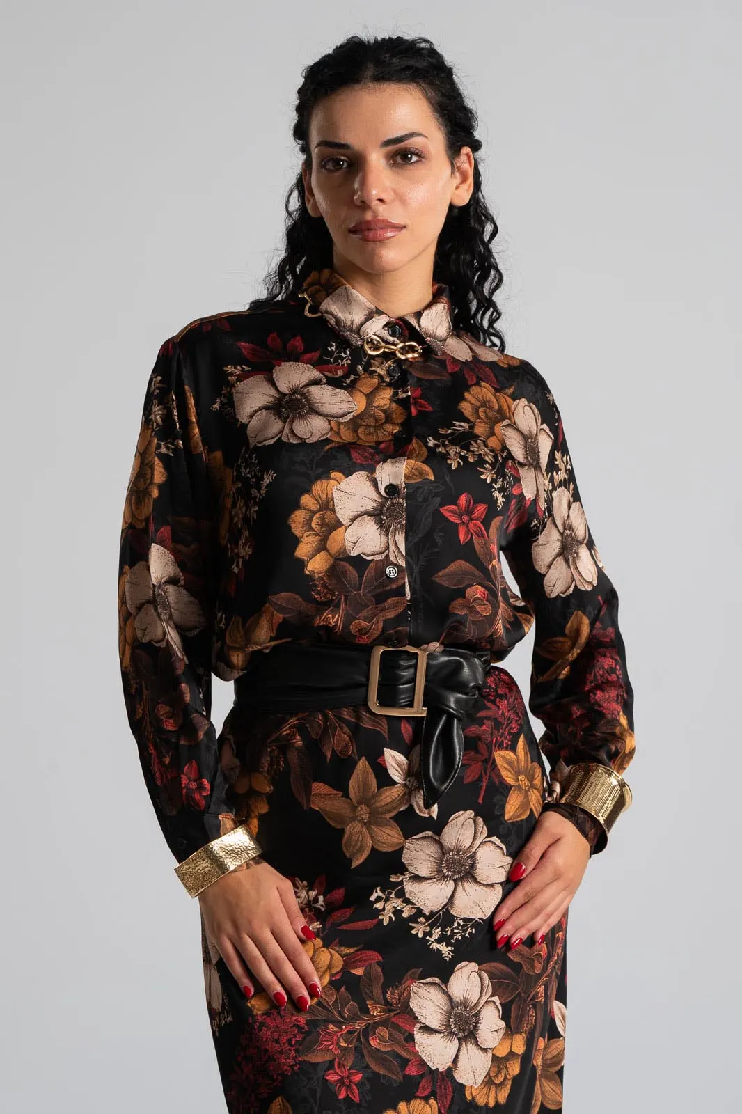 Πουκάμισο που διαθέτει μακριά μανίκια και κλείνουν με κουμπί στο τελείωμα. Έχει γιακά. Σε όλη την επιφάνεια έχει την υφή του ματ σατέν. Στο πίσω μέρος έχει πιέτα και είναι ελαφρώς μακρύτερο. Οι μετρήσεις του πίνακα είναι αντιπροσωπευτικές για κάθε κωδικό. 100% viscose.