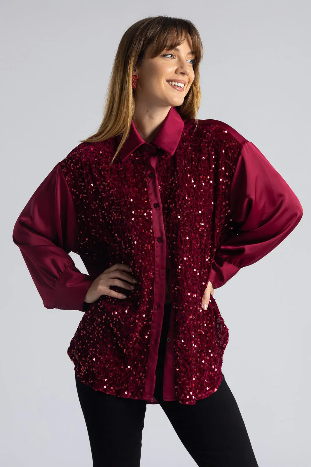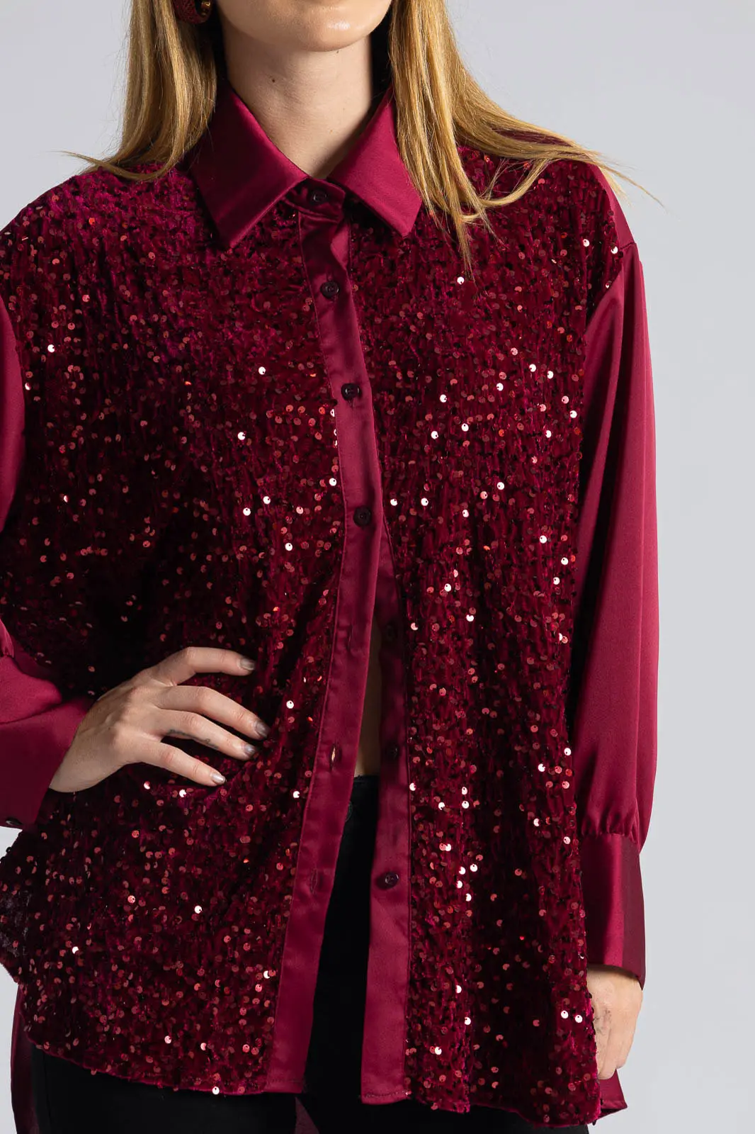 Πουκάμισο Σατέν Velvet Παγιέτα