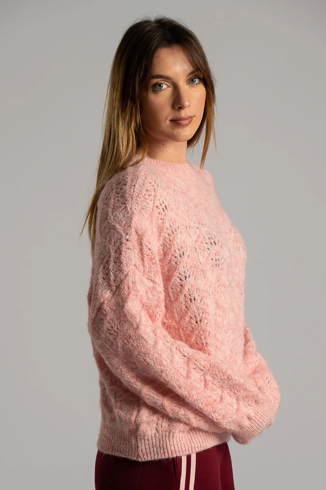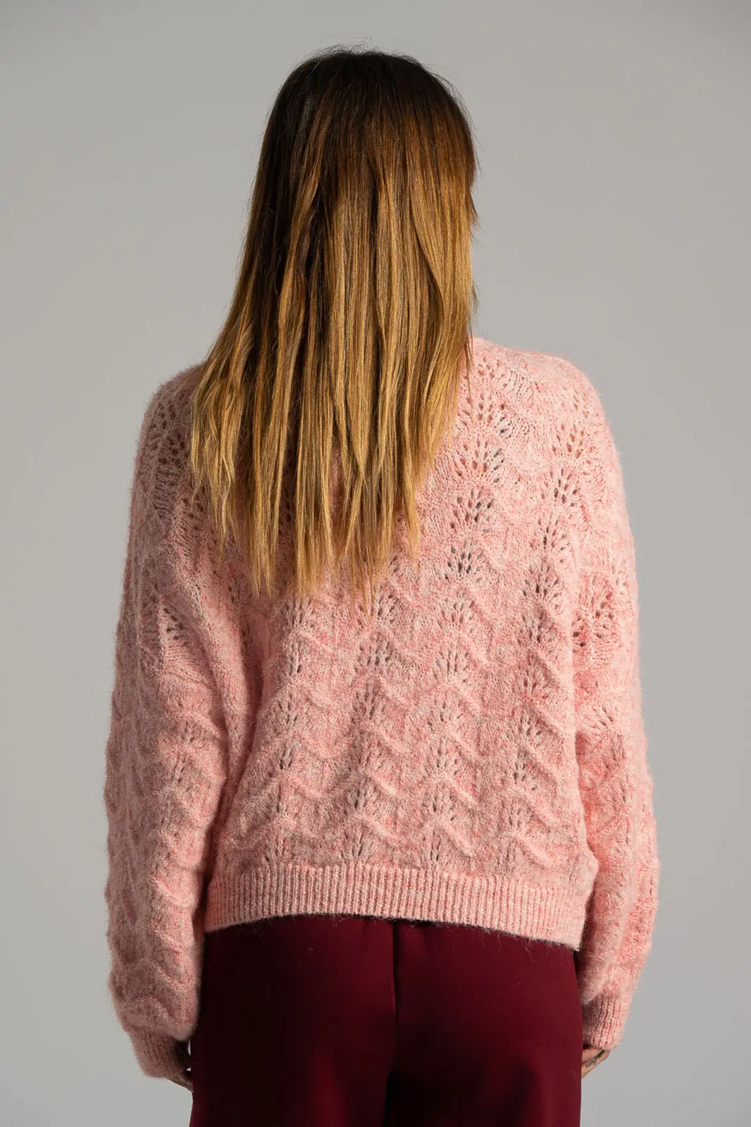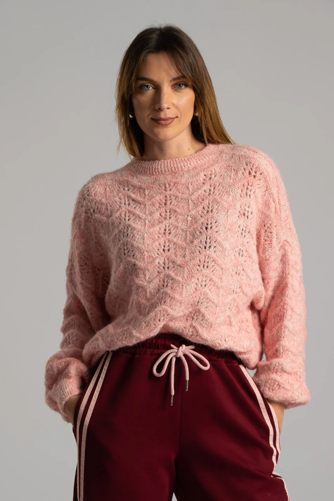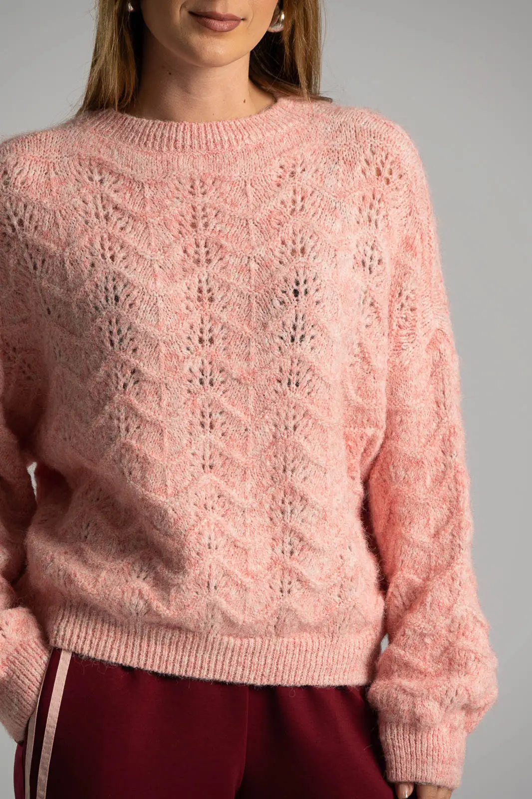 Πουλόβερ με στρογγυλή λαιμόκοψη και μακριά μανίκια. Διαθέτει αραιή πλέξη και εξωτερικές ραφές. Τα μανίκια είναι σε ύφος νυχτερίδας. Προτείνεται πλύσιμο στο χέρι βάσει οδηγιών. Οι μετρήσεις του πίνακα είναι αντιπροσωπευτικές για κάθε κωδικό. 59% polyester recycled, 21% nylon, 11% polyester, 8% wool, 1% spandex.