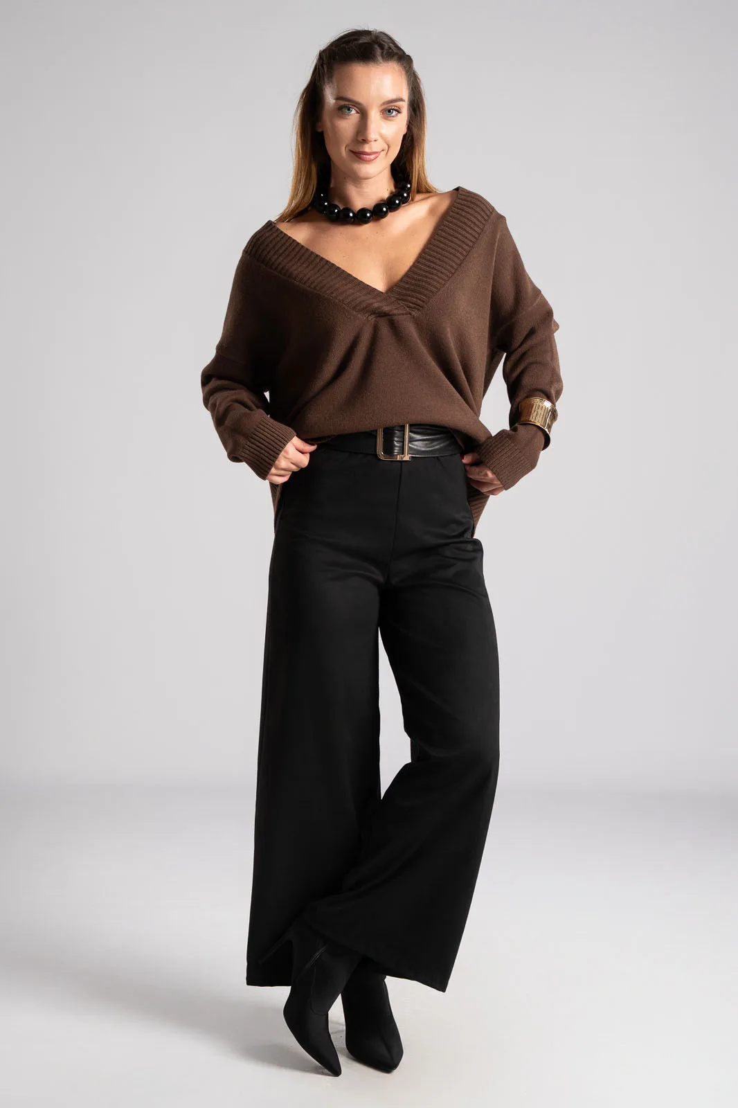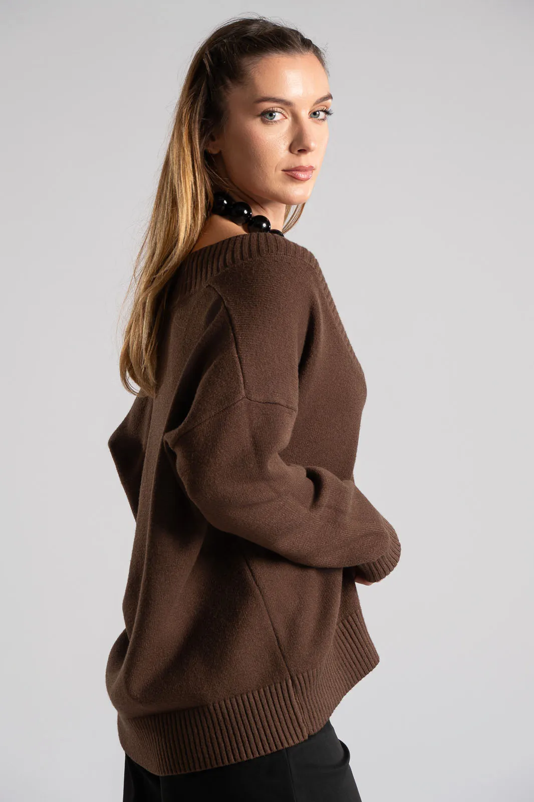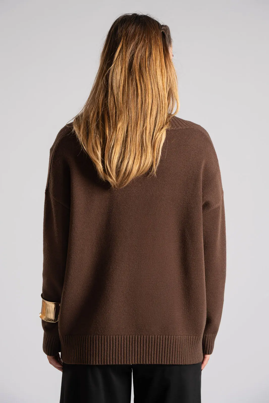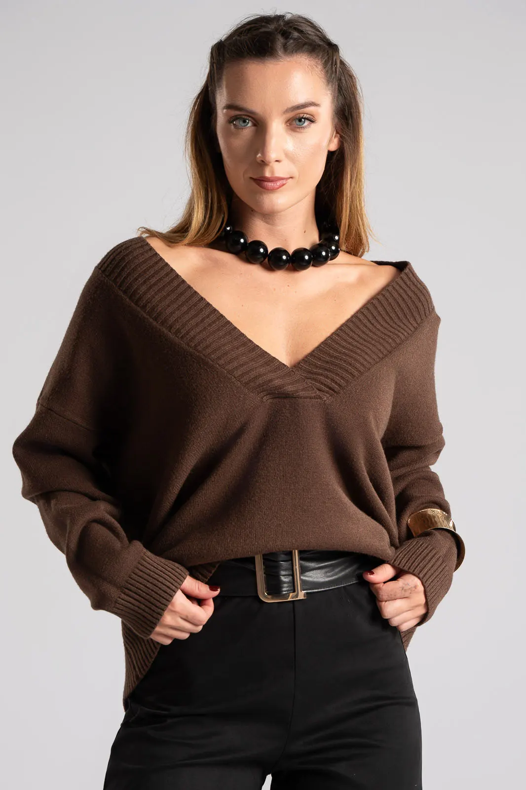 Πουλόβερ με συμπαγή νημάτινη πλέξη. Διαθέτει V άνοιγμα στη λαιμόκοψη και έχει μακριά μανίκια. Στη λαιμόκοψη, στο τελείωμα του και στο τελείωμα των μανικιών διαθέτει rib ύφανση. Οι μετρήσεις του πίνακα είναι αντιπροσωπευτικές για κάθε προιόν. 35% polyamide, 35% viscose, 20% acrylic, 10% elastan.