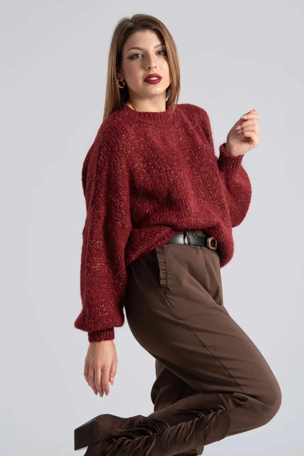 GOLD THREAD BALLOON SLEEVE SWEATER DARK RED