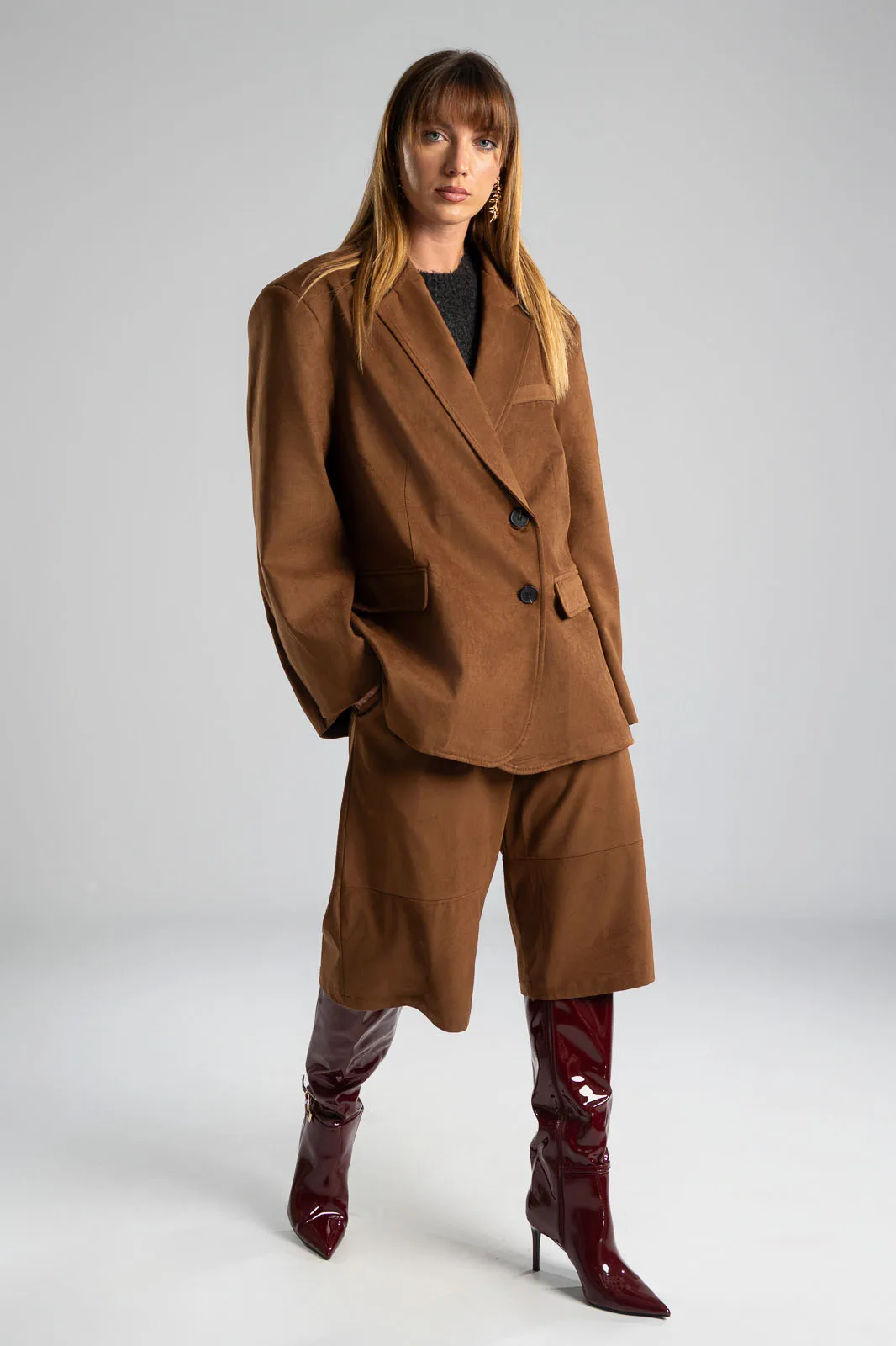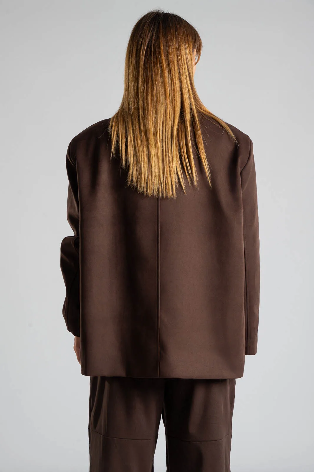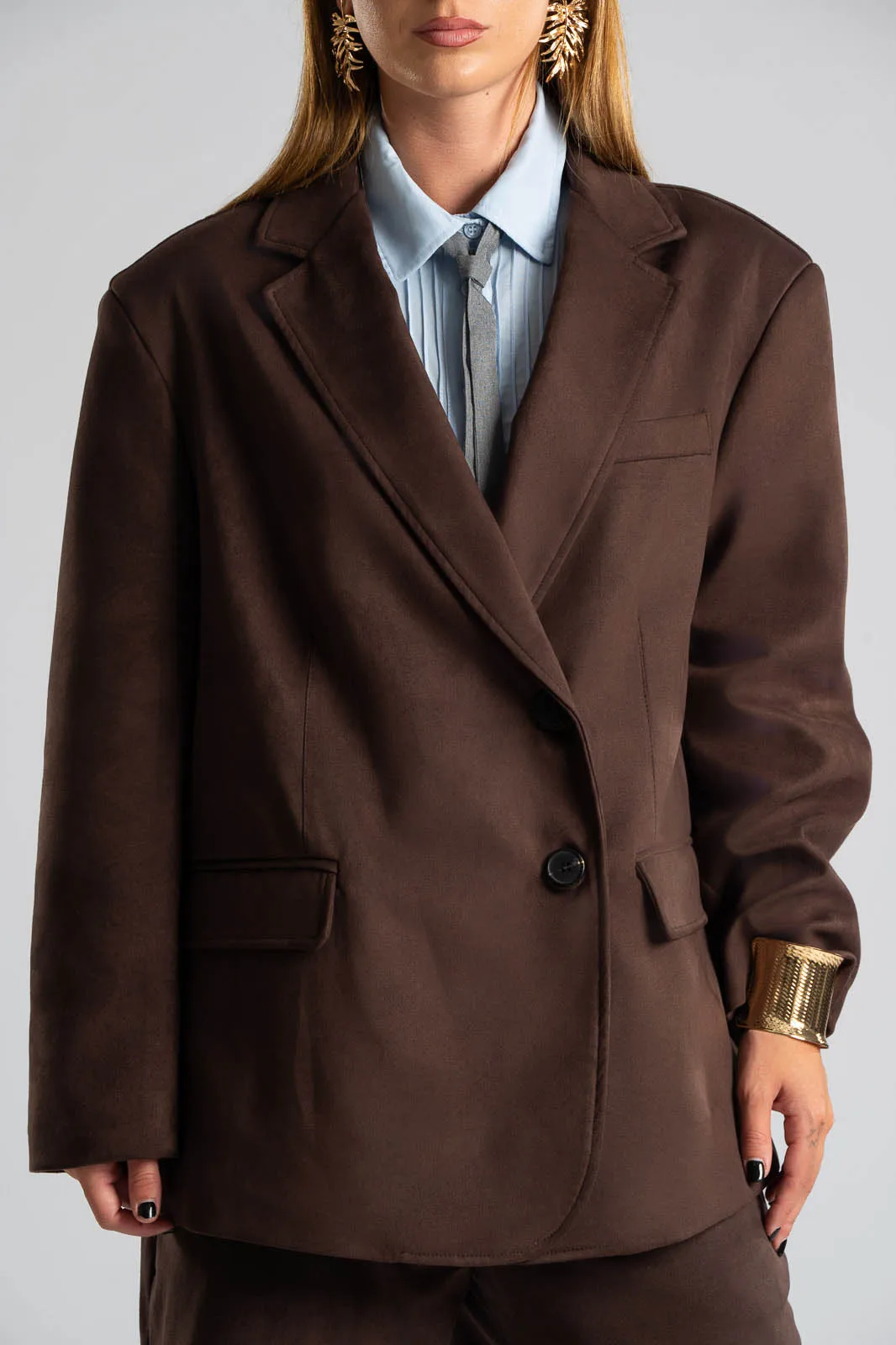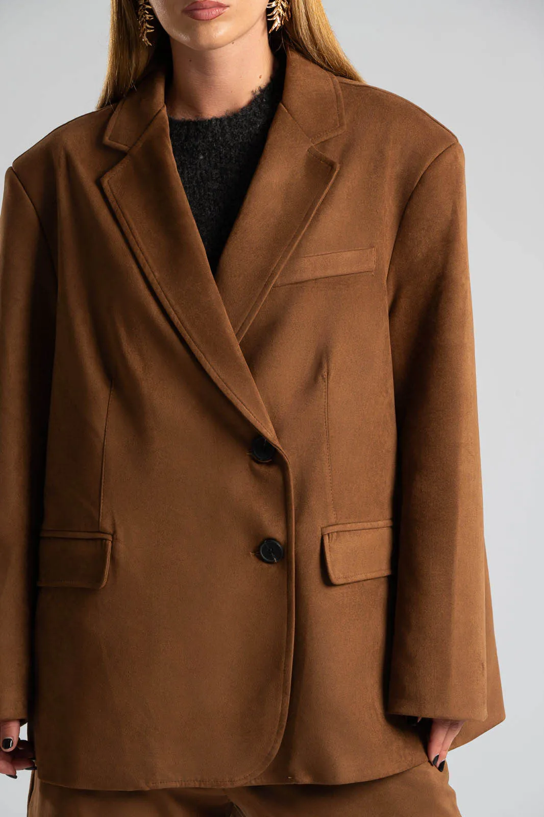 Σακάκι με γιακά και πέτο. Στο μπροστινό μέρος κλείνει με κουμπιά. Στα πλαινά έχει τσέπες με καπάκι. Στους ώμους έχει βάτες. Εσωτερικά είναι φοδραρισμένο. H μέτρηση έχει γίνει με κλειστά τα κουμπιά. Οι μετρήσεις του πίνακα είναι αντιπροσωπευτικές για κάθε κωδικό. 92% polyester, 8% elastan.