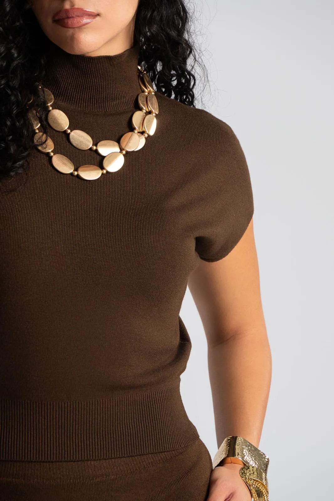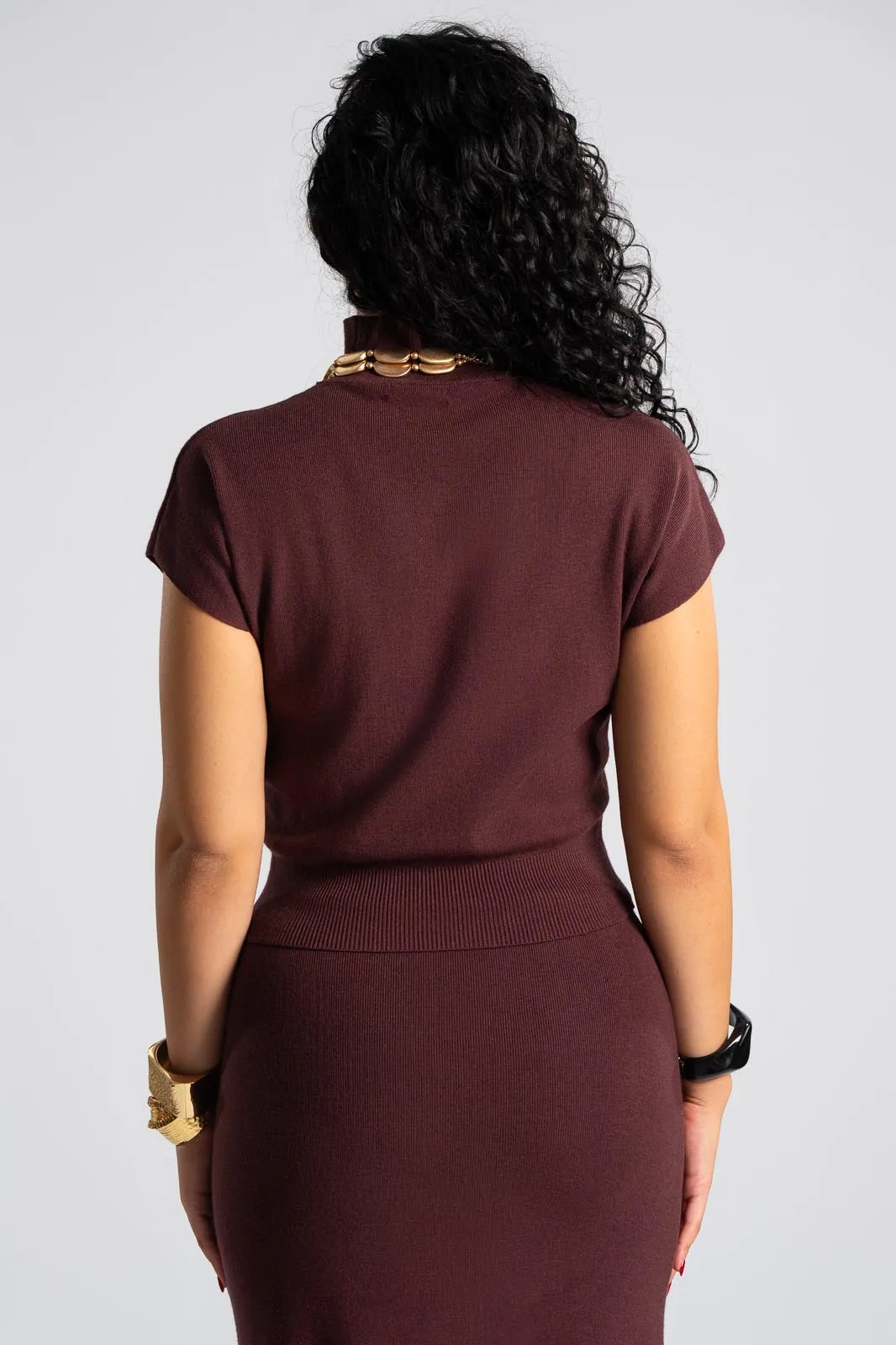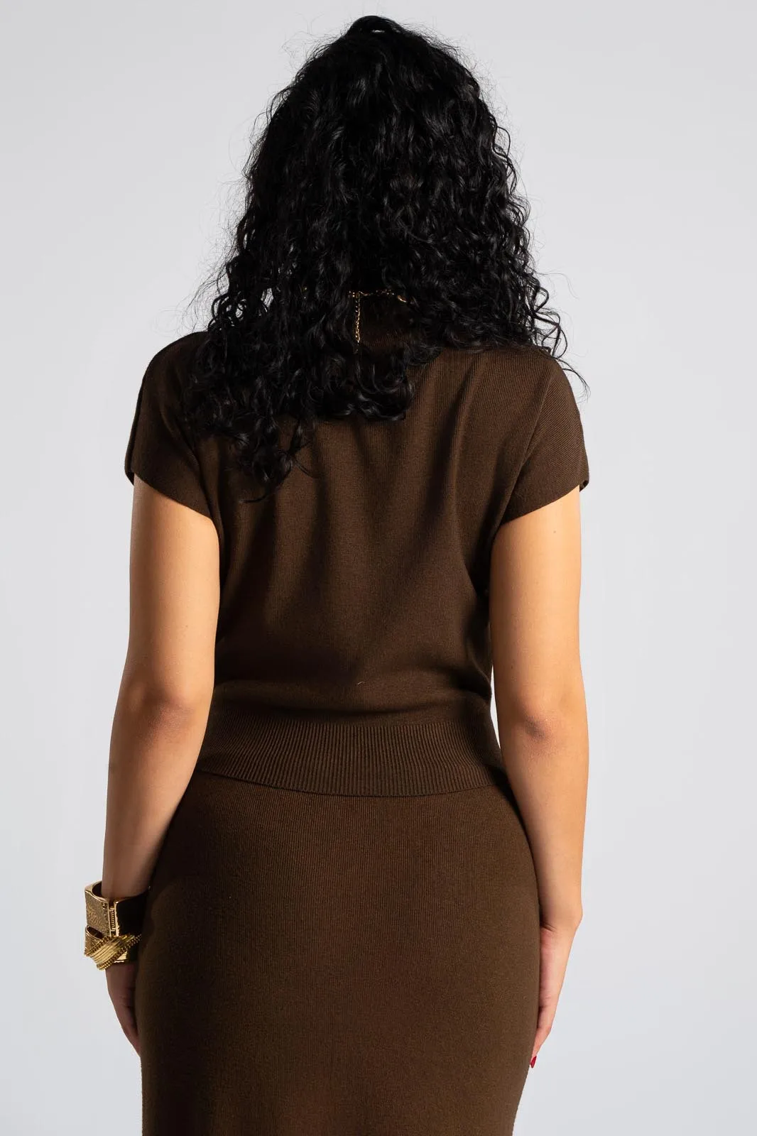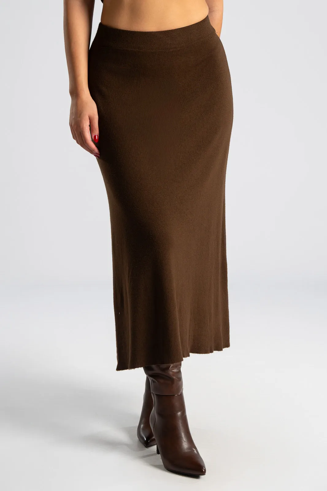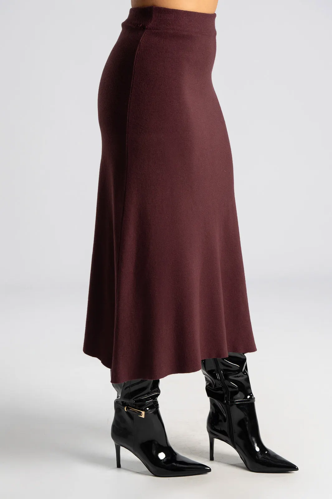 Σετ που αποτελείται από μπλούζα και φούστα σε νημάτινη συμπαγή πλέξη. Η μπλούζα διαθέτει Lupeto λαιμόκοψη και έχει κοντά μανίκια. Στο τελείωμα της διαθέτει λάστιχο φαρδύ για καλύτερη εφαρμογή. Η φούστα έχει λάστιχο στη μέση και είναι σε γραμμή Α.  Οι μετρήσεις του πίνακα είναι αντιπροσωπευτικές για κάθε προϊόν. 88% viscose, 12% nylon.