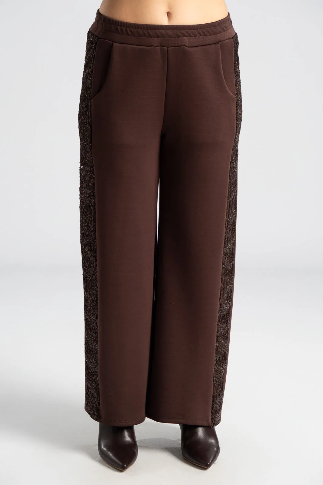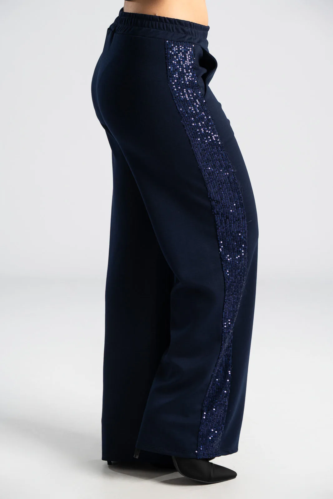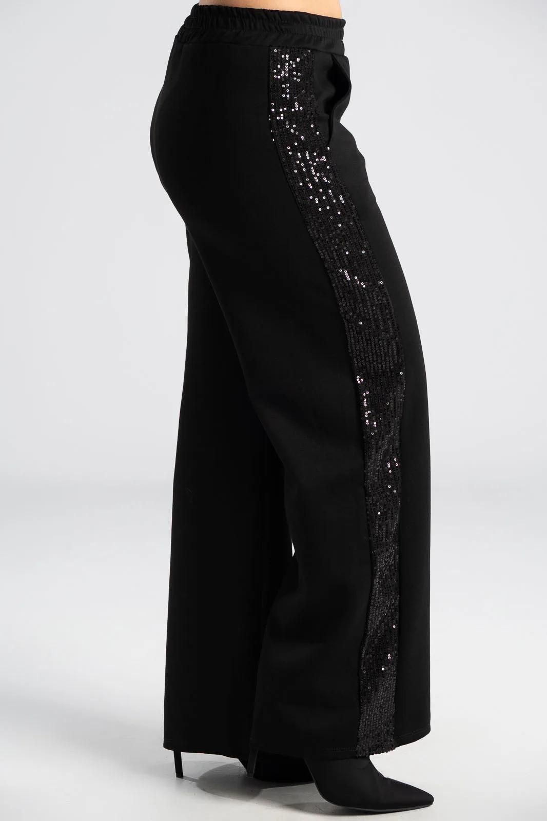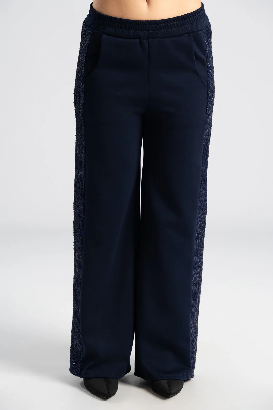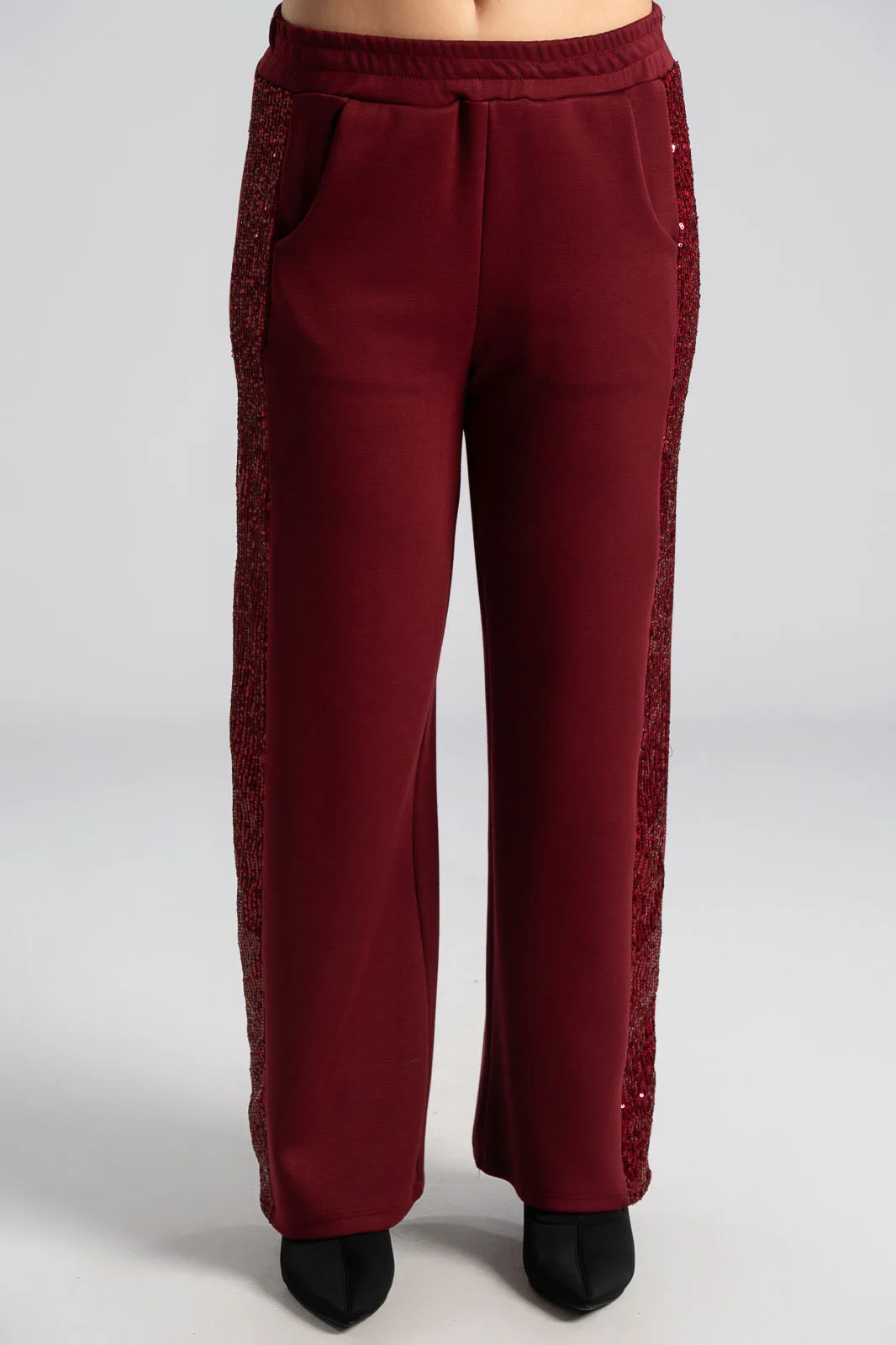 Σετ που αποτελείται από μπλούζα και παντελόνι. Η μπλούζα διαθέτει κουκούλα. Έχει μακριά μανίκια. Περιμετρικά της κουκούλας, στα μανίκια και στο τελείωμα διαθέτει διακοσμητικές παγιέτες. Το πίσω μέρος είναι ελαφρώς μακρύτερο. Το παντελόνι έχει λάστιχο στη μέση. Έχει πλαινές τσέπες. Στα πλαινά της φόρμας διαθέτει μια γραμμή με διακοσμητικές παγιέτες. Οι μετρήσεις του πίνακα είναι αντιπροσωπευτικές για κάθε προϊόν. 50% viscose, 45% polyester, 5% elastan.
