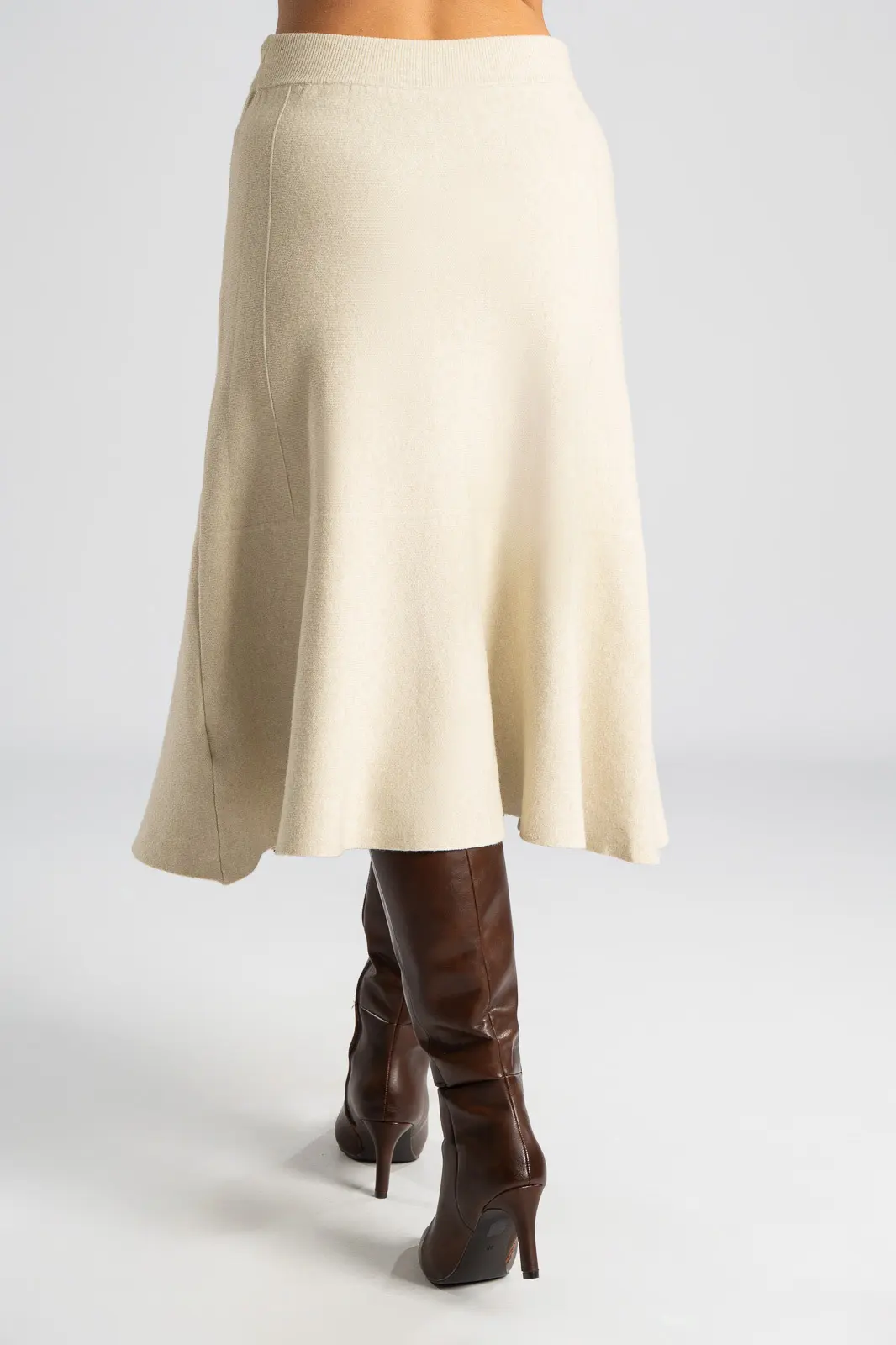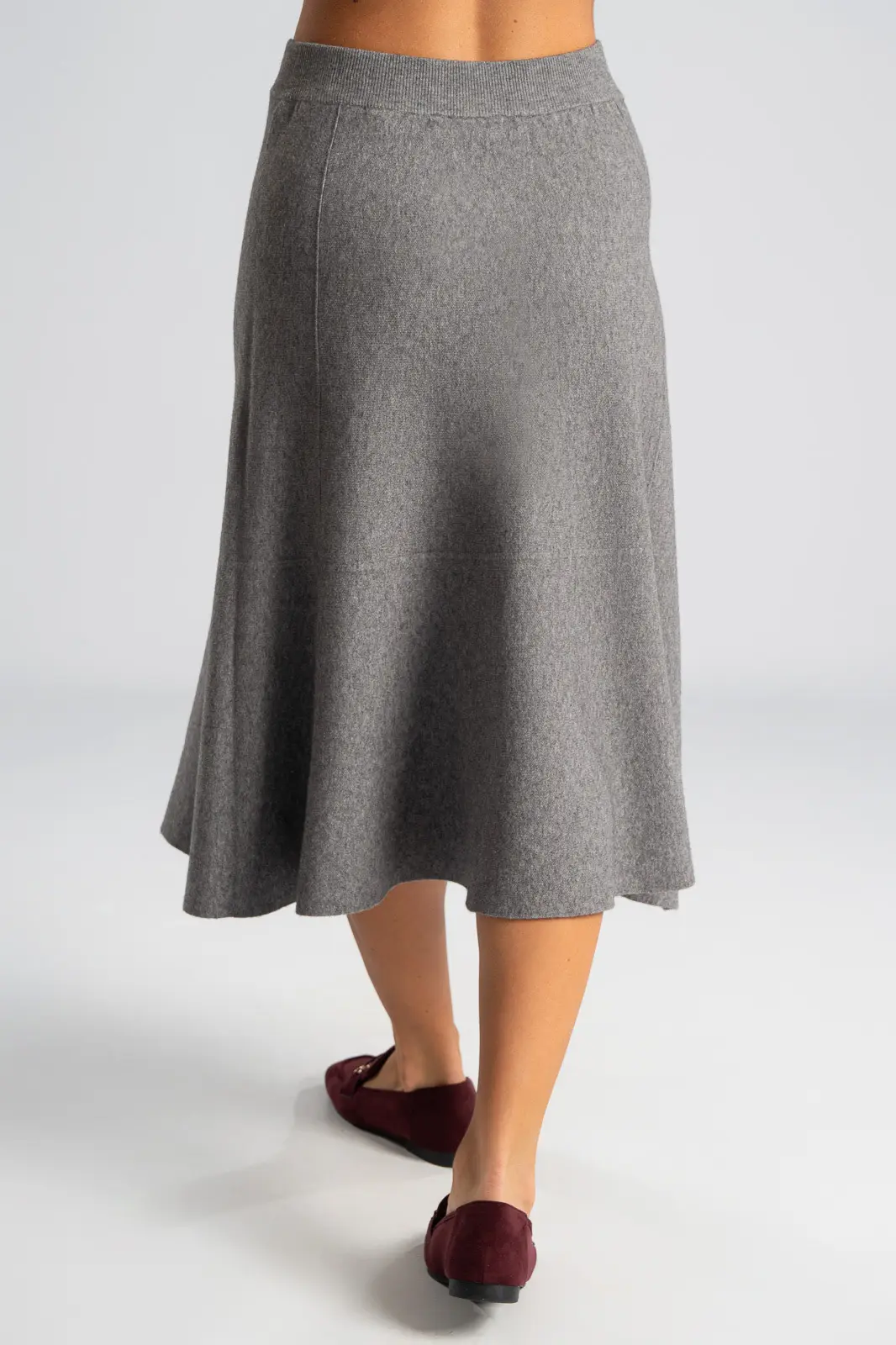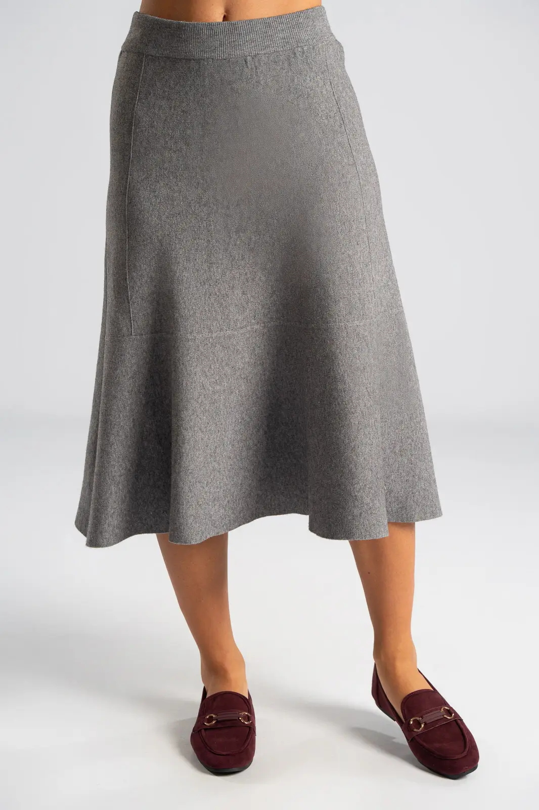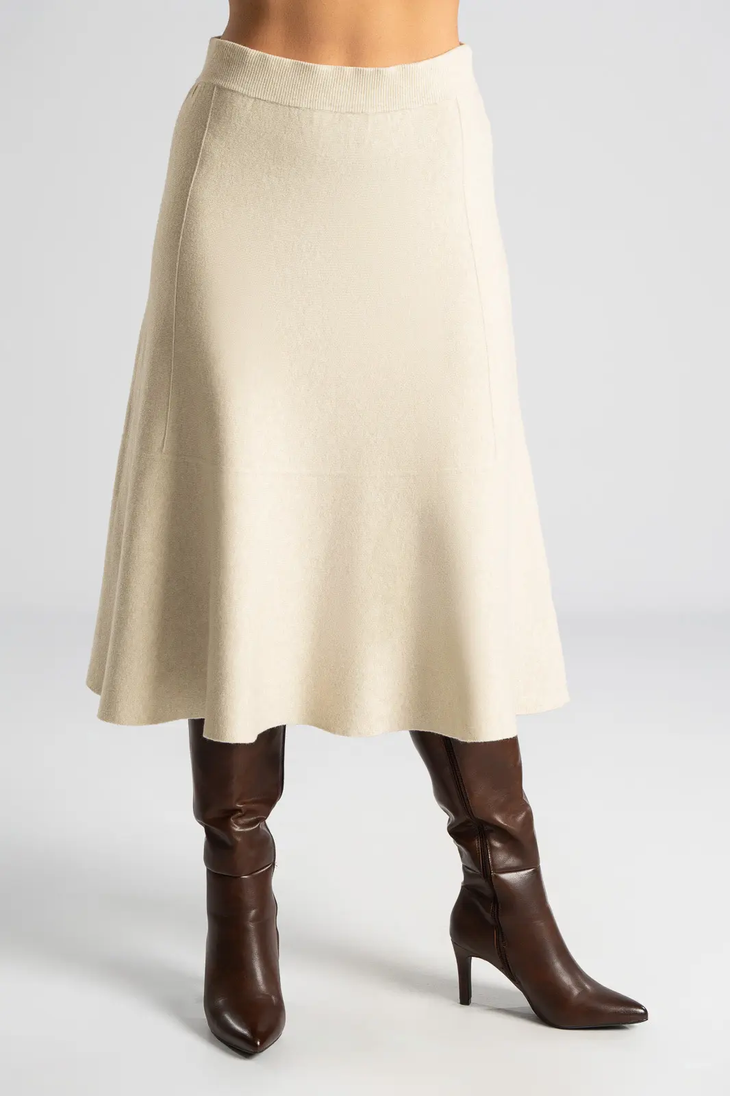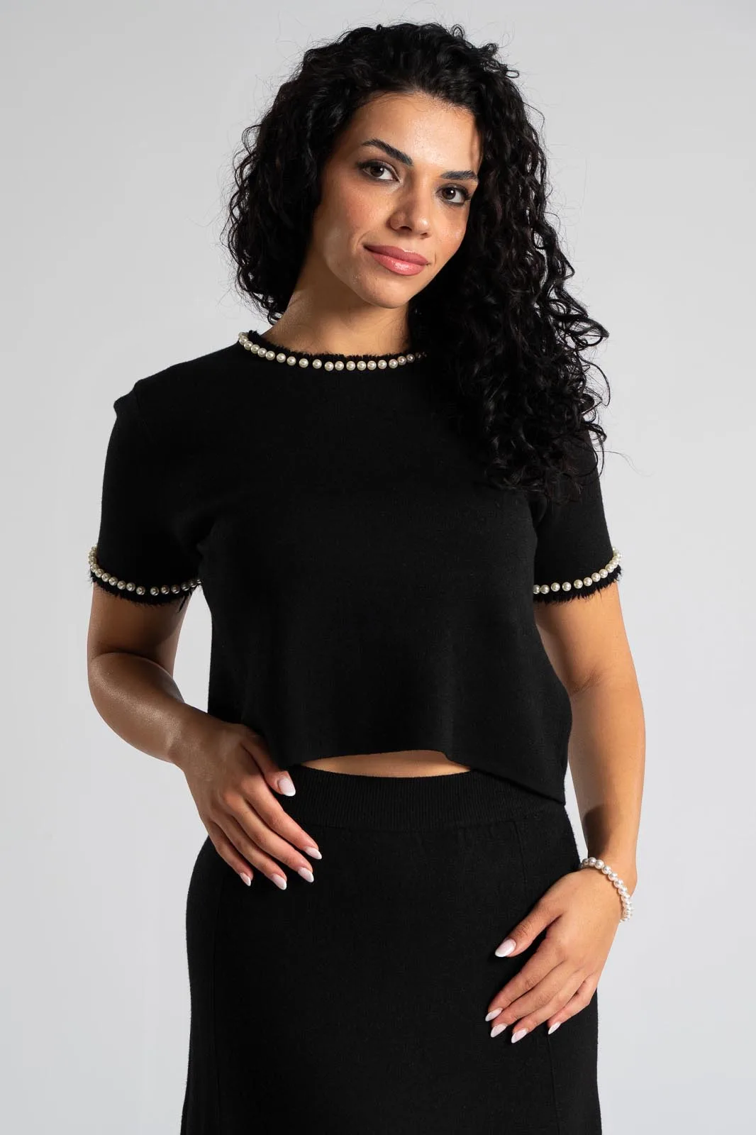Σετ που αποτελείται απο μπλούζα και φούστα με νημάτινη συμπαγή πλέξη. Η μπλούζα διαθέτει στρογγυλή λαιμόκοψη με διακοσμητικές πέρλες και κοντά κρόσια. Έχει κοντά μανίκια επίσης διακοσμημένα με πέρλες και κοντά κρόσια. Η φούστα διαθέτει λάστιχο στην μέση και είναι σε γραμμή Α. Έχει λεπτές εξωτερικές ραφές. Οι μετρήσεις του πίνακα είναι αντιπροσωπευτικές για κάθε προϊόν. 65% viscose, 33% polyester, 2% elastan.