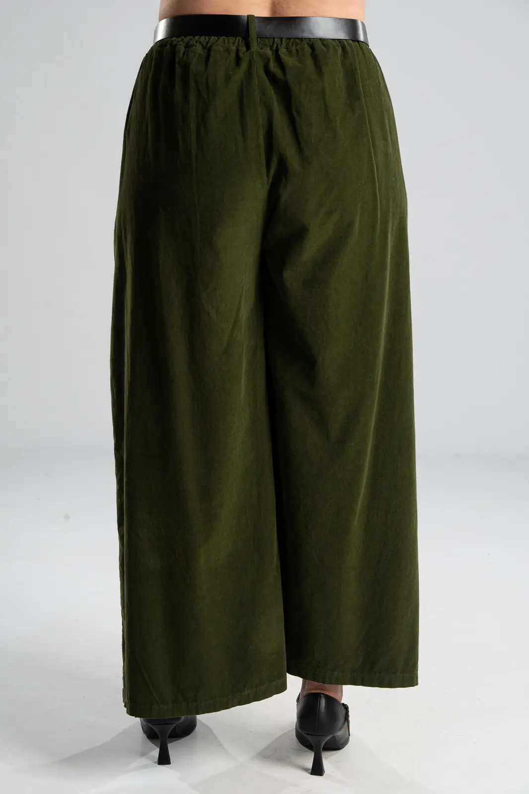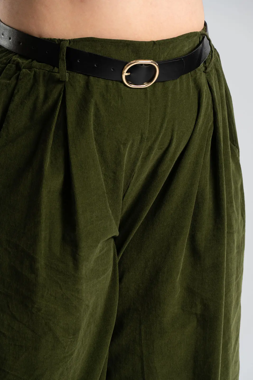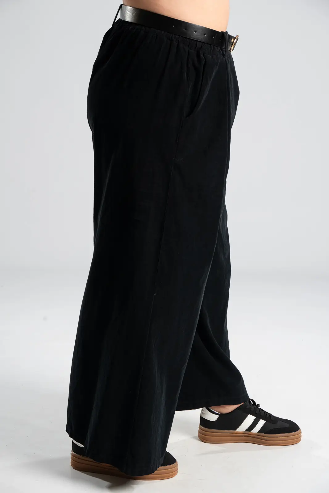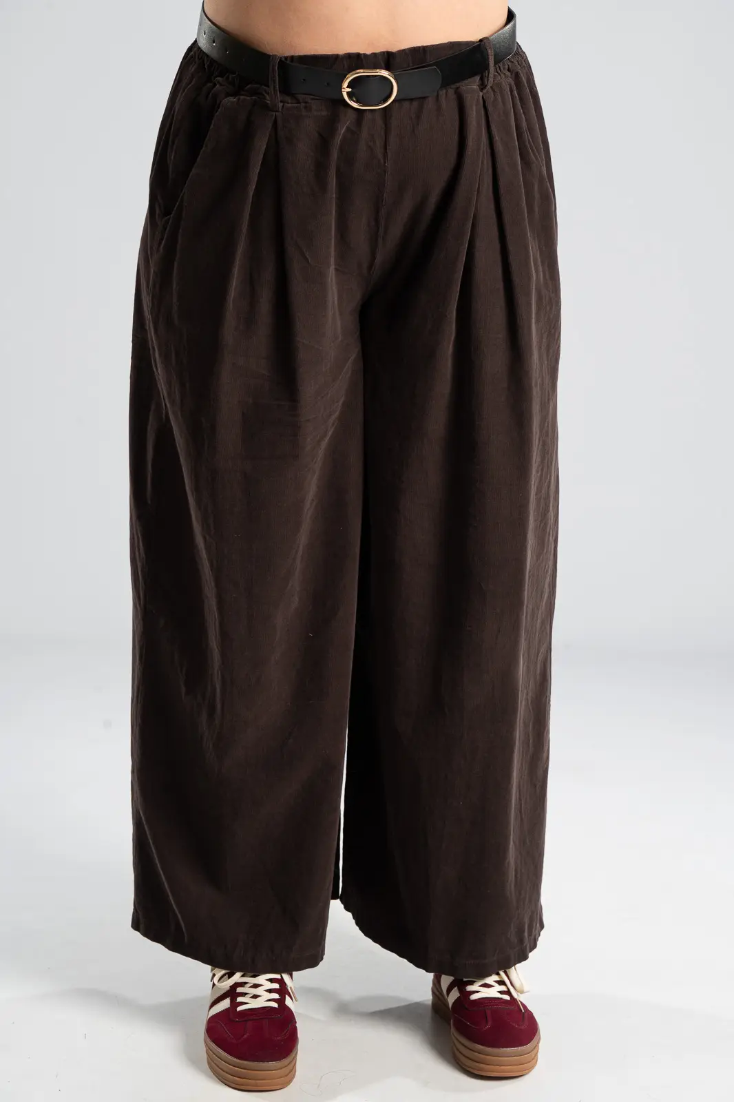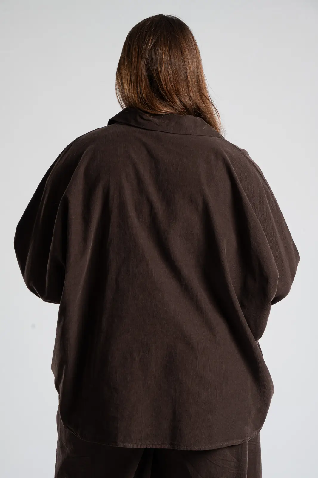 Κοτλέ βαμβακερό σετ που αποτελείται από πουκάμισο και παντελόνι. Το πουκάμισο έχει μακριά μανίκια τύπου νυχτερίδα που κλείνουν με κουμπί. Είναι σε ίσια γραμμή. Το παντελόνι έχει λάστιχο στο πίσω μέρος για να προσαρμόζεται καλύτερα. Είναι ψηλόμεσο και έχει ίσια γραμμή. Διαθέτει δική του ζώνη δερματίνη. Στο πλάι διαθέτει τσέπες και στο μπροστινό μέρος διαθέτει πιέτες. Οι μετρήσεις του πίνακα είναι αντιπροσωπευτικές για κάθε προϊόν. 100% cotton.
