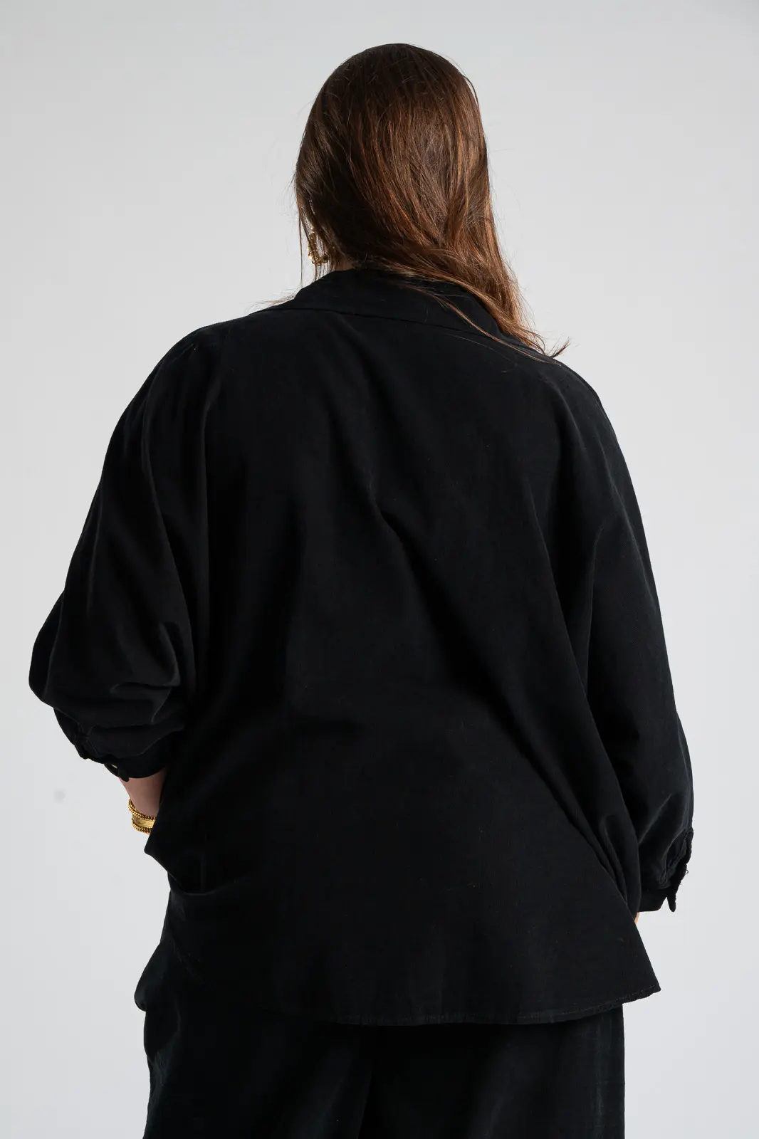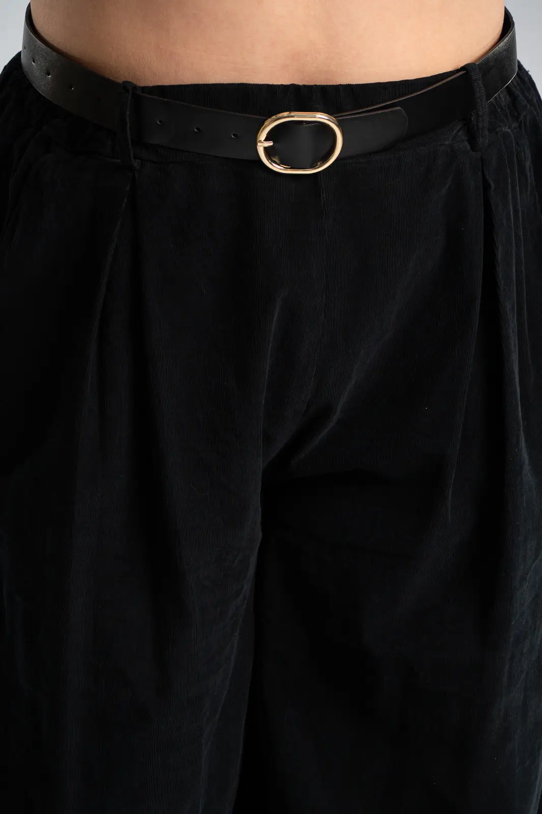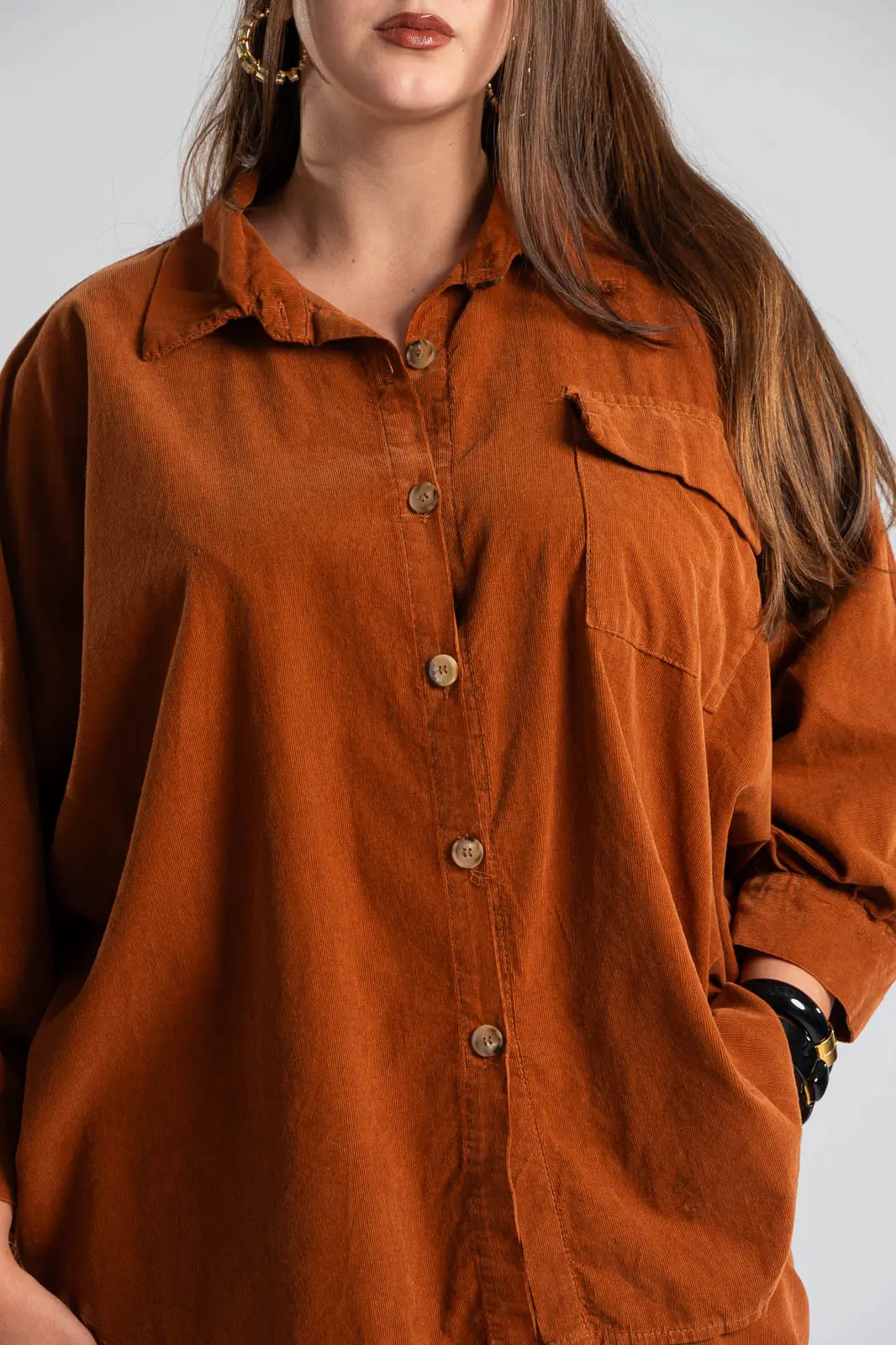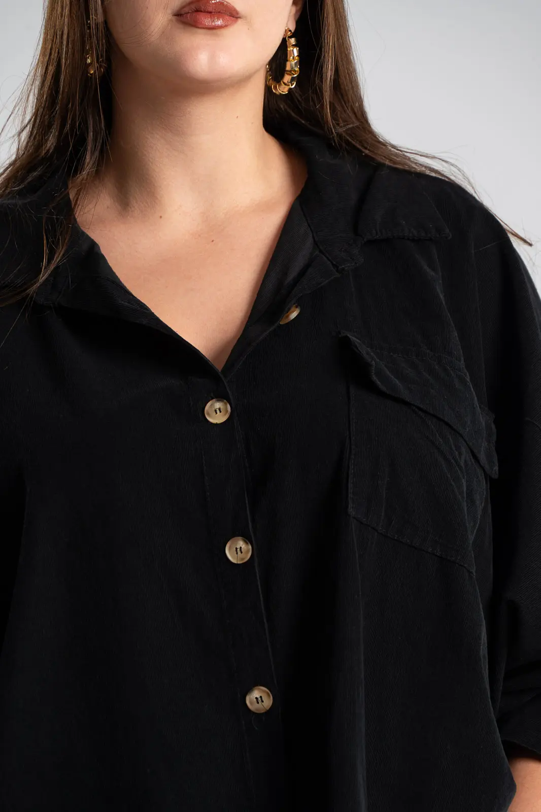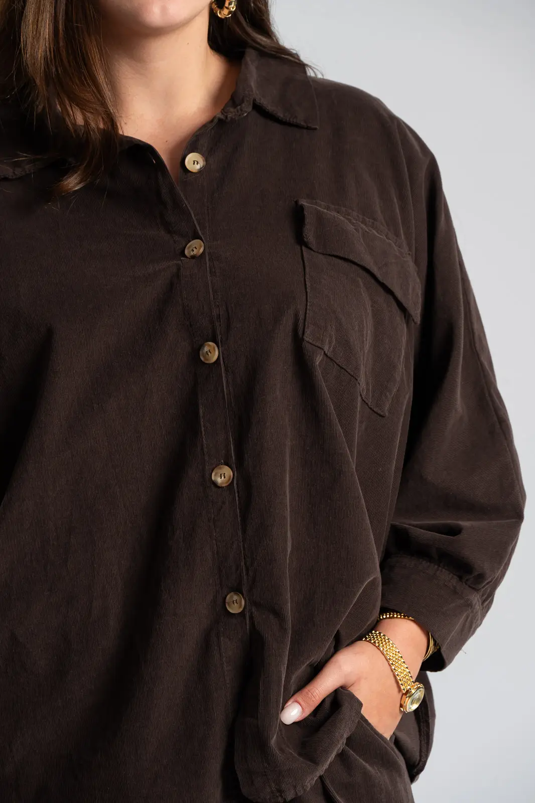Κοτλέ βαμβακερό σετ που αποτελείται από πουκάμισο και παντελόνι. Το πουκάμισο έχει μακριά μανίκια τύπου νυχτερίδα που κλείνουν με κουμπί. Είναι σε ίσια γραμμή. Το παντελόνι έχει λάστιχο στο πίσω μέρος για να προσαρμόζεται καλύτερα. Είναι ψηλόμεσο και έχει ίσια γραμμή. Διαθέτει δική του ζώνη δερματίνη. Στο πλάι διαθέτει τσέπες και στο μπροστινό μέρος διαθέτει πιέτες. Οι μετρήσεις του πίνακα είναι αντιπροσωπευτικές για κάθε προϊόν. 100% cotton.