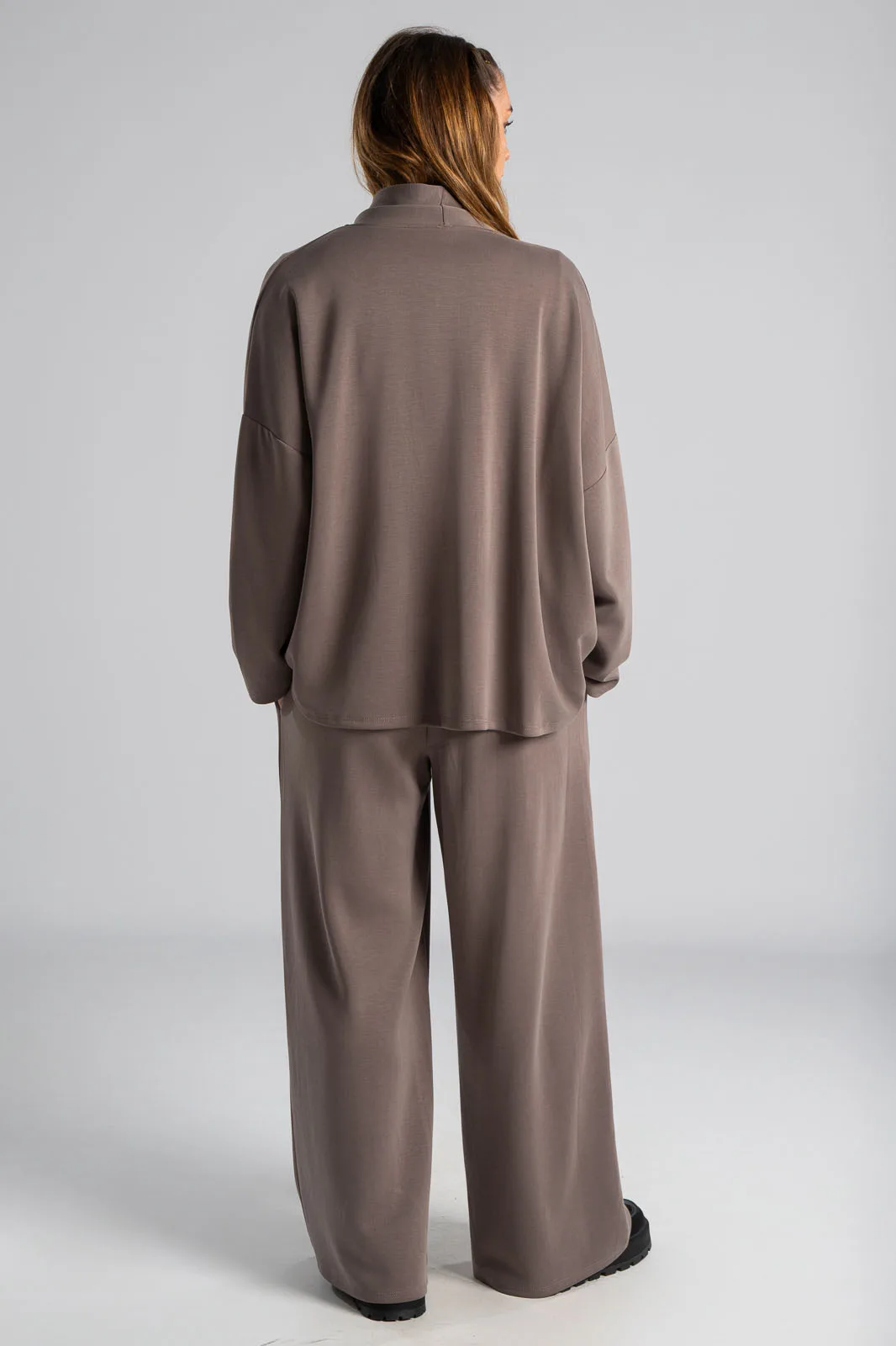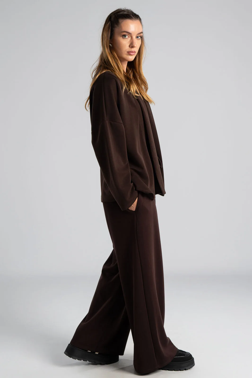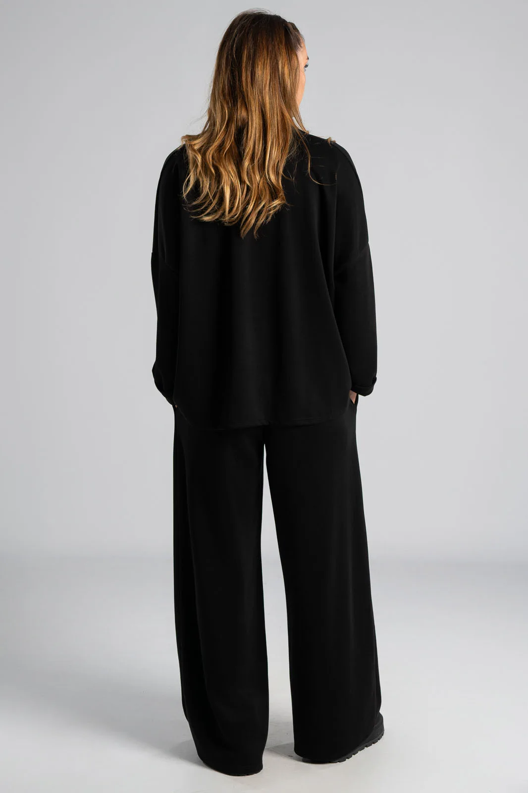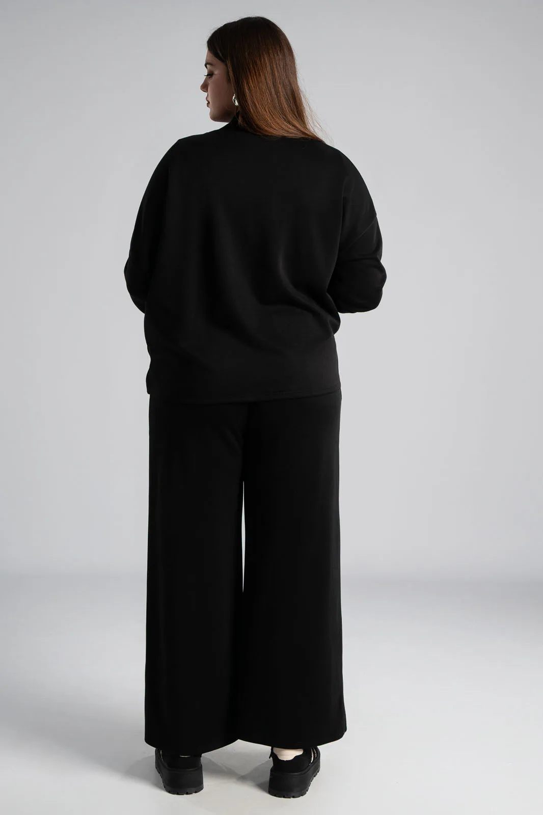 Σετ που αποτελείται από ζακέτα και παντελόνι. Η ζακέτα έχει μακριά μανίκια σε ύφος νυχτερίδας. Δεν διαθέτει κουμπί η φερμουάρ. Το παντελόνι έχει λαστιχο στη μέση και εσωτερικό κορδόνι για καλύτερη εφαρμογή. Στα πλαινά έχει τσέπες. Είναι σε ύφος φόρμας. Οι μετρήσεις του πίνακα είναι αντιπροσωπευτικές για κάθε κωδικό. 47% nylon, 46% polyester, 7% elastan.