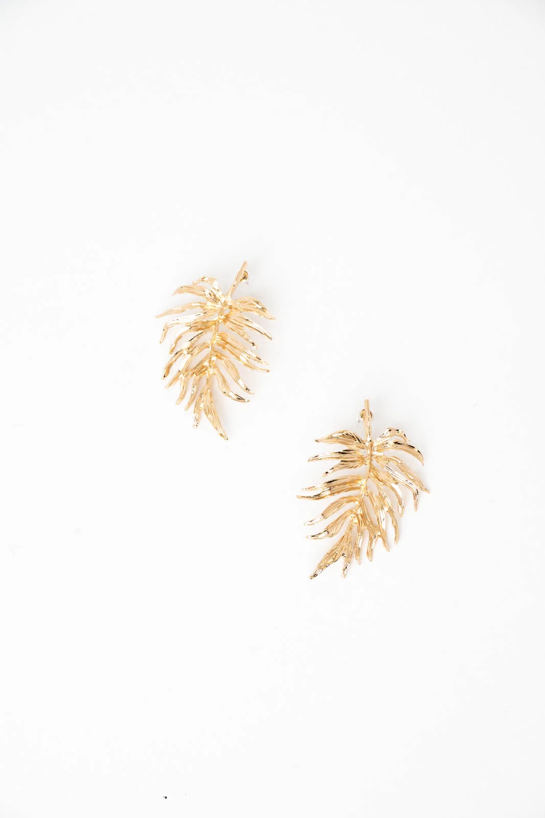 Σκουλαρίκια εντυπωσιακά μεταλλικά. Έχουν όψη φύλλο φοίνικα. Είναι κουμπωτά στο αυτί.