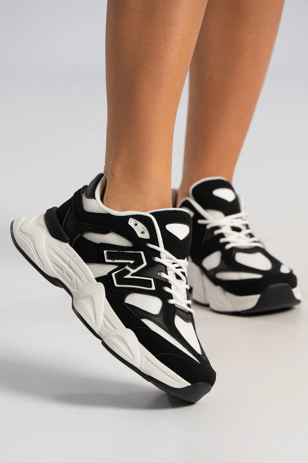 SNEAKERS ΔΙΠΑΤΑ ΛΟΓΟΤΥΠΟ ΛΕΥΚΟ - ΜΑΥΡΟ ΑΣΠΡΟΜΑΥΡΟ