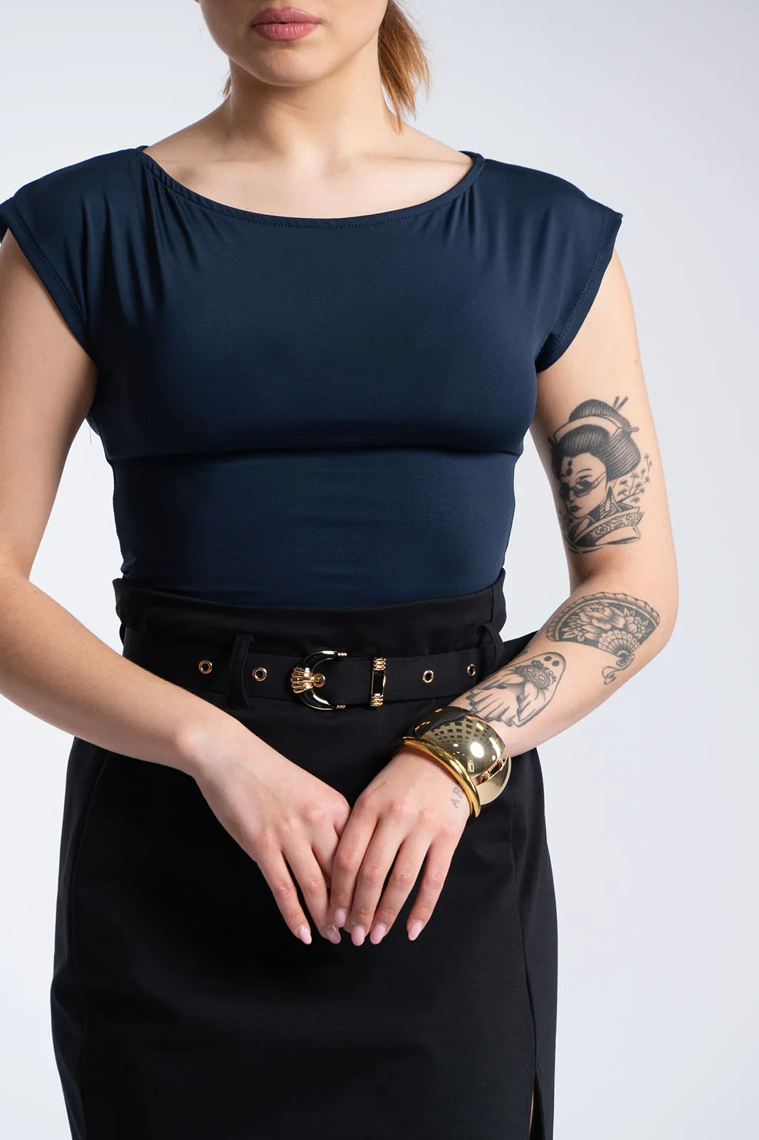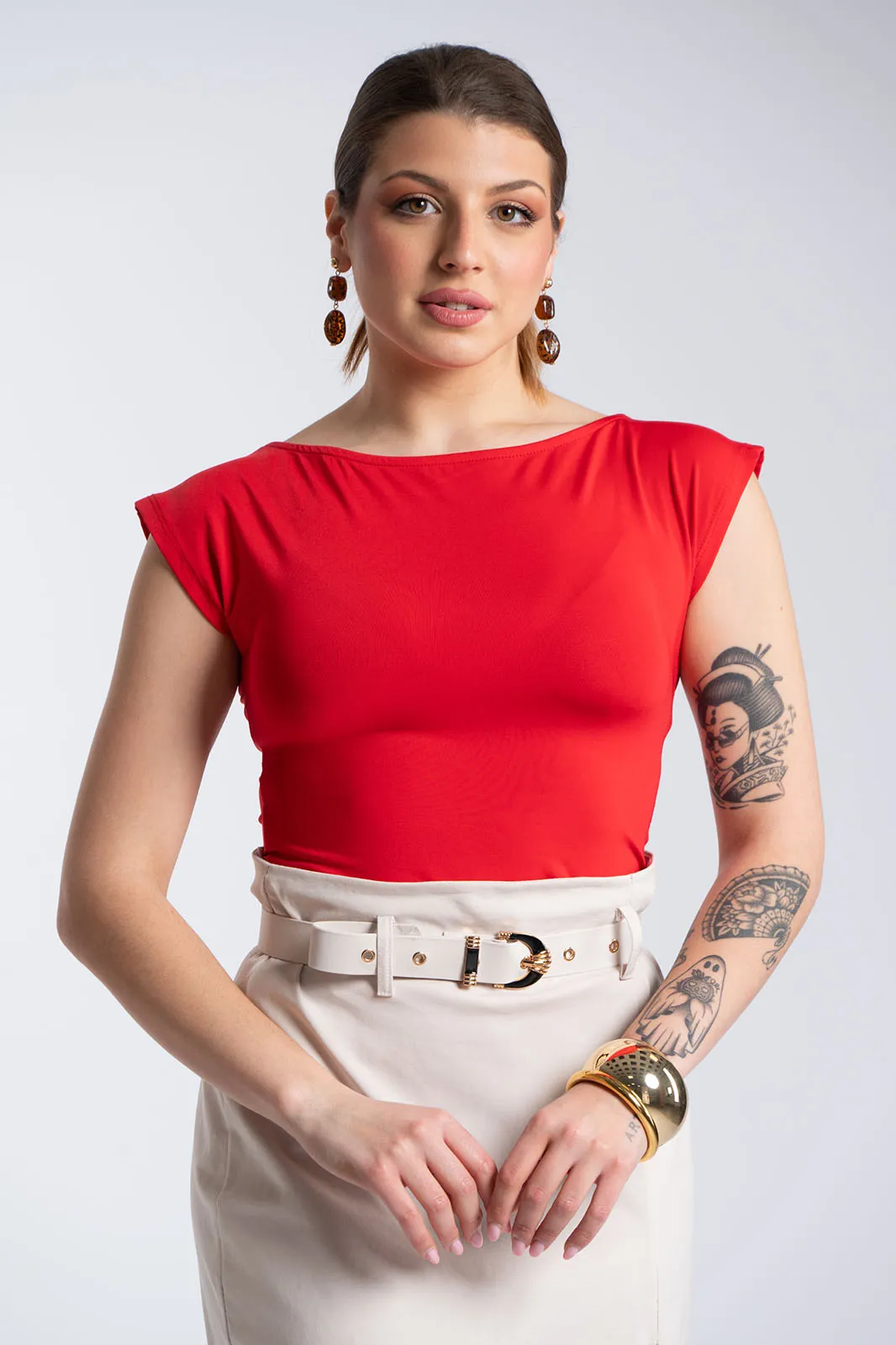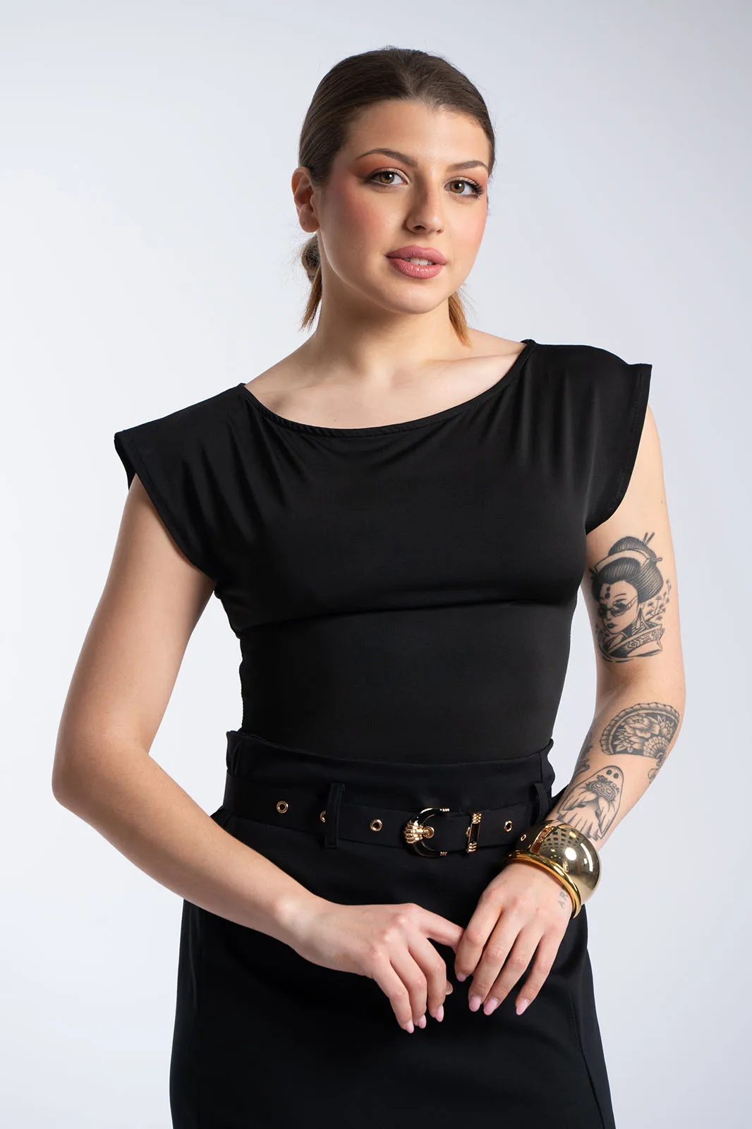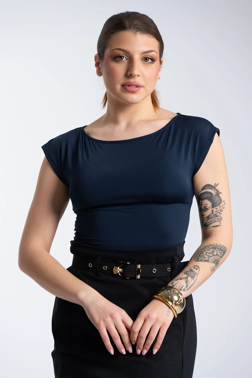 Κομψή και ευκολοφόρετη μπλούζα σε εφαρμοστή γραμμή που αγκαλιάζει το σώμα. Διαθέτει χαμόγελο λαιμόκοψη που αναδεικνύει διακριτικά τους ώμους, ενώ τα κοντά μανίκια προσφέρουν άνεση και καθημερινό χαρακτήρα. Το ελαστικό ύφασμα χαρίζει τέλεια εφαρμογή και ελευθερία κινήσεων, καθιστώντας τη ιδανική επιλογή για κάθε στιγμή της ημέρας.
