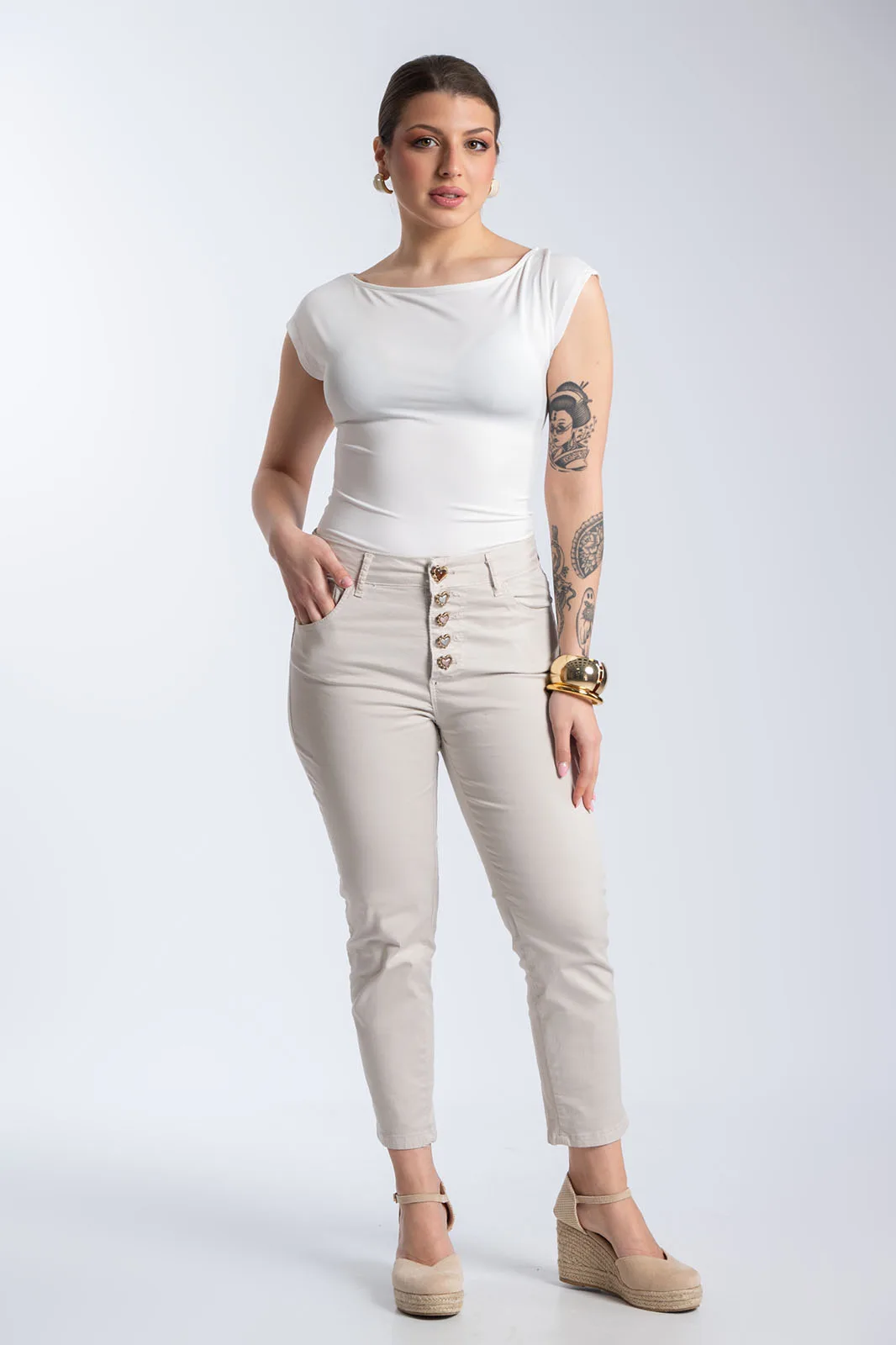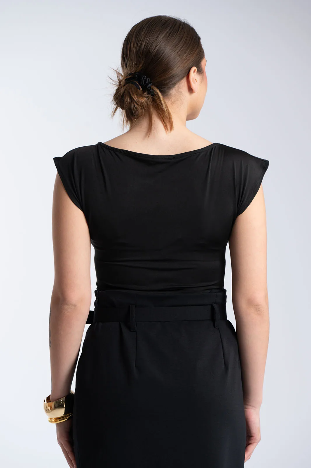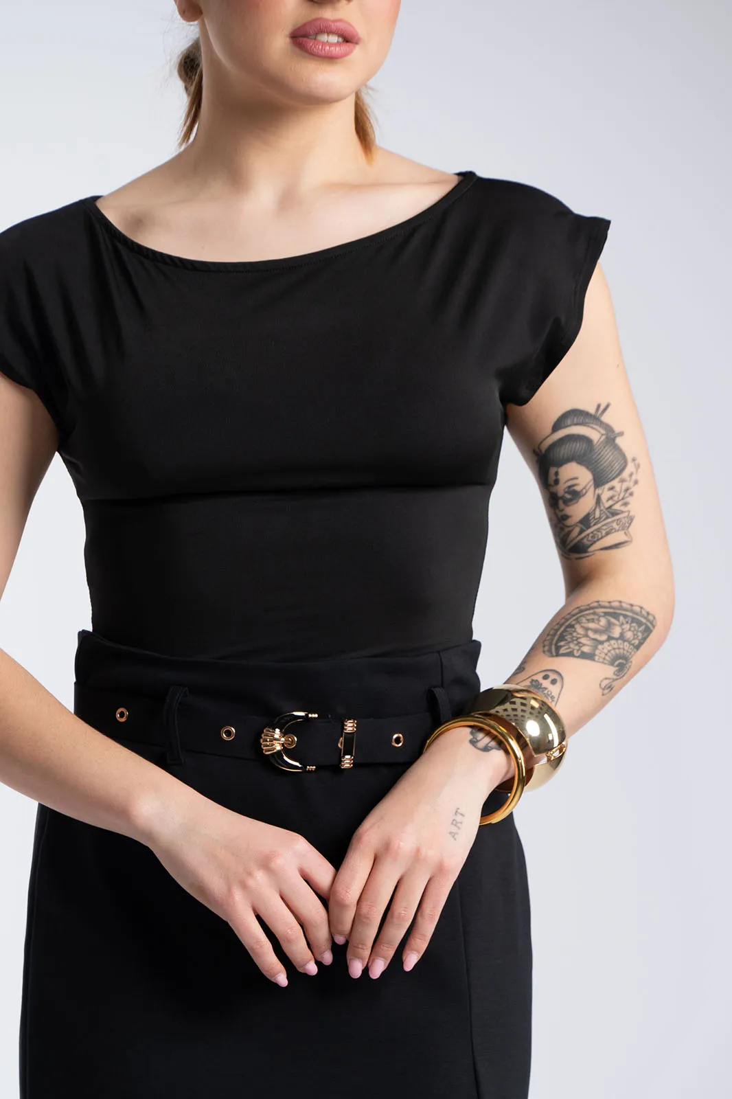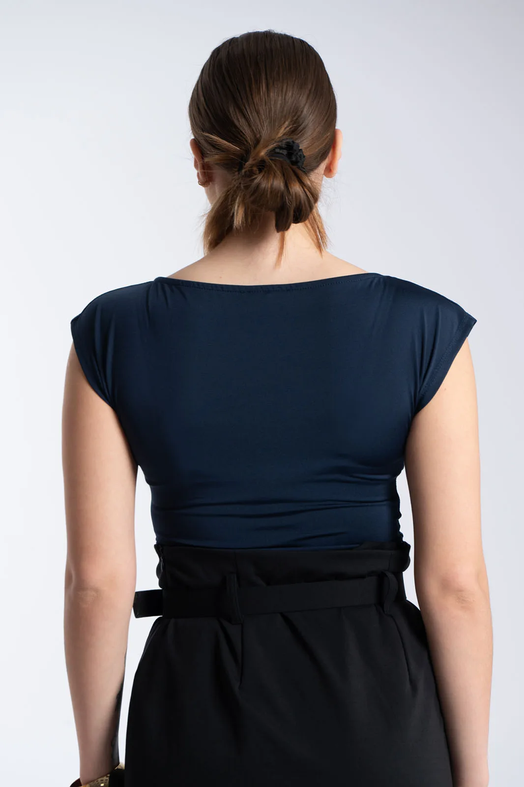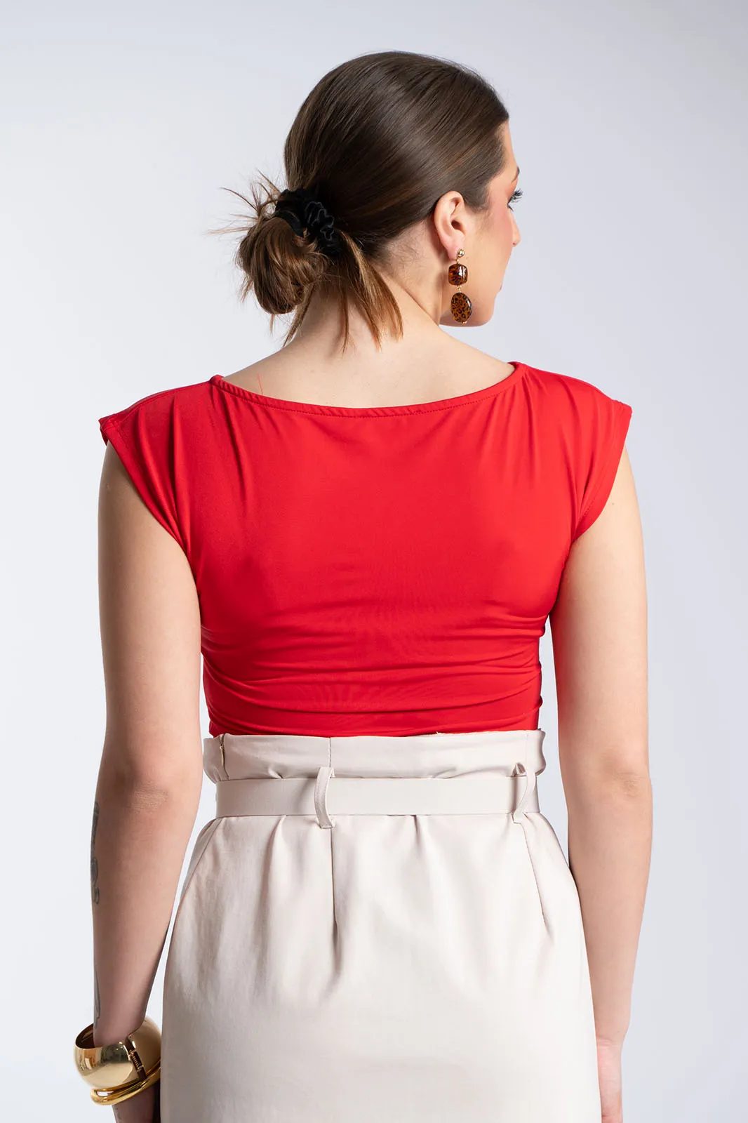 Κομψή και ευκολοφόρετη μπλούζα σε εφαρμοστή γραμμή που αγκαλιάζει το σώμα. Διαθέτει χαμόγελο λαιμόκοψη που αναδεικνύει διακριτικά τους ώμους, ενώ τα κοντά μανίκια προσφέρουν άνεση και καθημερινό χαρακτήρα. Το ελαστικό ύφασμα χαρίζει τέλεια εφαρμογή και ελευθερία κινήσεων, καθιστώντας τη ιδανική επιλογή για κάθε στιγμή της ημέρας.