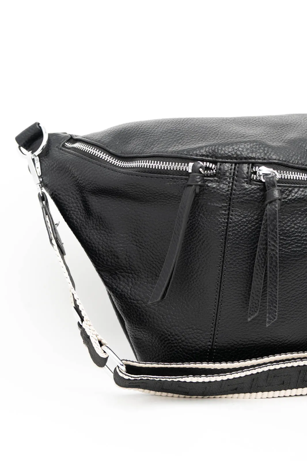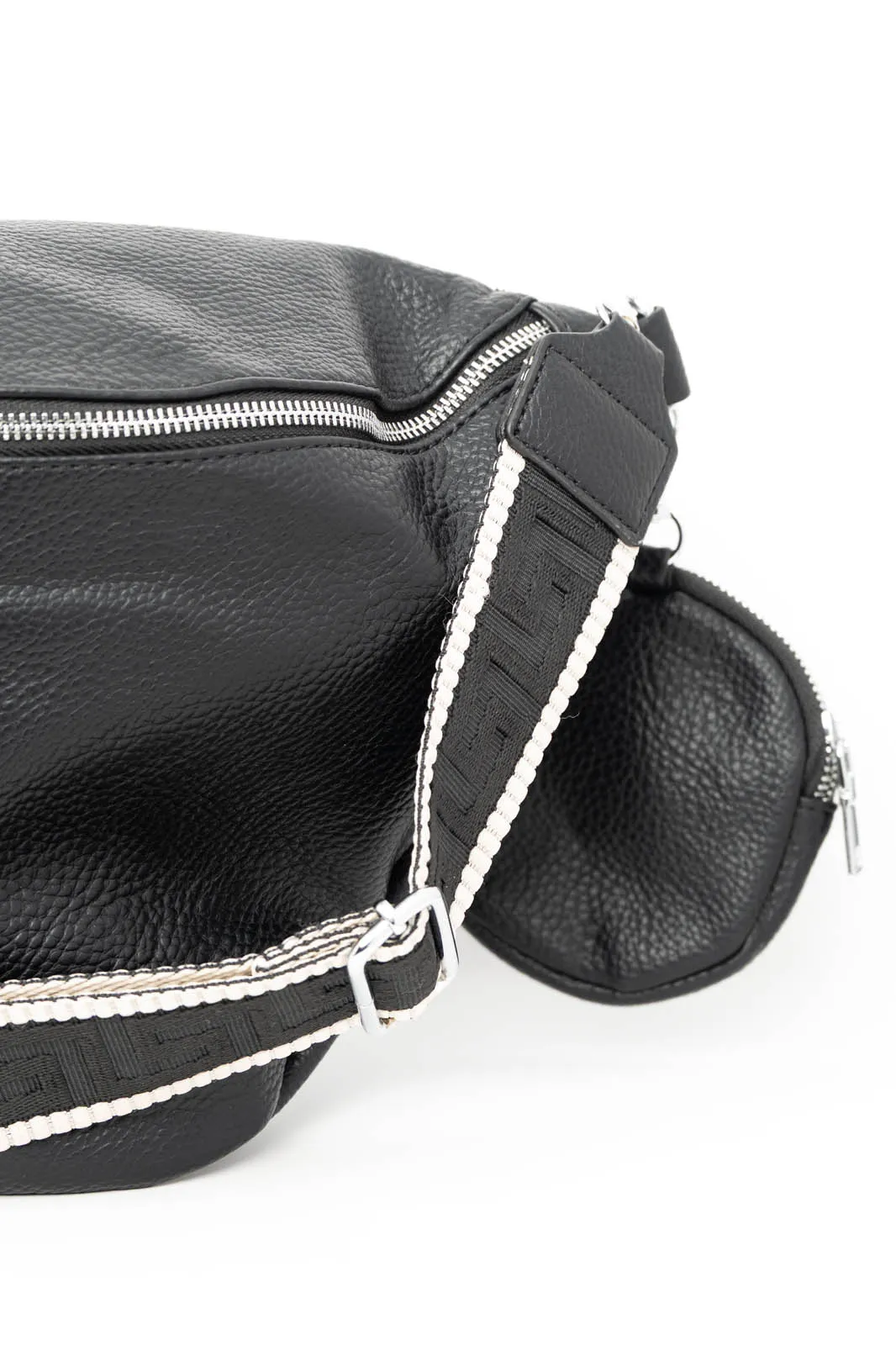 Τσάντα χιαστί από εξαιρετικής ποιότητας δερματίνη. Κλείνει με φερμουάρ και έχει έξτρα θήκες στο μπροστινό και πίσω μέρος. Εσωτερικά είναι φοδραρισμένη και έχει έξτρα θήκες. Διαθέτει λουρί αποσπώμενο με ελάχιστο μήκος 71cm και μέγιστο 116cm. Διαθέτει μικρό στρογγυλό πορτοφόλι το οποίο είναι αποσπώμενο. Μέγεθος τσάντας: 58cm x 25cm.