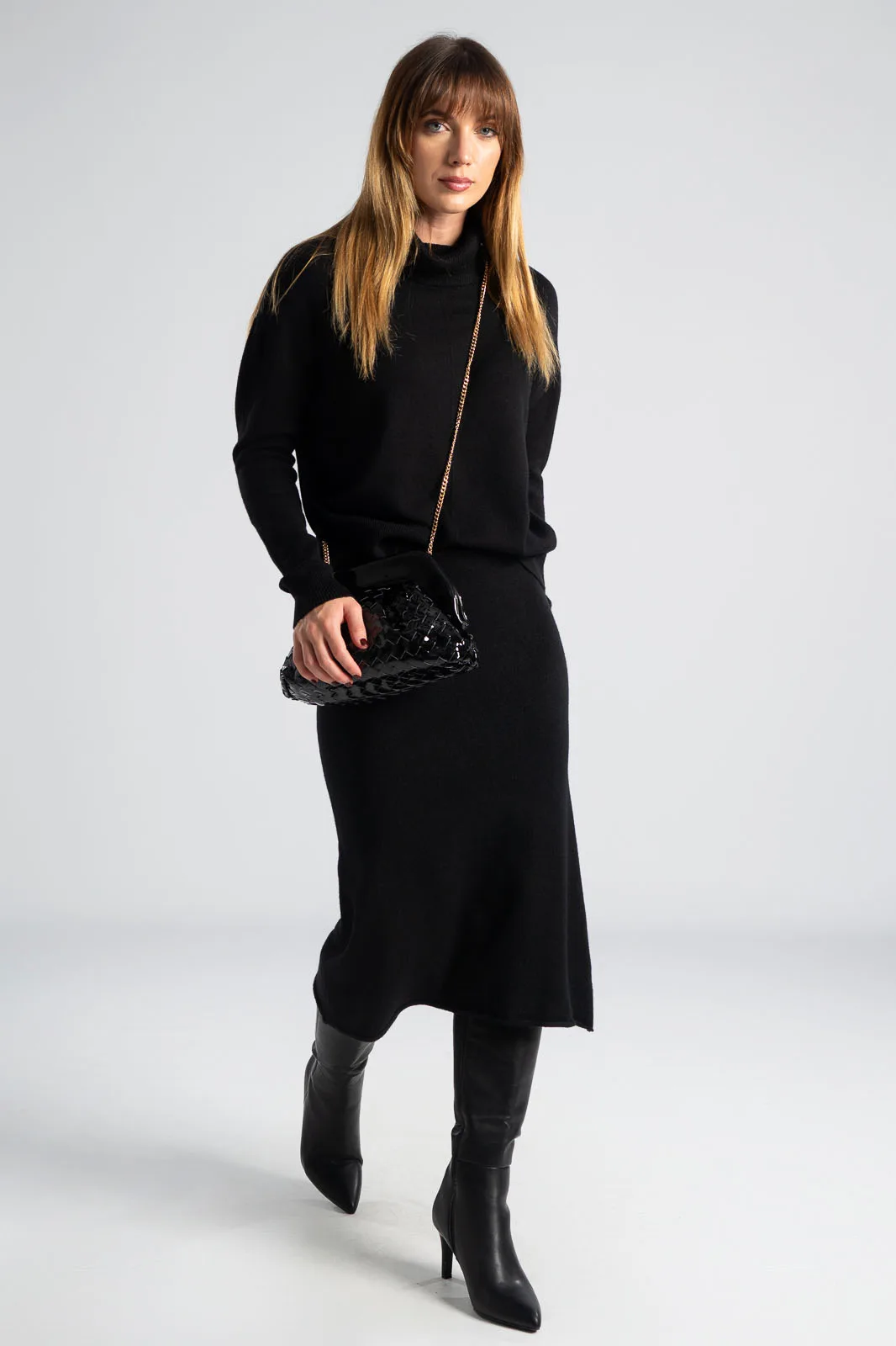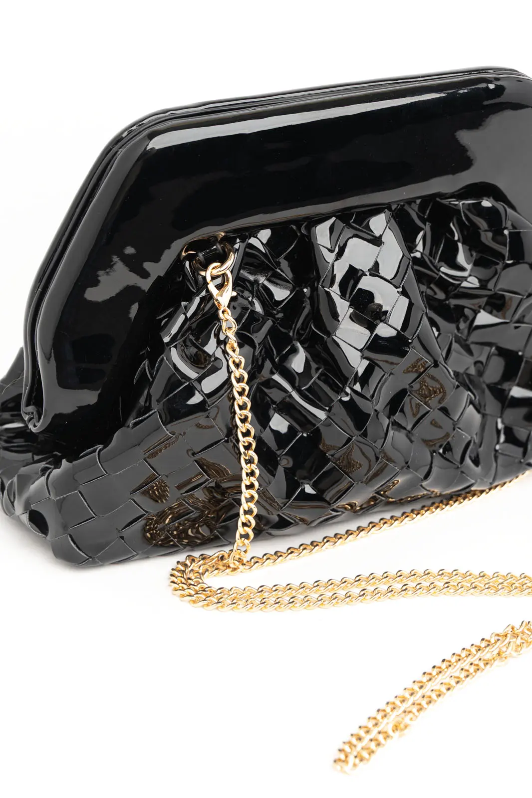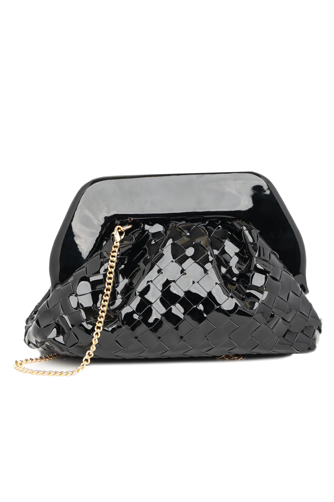 BAG EFFECT BRAIDED PATENT LEATHERETTE BLACK