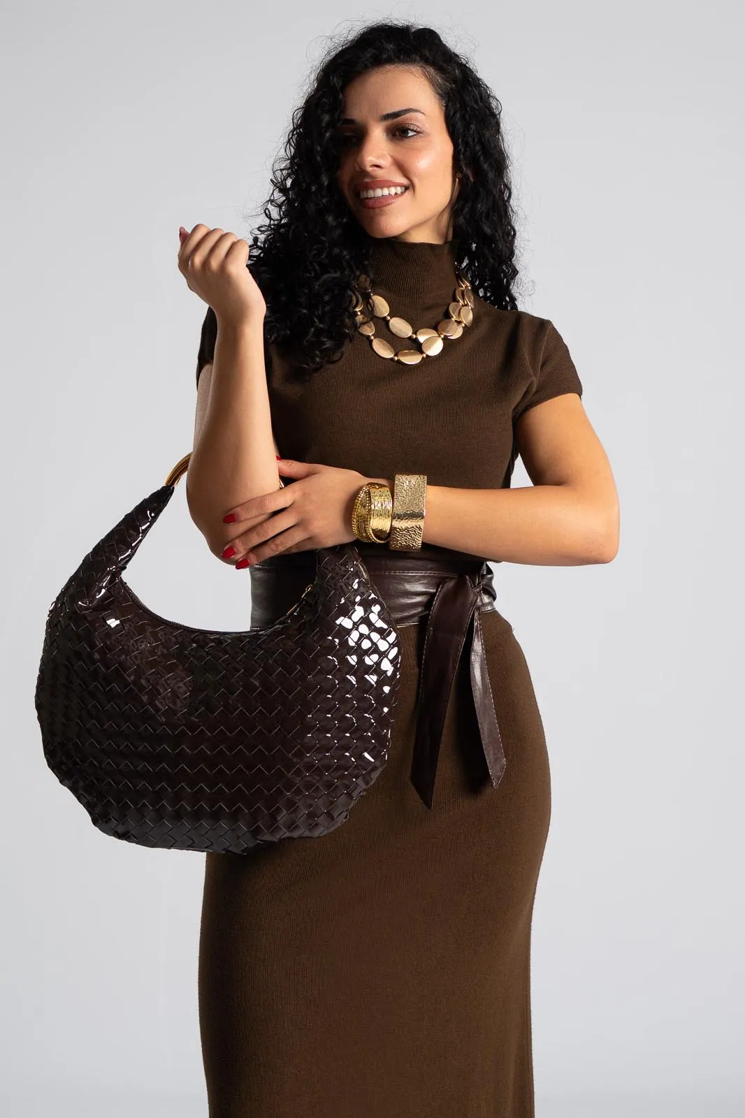 BAG BRAIDED EFFECT METAL ELEMENT CHOCO