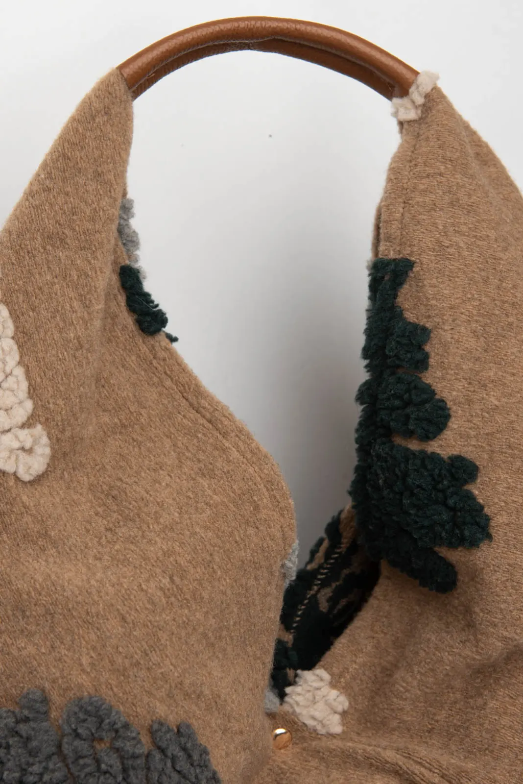 Τσάντα ώμου. Διαθέτει ένα χερούλι με υφή δερματίνη.Κλείνει με clutch. Εσωτερικά έχει ενιαίο χώρο. Σε όλη την επιφάνεια έχει 3Dανάγλυφα λουλούδια. Σε όλη την επιφάνεια έχει floral pattern. Το χερούλι είναισταθερό και έχει μήκος 60cm. Μέγεθος τσάντας: 58cmx28cm. Σύνθεση: 65%polyester, 35% wool.